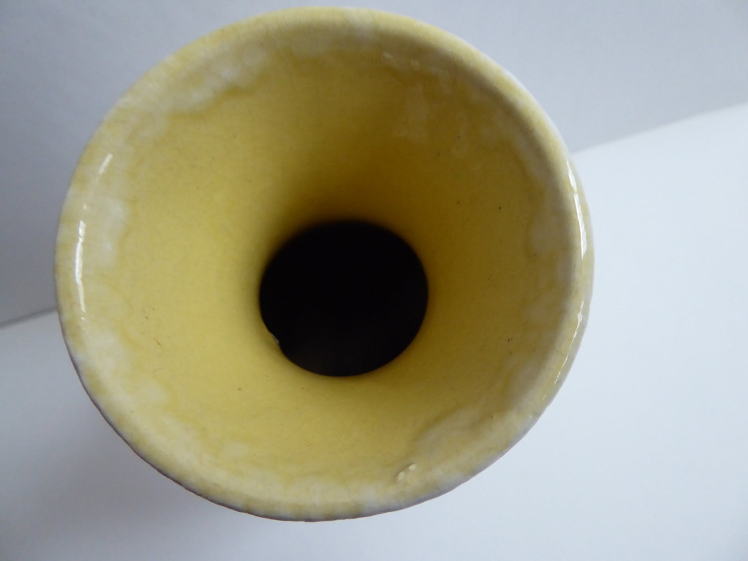 Het is 18 cm hoog. Bij de hals is de doorsnee 6,5 cm en op z'n breedst is het 8 cm. De vaas is in mint condition.