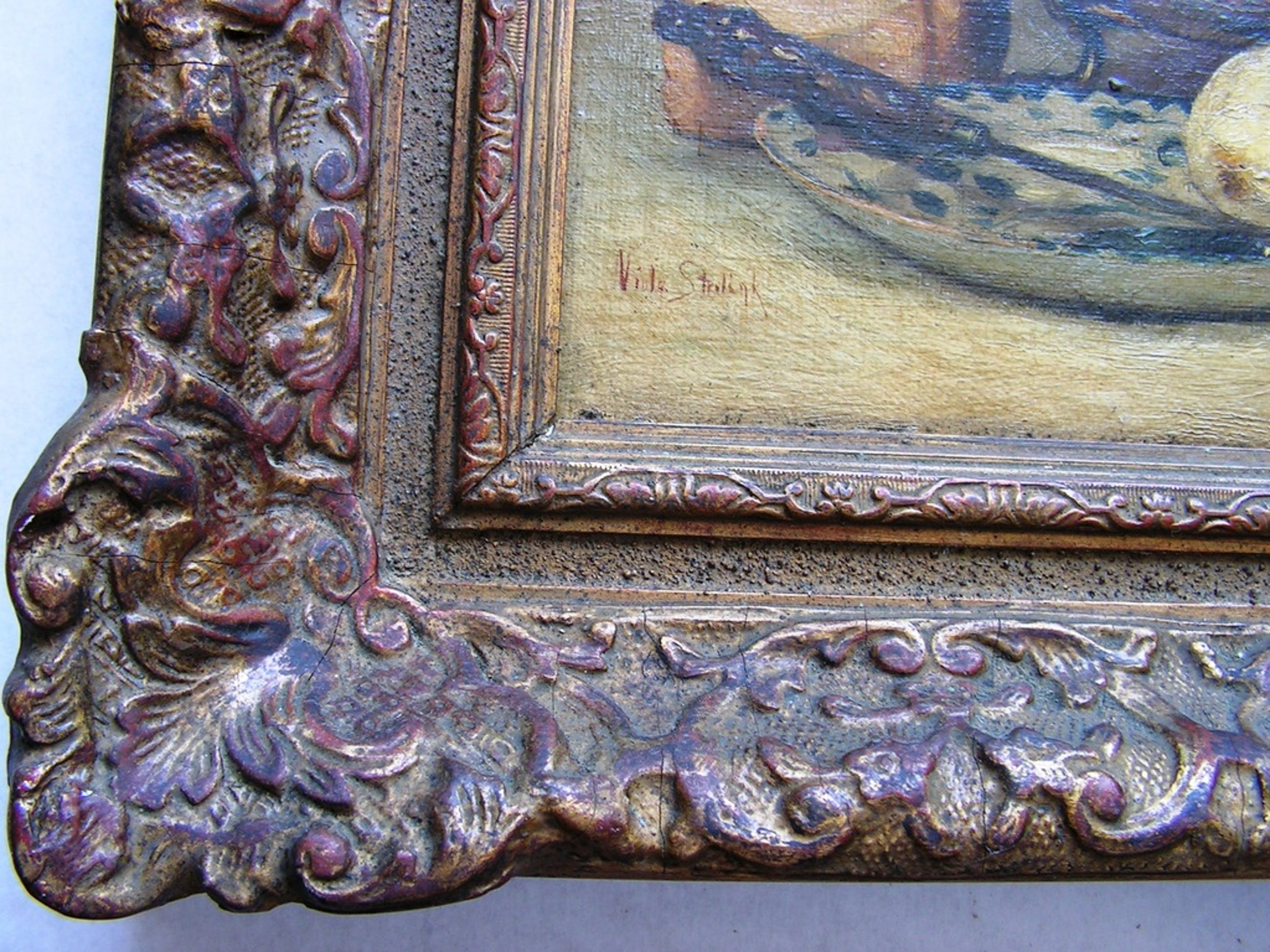 Olieverf op paneeltje. Ingelijst in oude lijst