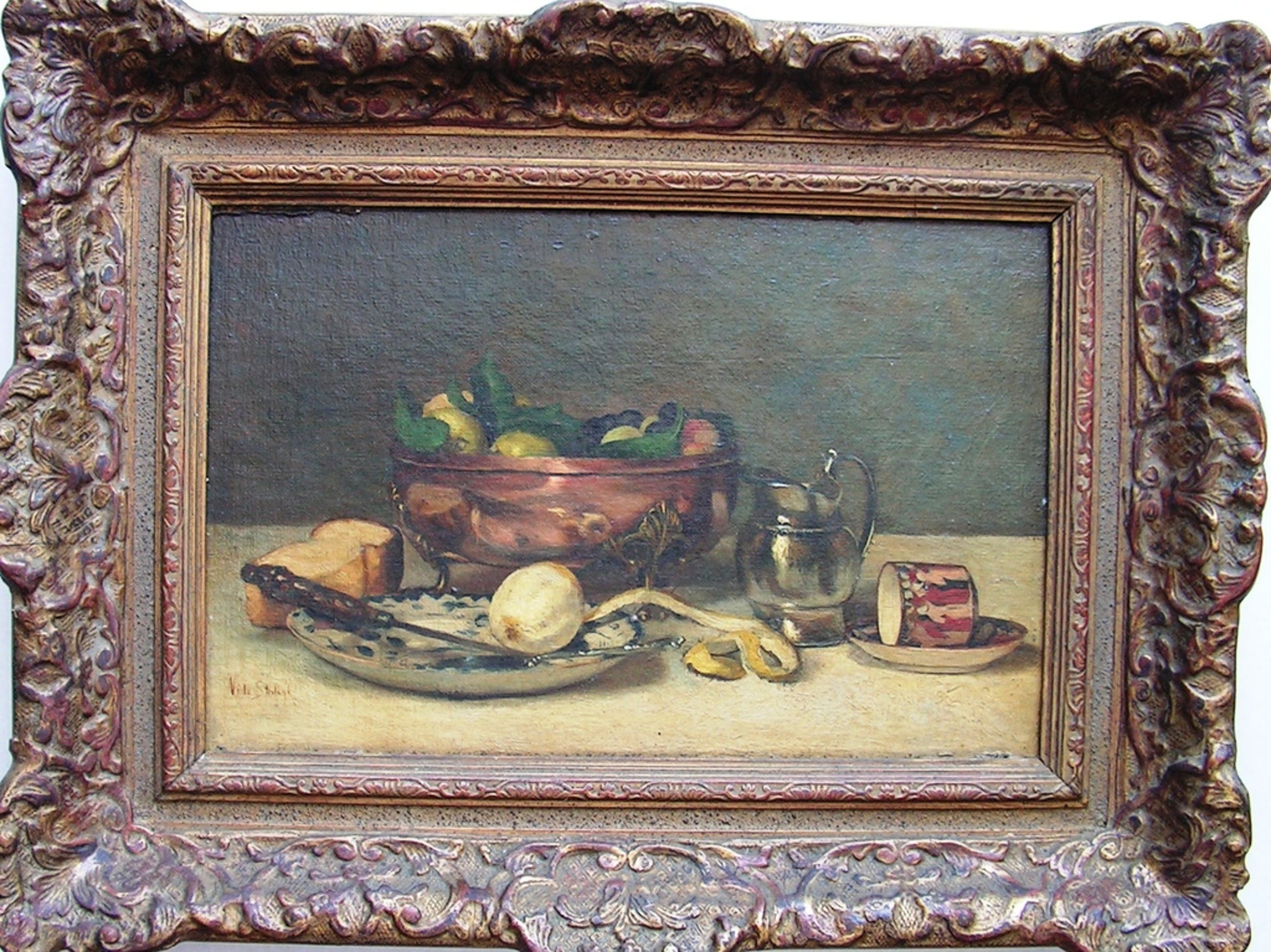 Zeer fraai en fijn geschilderd stilleven met oa fruit.