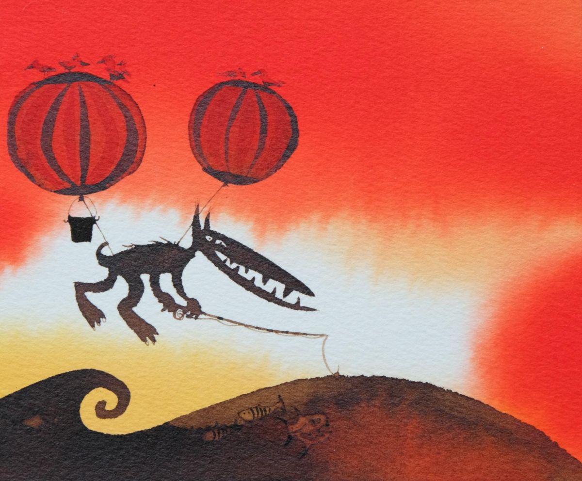 Ihre meist fröhlichen Werke stecken voller Fantasie. Der Wolf begleitet seit jeher ihr künstlerisches Schaffen. Sie inszeniert ihn in allen möglichen Situationen, immer in Bewegung und bereit, neue Abenteuer zu erleben. Fantasiereiche Maschinen und Fahrzeuge erleichtern dem Wolf sein Vagabunden-Leben.