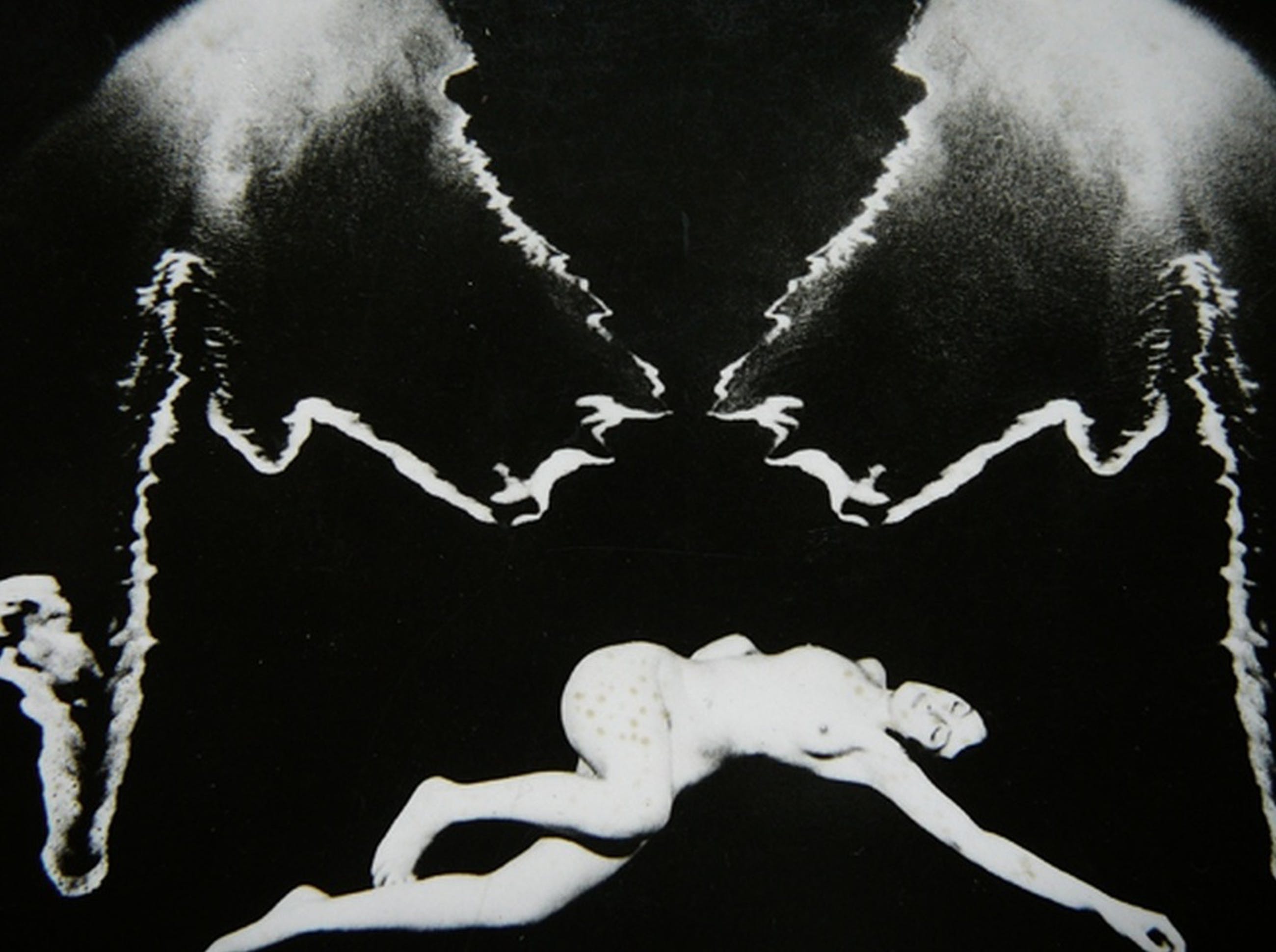 Zeldzame, analoge zwart/wit-foto van de befaamde kunstfotograaf Vitaly Butyrin, getiteld 'Dream' en afkomstig uit de collectie 'Civilizations'. Dit is de originele foto die in 1989 tentoongesteld is op de 6e Salon International de La Celle-Saint-Cloud (Frankrijk) en de Salon International de Navidad de Fotografia de Gijon (Spanje). Etiketten op de achterzijde getuigen hiervan.