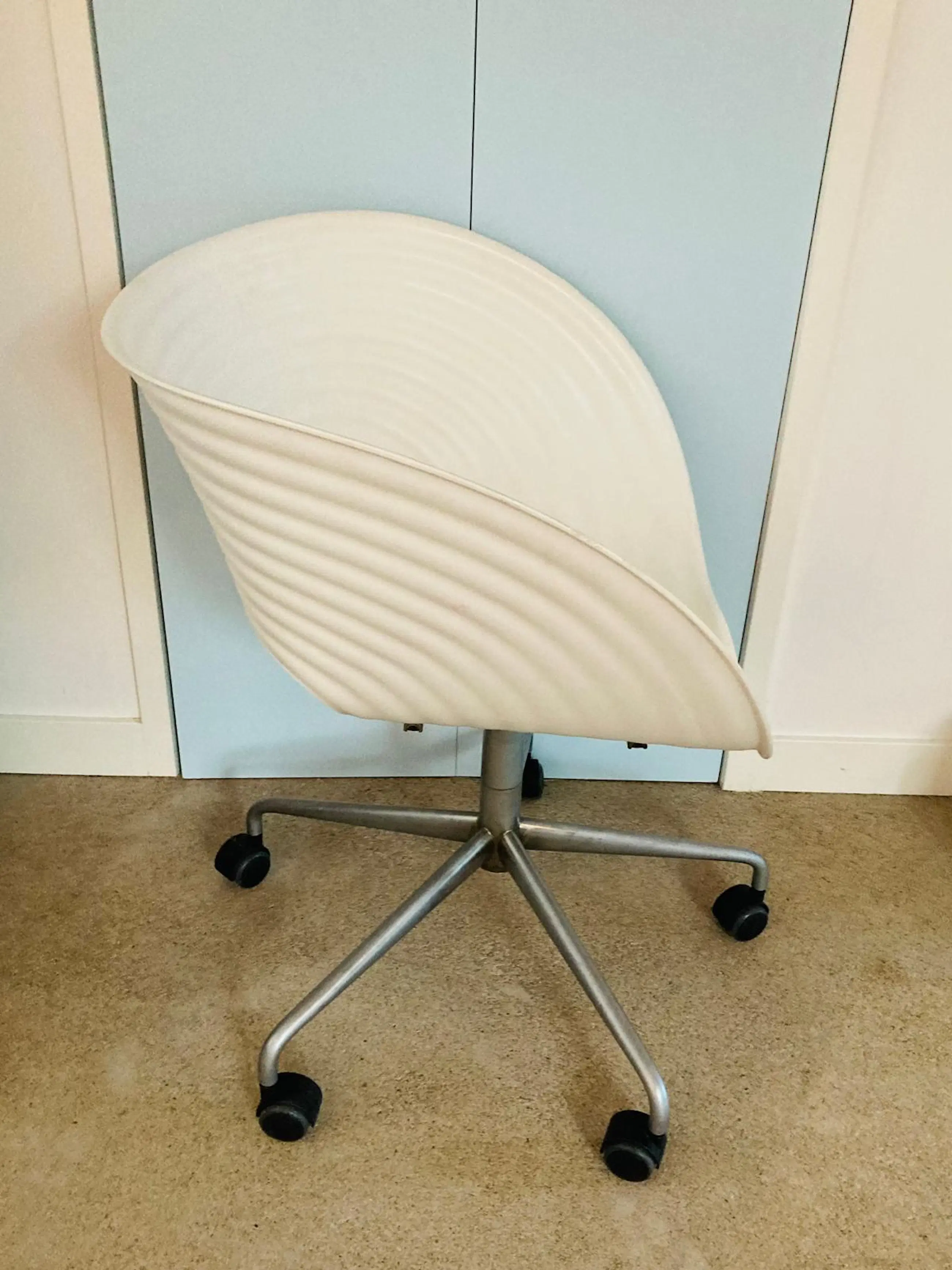De iconische Vitra Tom Tac draaistoelen, ontworpen door de gerenommeerde Ron Arad in 1999. Deze set van vier stoelen combineert modern design met functionaliteit, perfect voor zowel kantoor- als thuisgebruik. In mooie vintage conditie. Zithoogte is 45 cm.