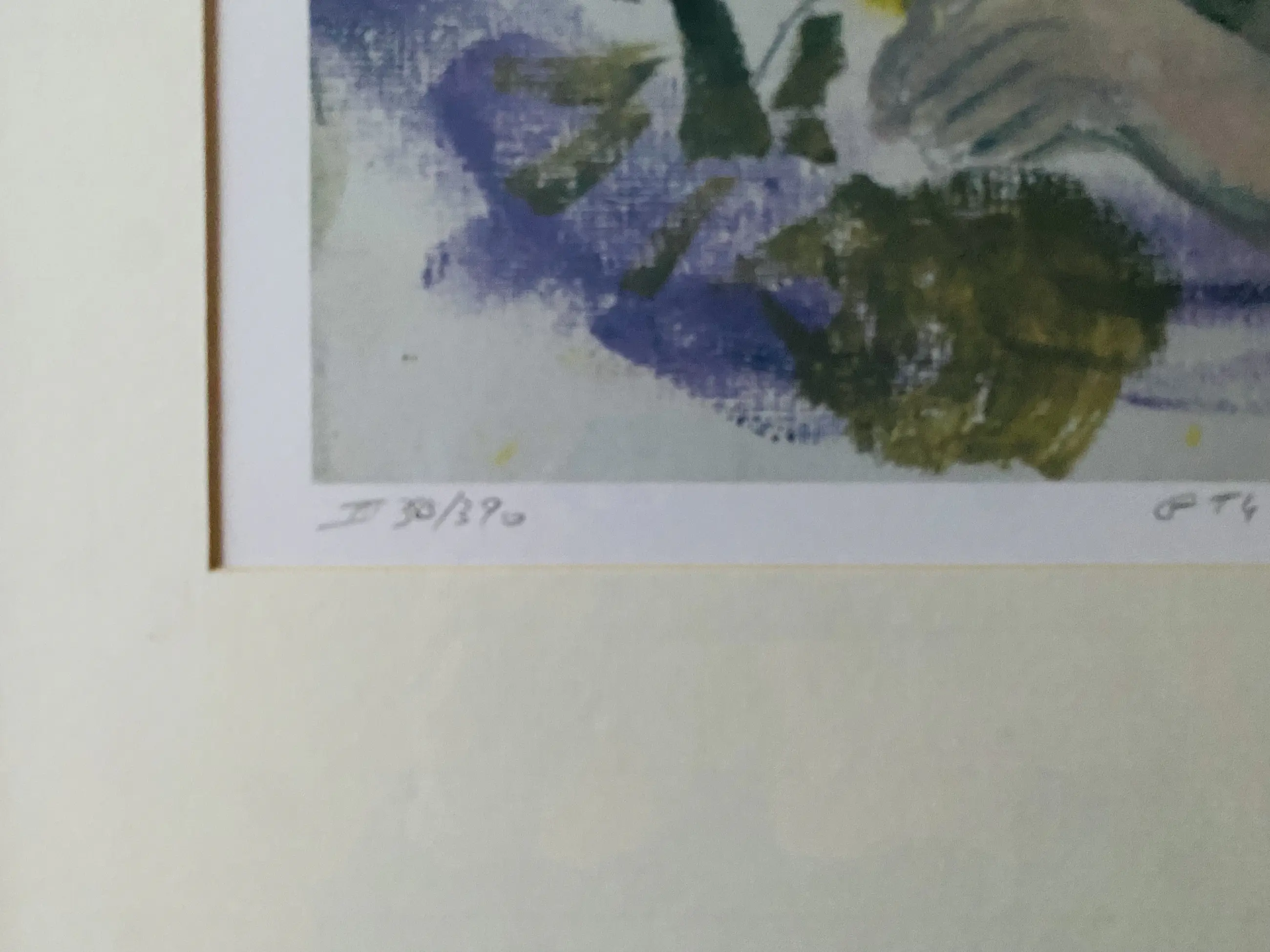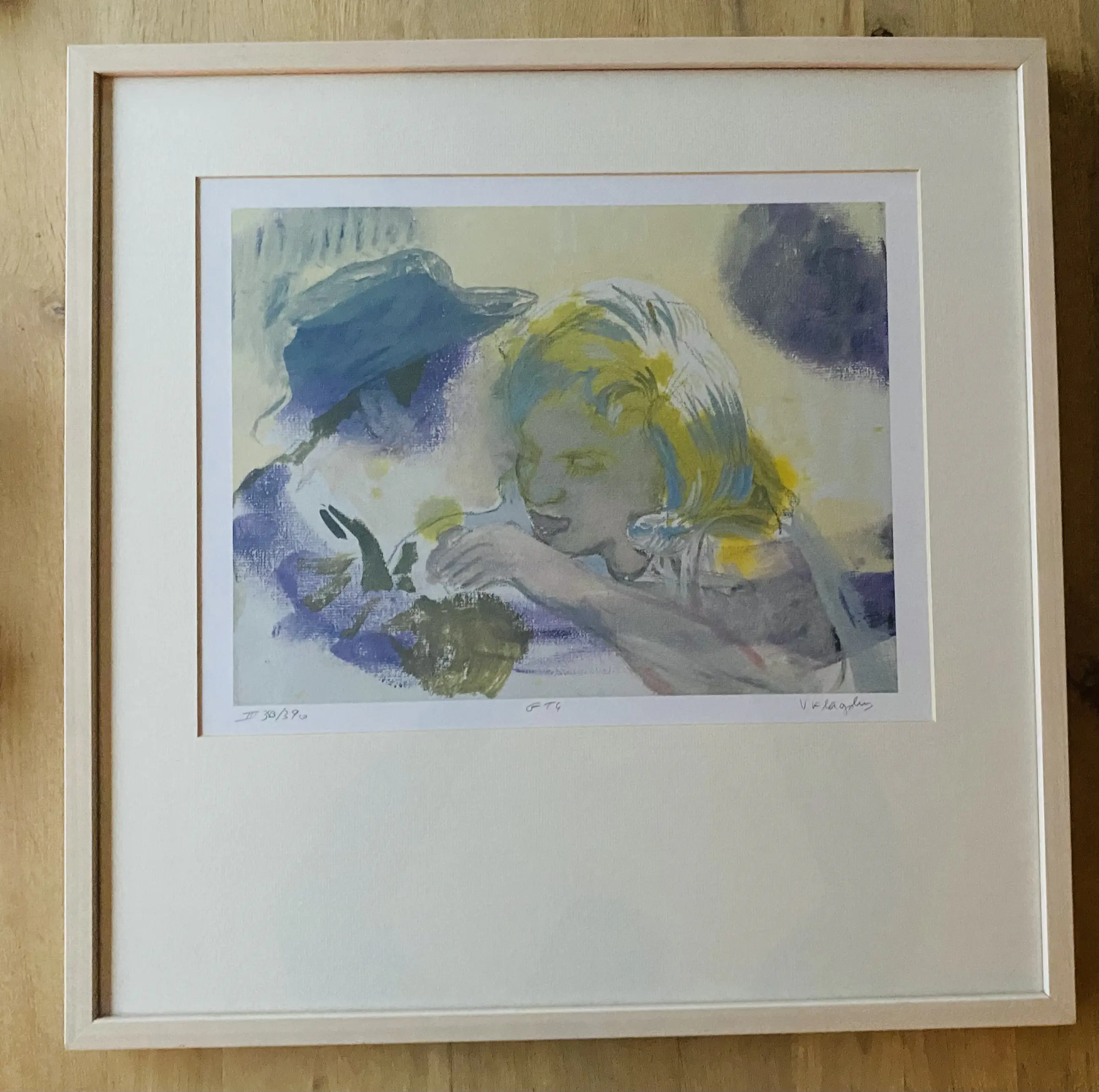 Mooie zeefdruk van Viviane Klagsbrun van een verliefd stel. Naam GT4 Oplage 390 Lijst heeft zeer kleine gebruikssporen. Verder in goede conditie.