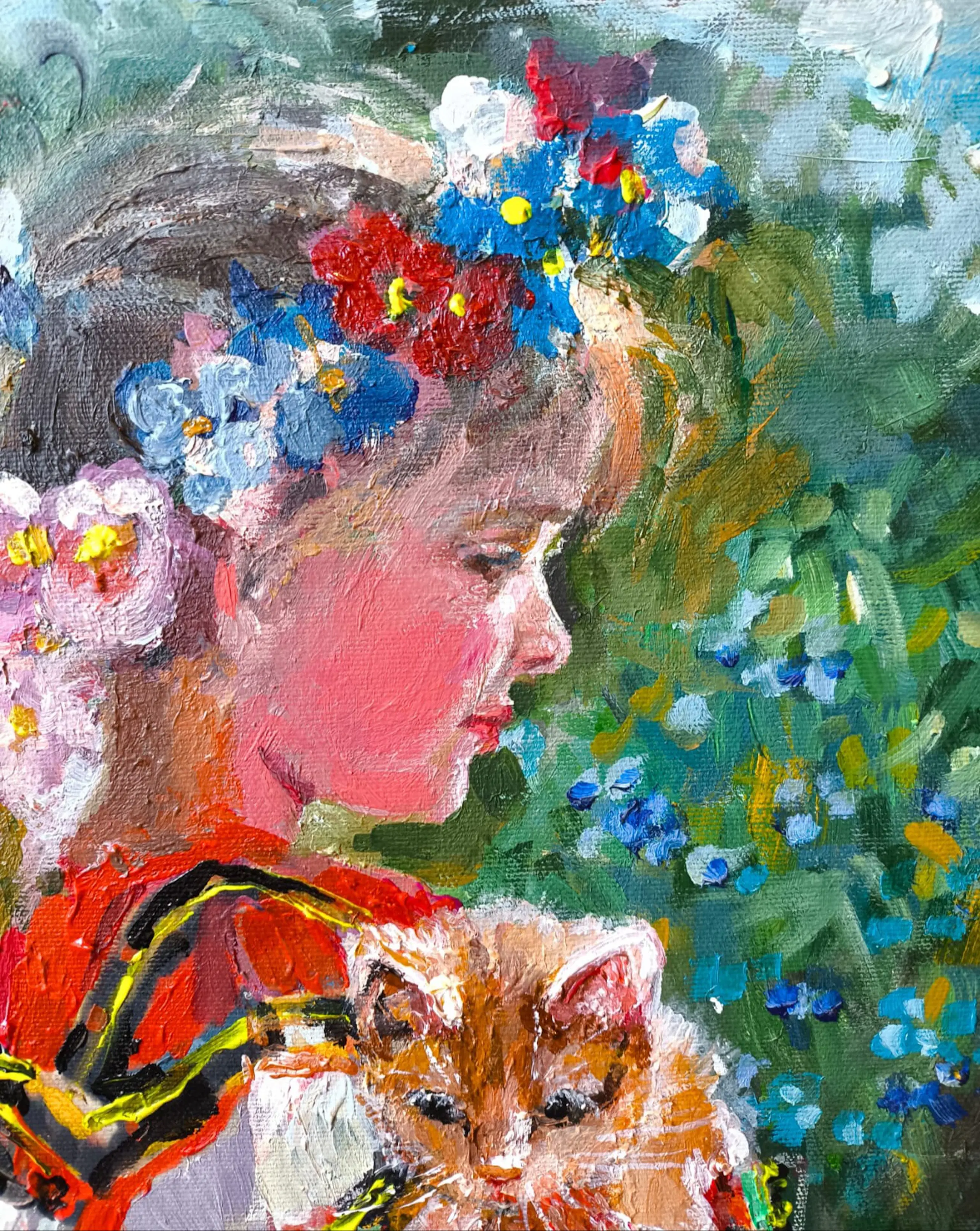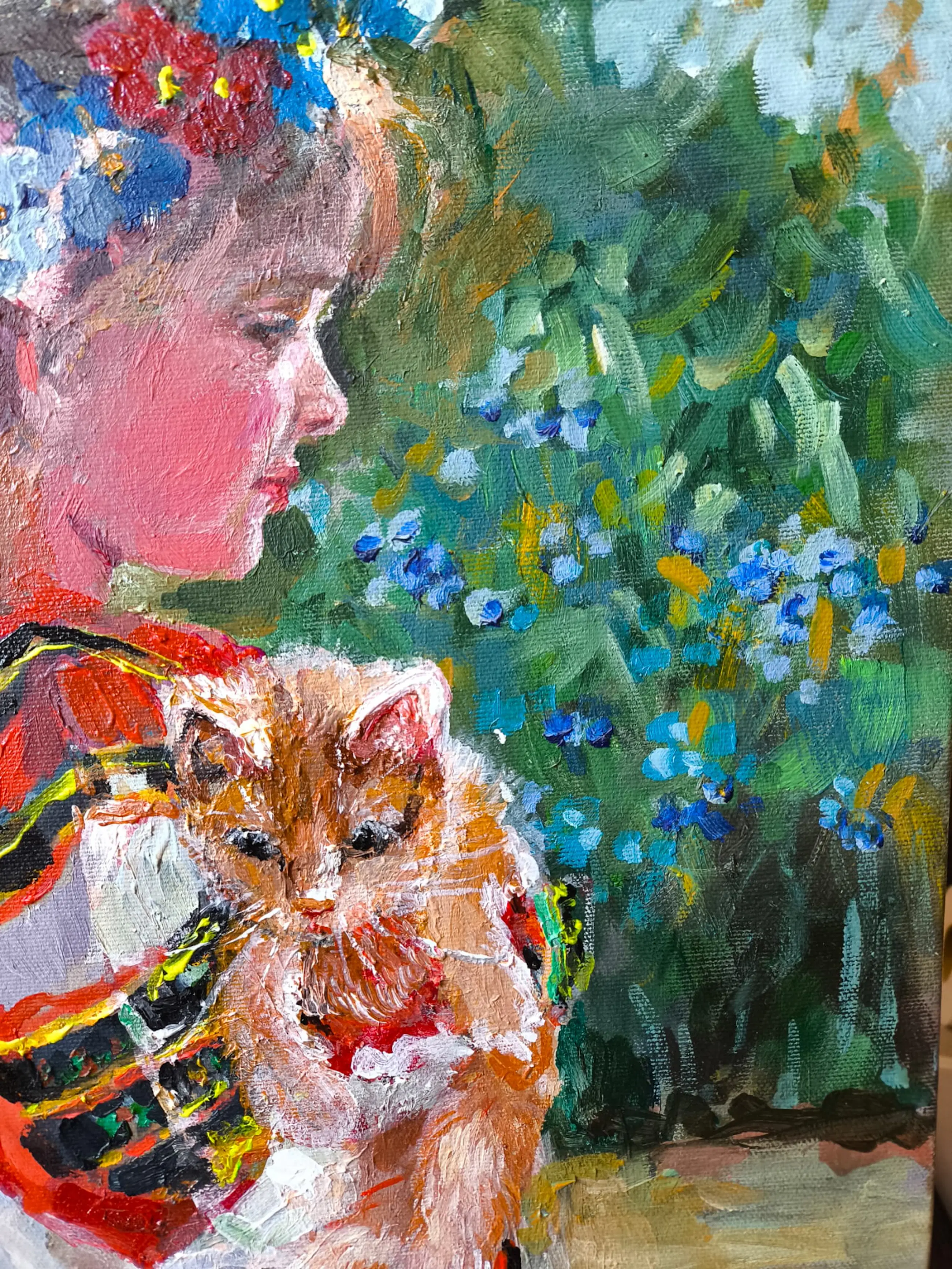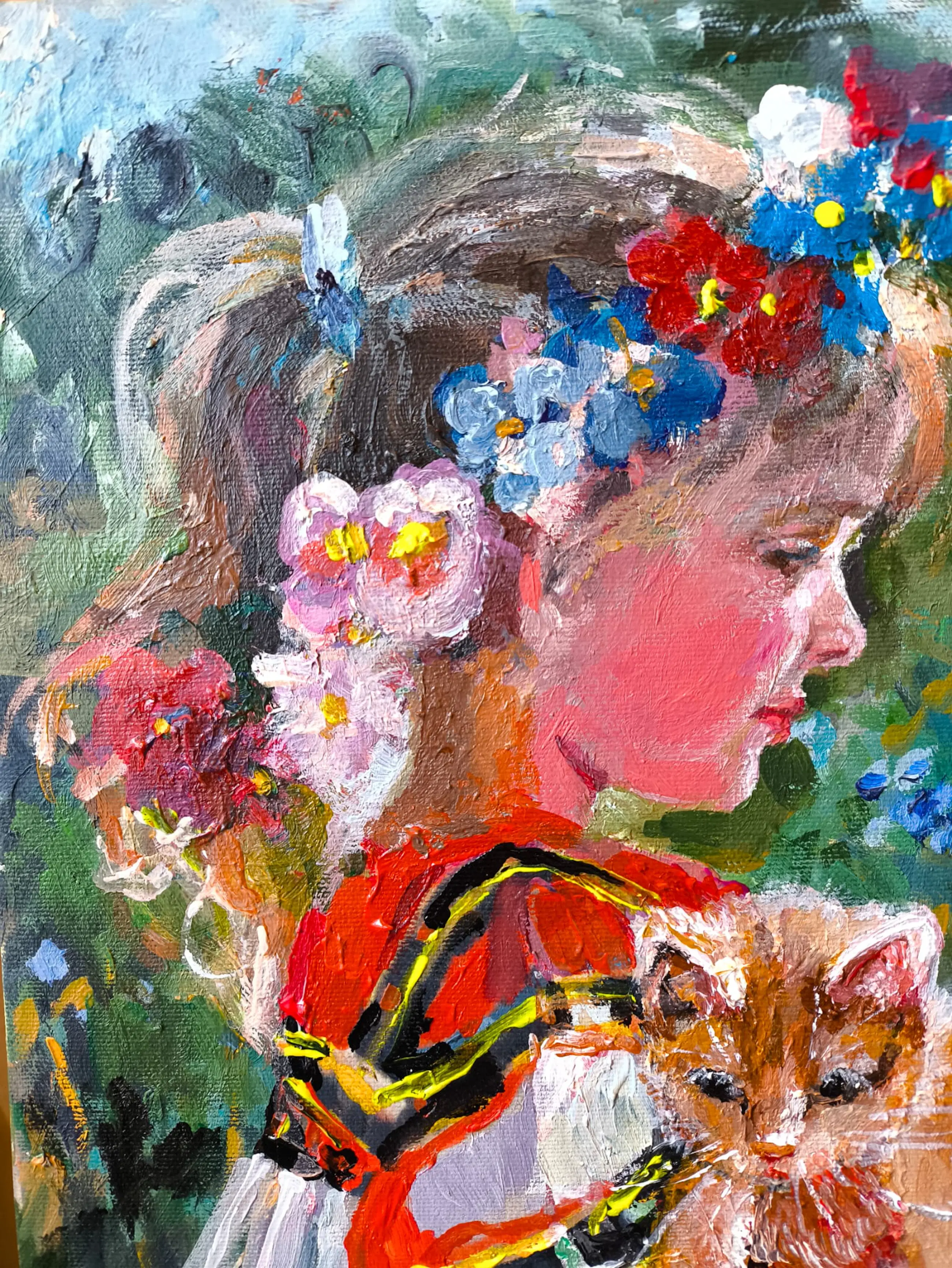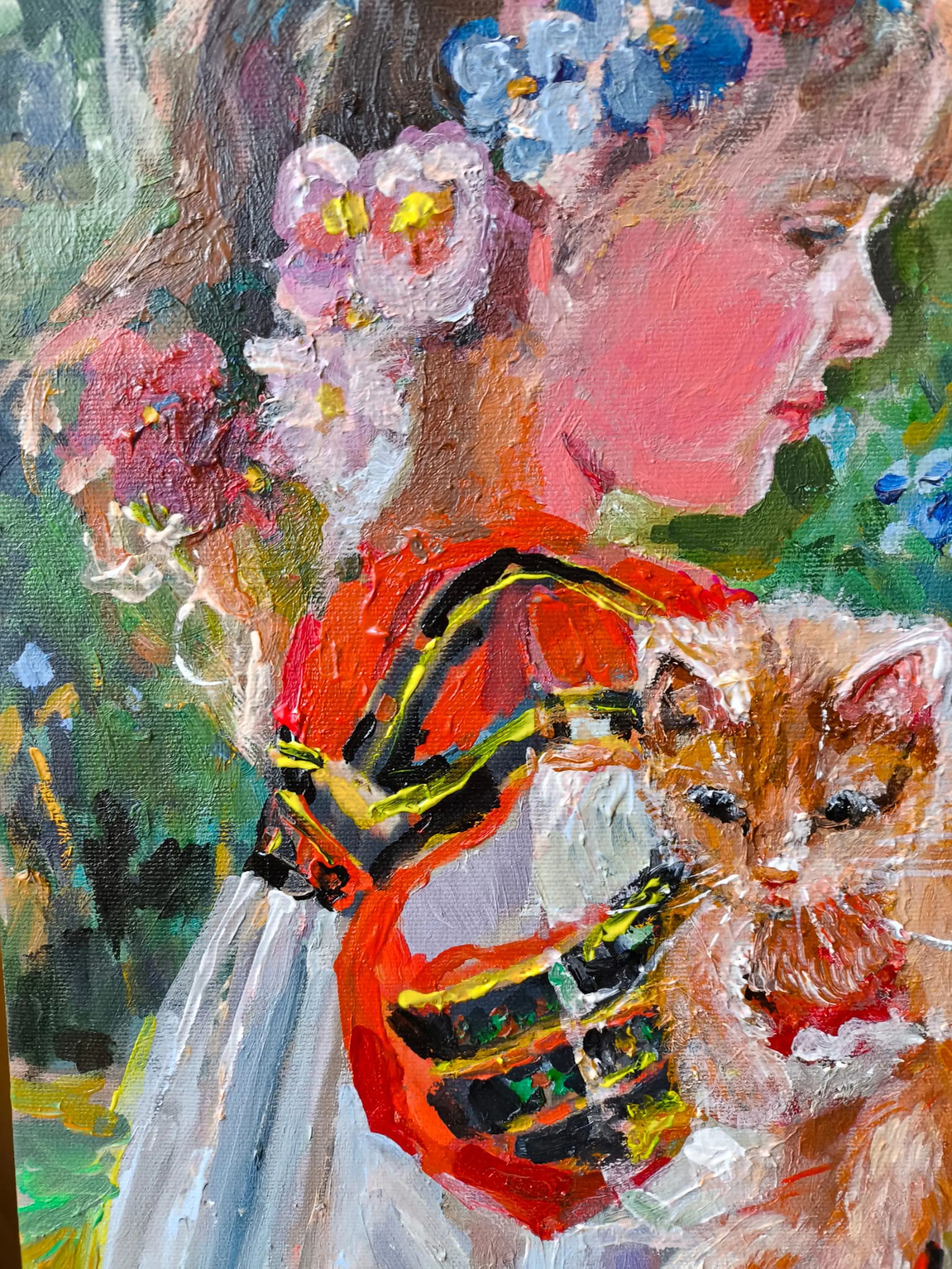 Het kitten, olieverf op doek, rechtsonder gesigneerd.