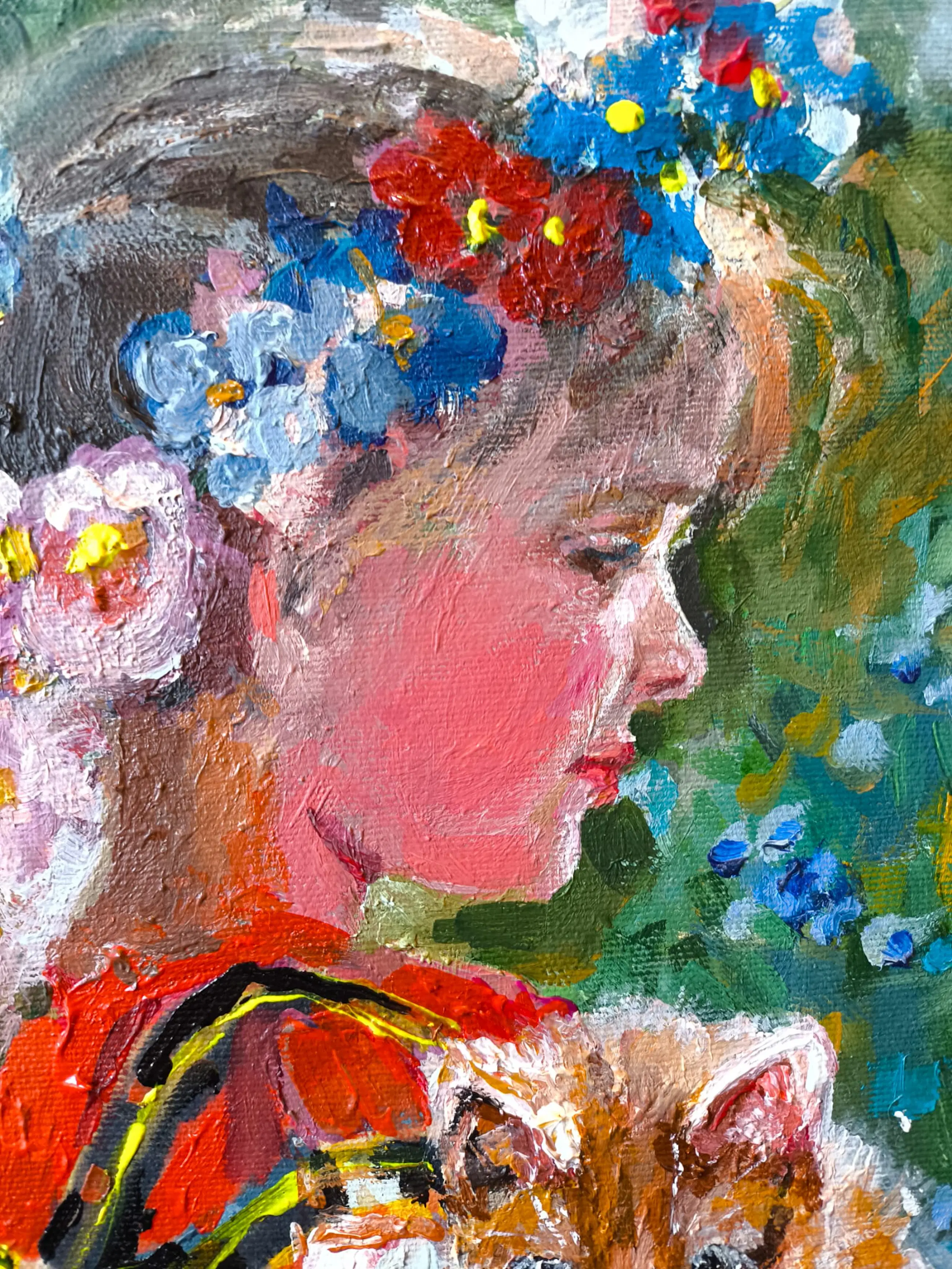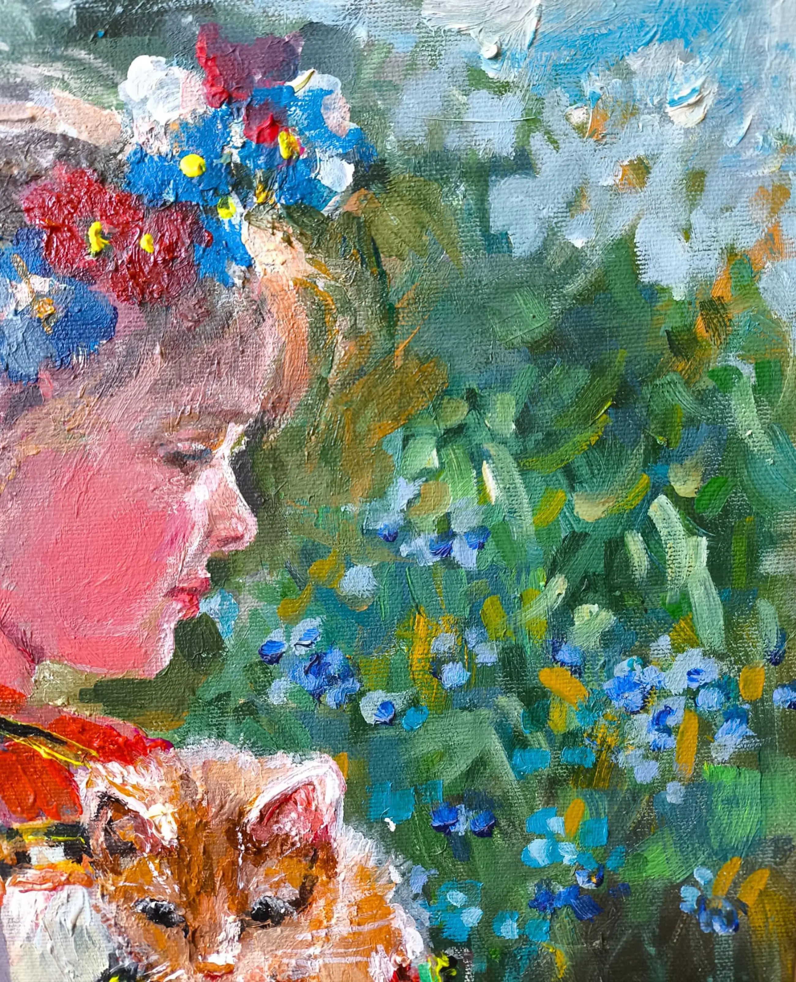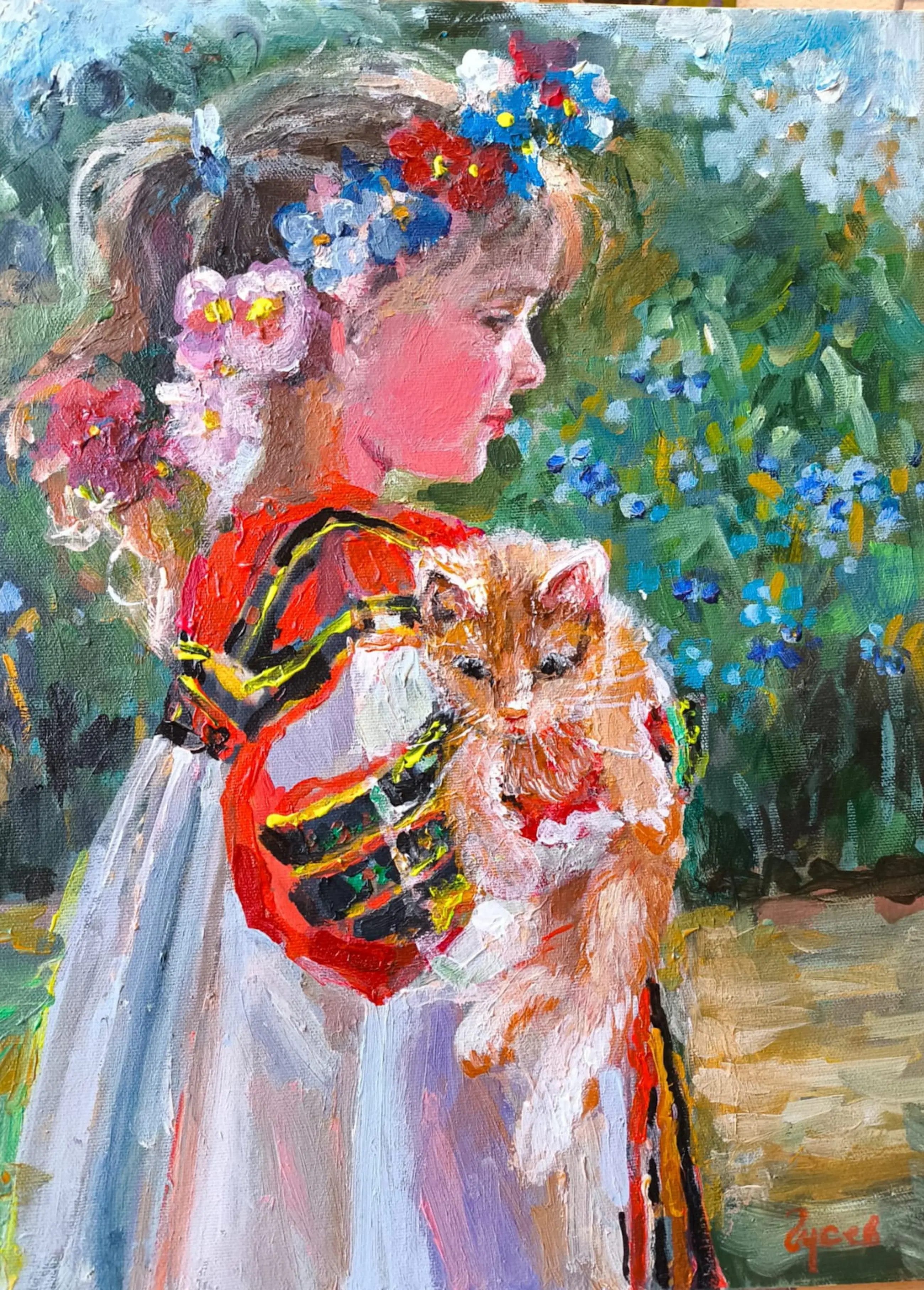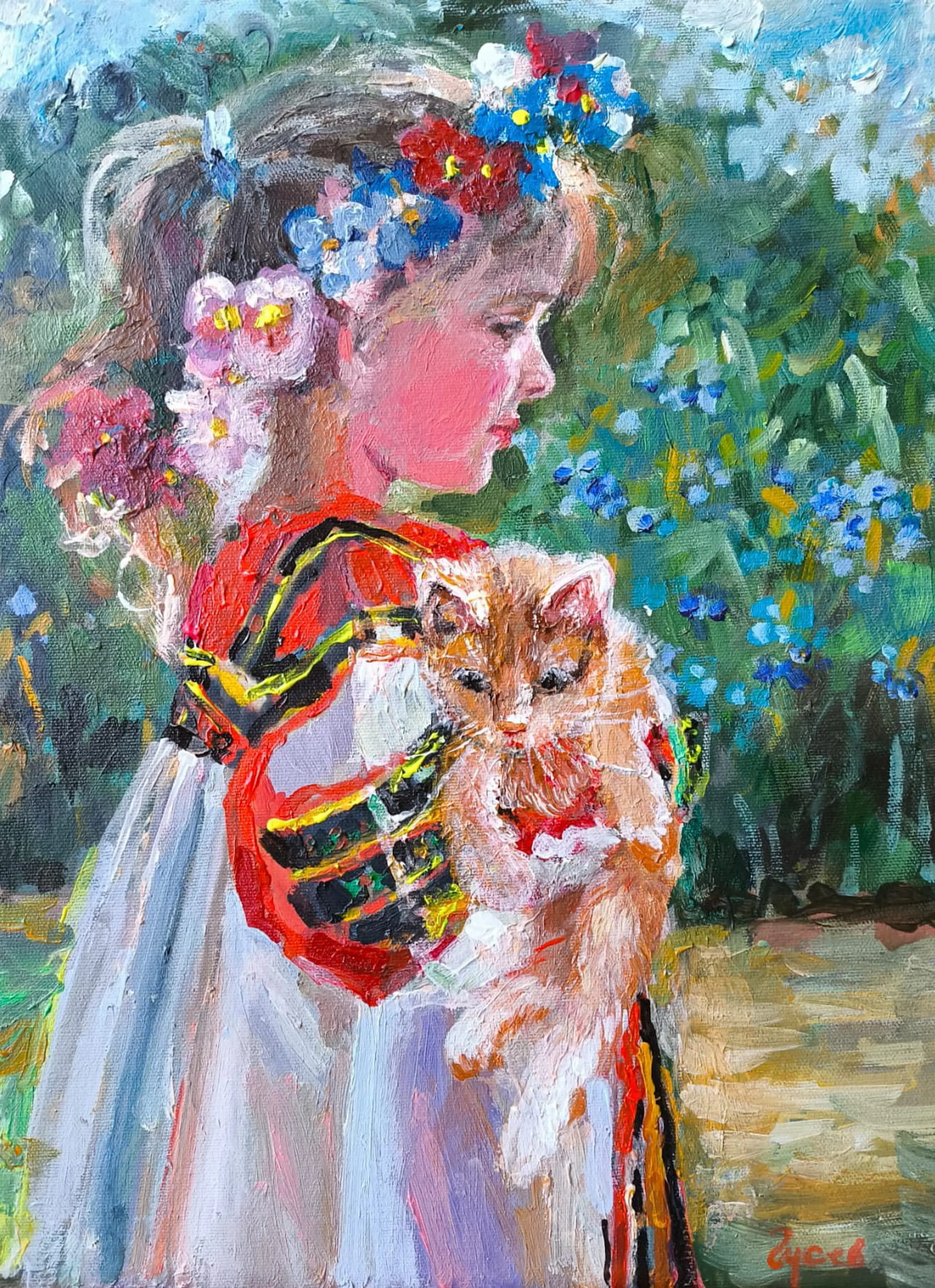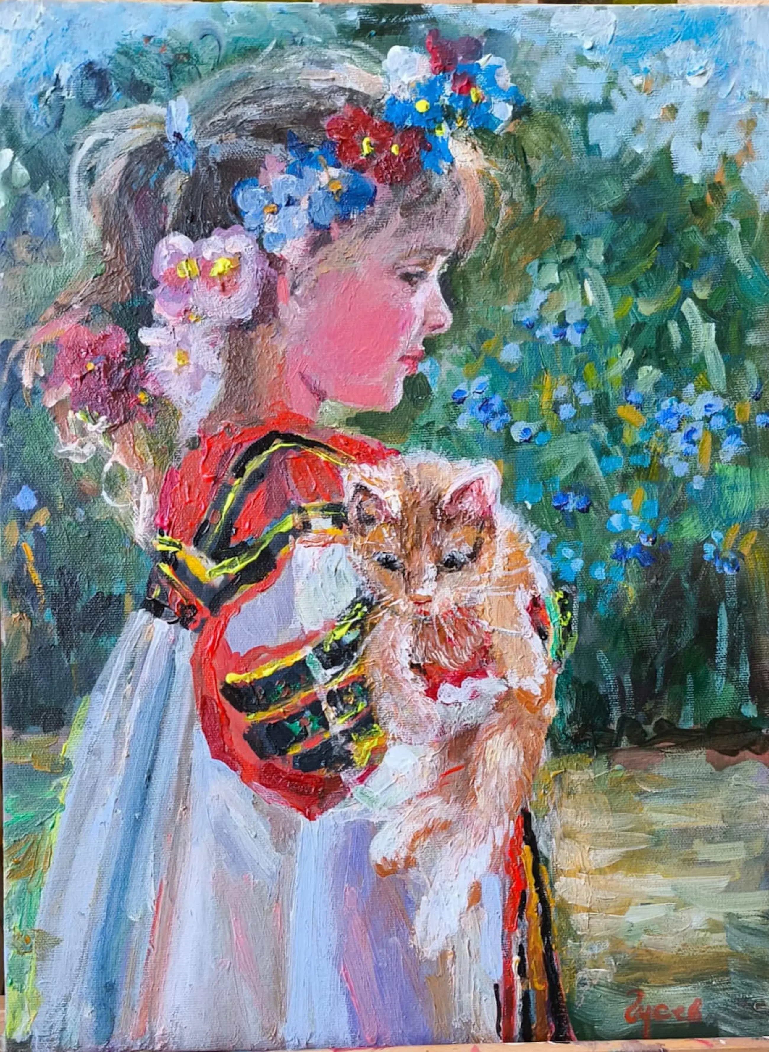 Het kitten, olieverf op doek, rechtsonder gesigneerd.