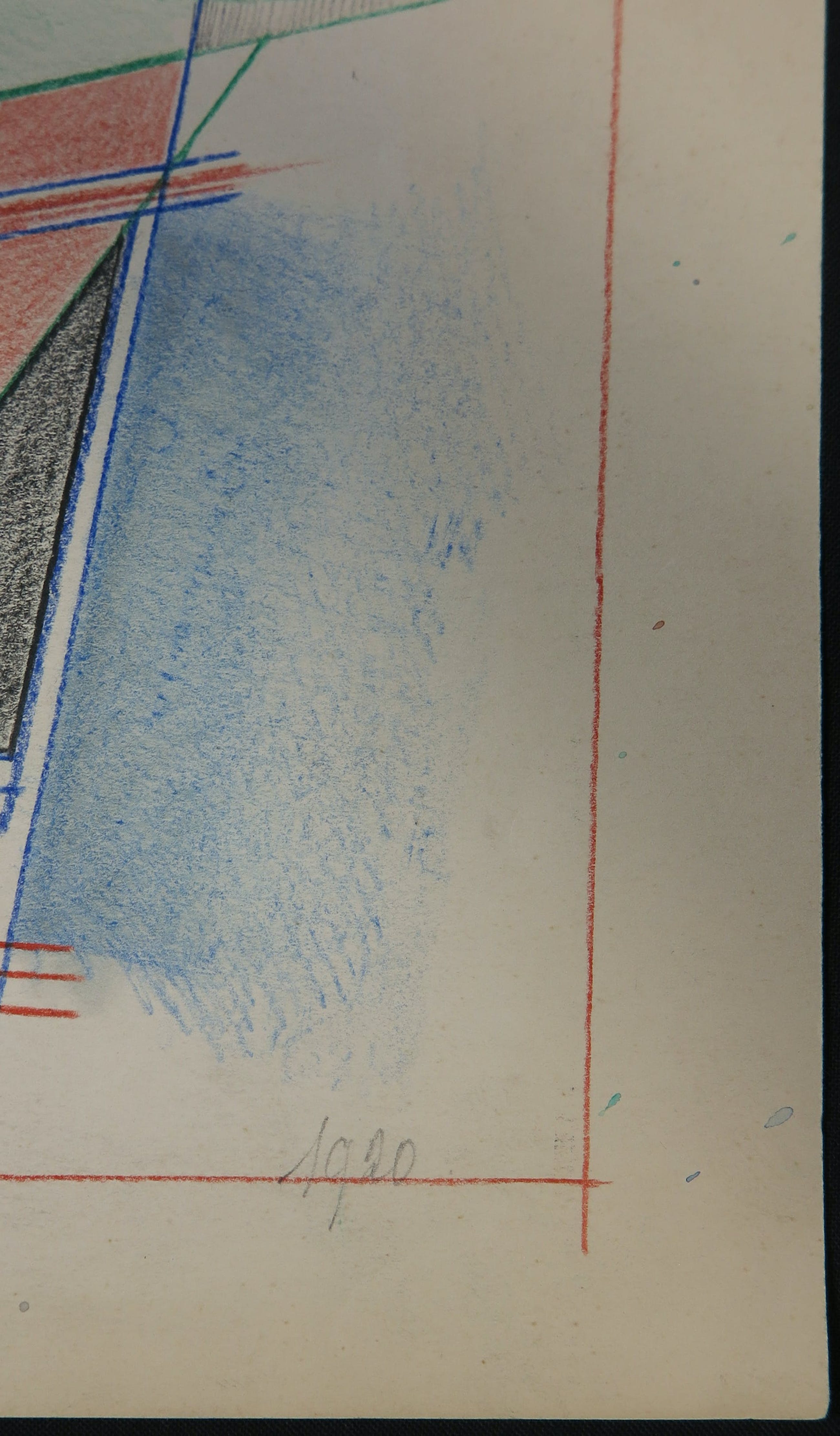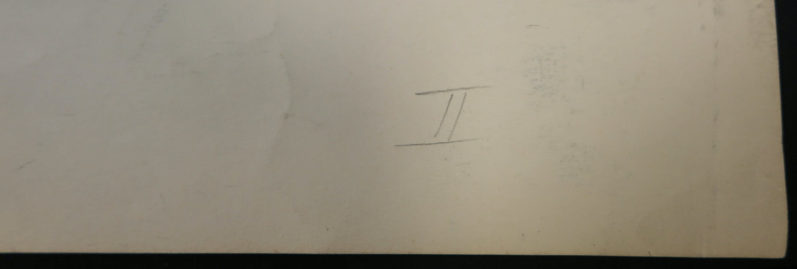| Verkleurd papier door leefdtijd. Enkele verfvlekjes die vermoedelijk tijdens het maakproces op het papier zijn gekomen. | |||
