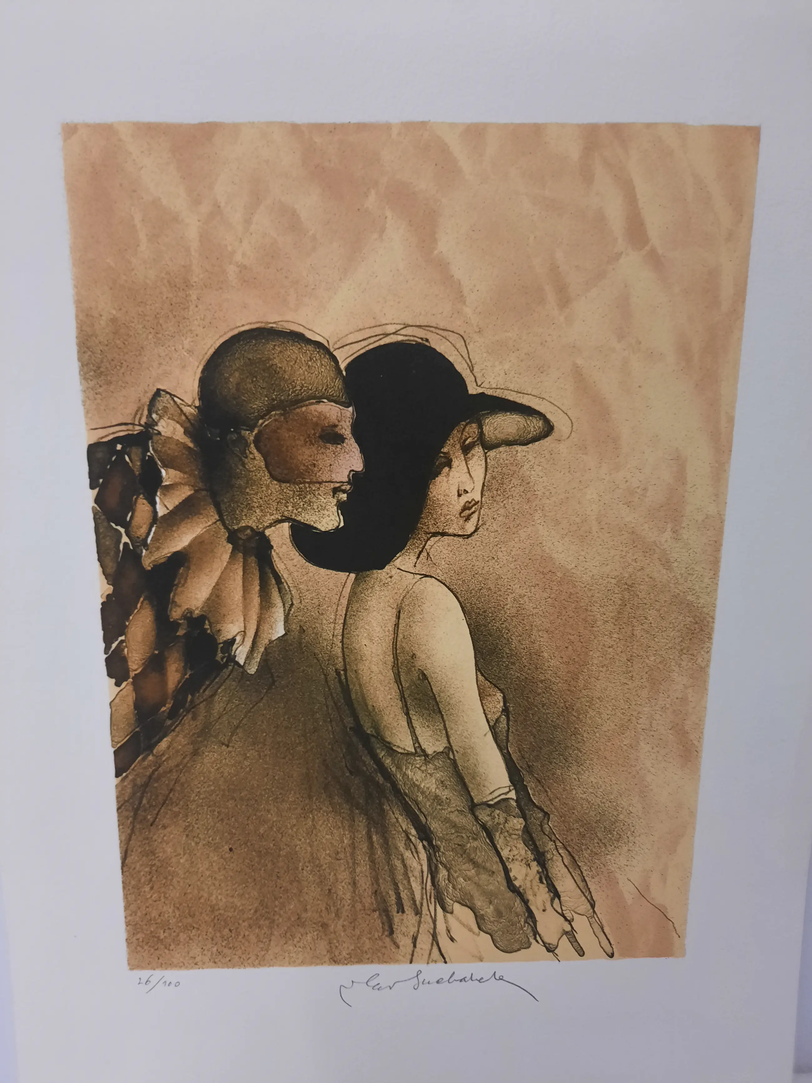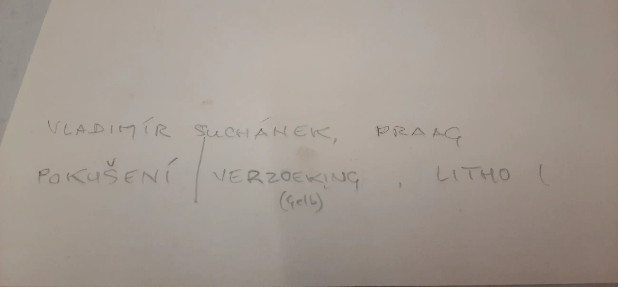 Een kleurenlitho van Vladimir Suchanek - De verzoeking (geel) - Pokušení