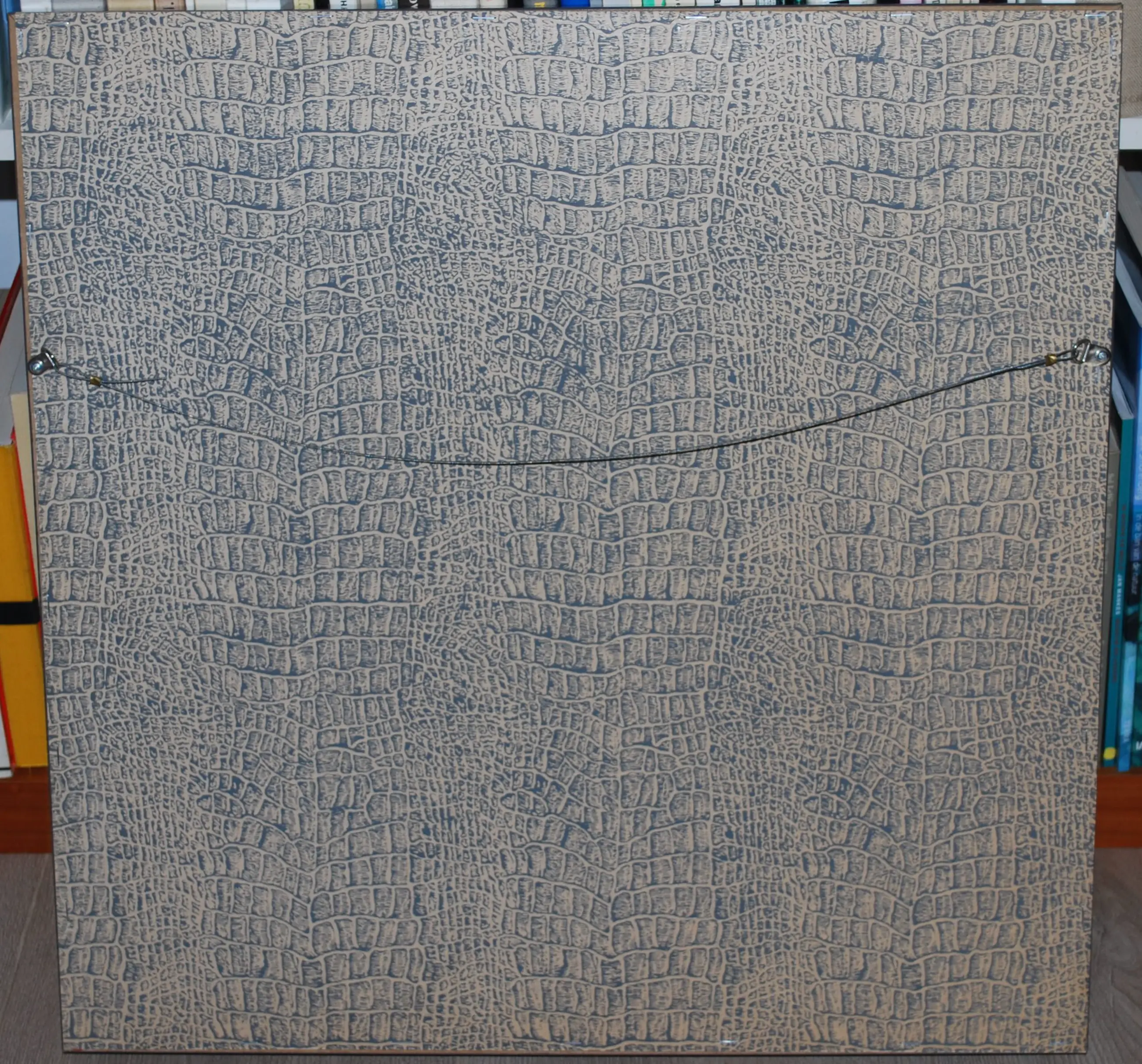 Bladmaat 50x50 cm. Het blad is los geplaatst achter glas. In een strakke grijze lijst.