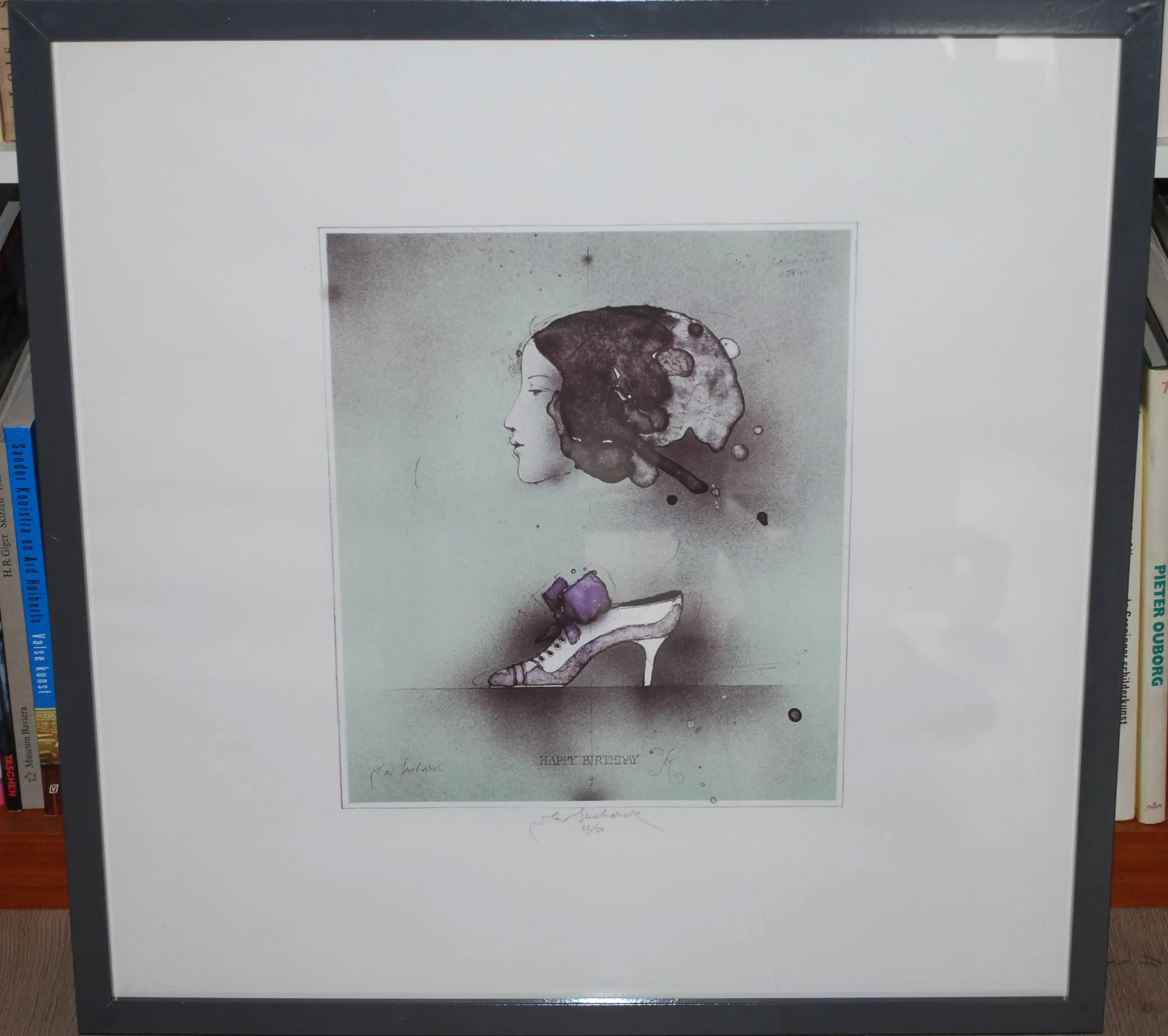 Let op: Glasbreuk bij verzending is het risico van de koper. Verzending buitenland zonder lijst, het werk wordt gerold in een koker. Shipping abroad without frame, work rolled in a tube.