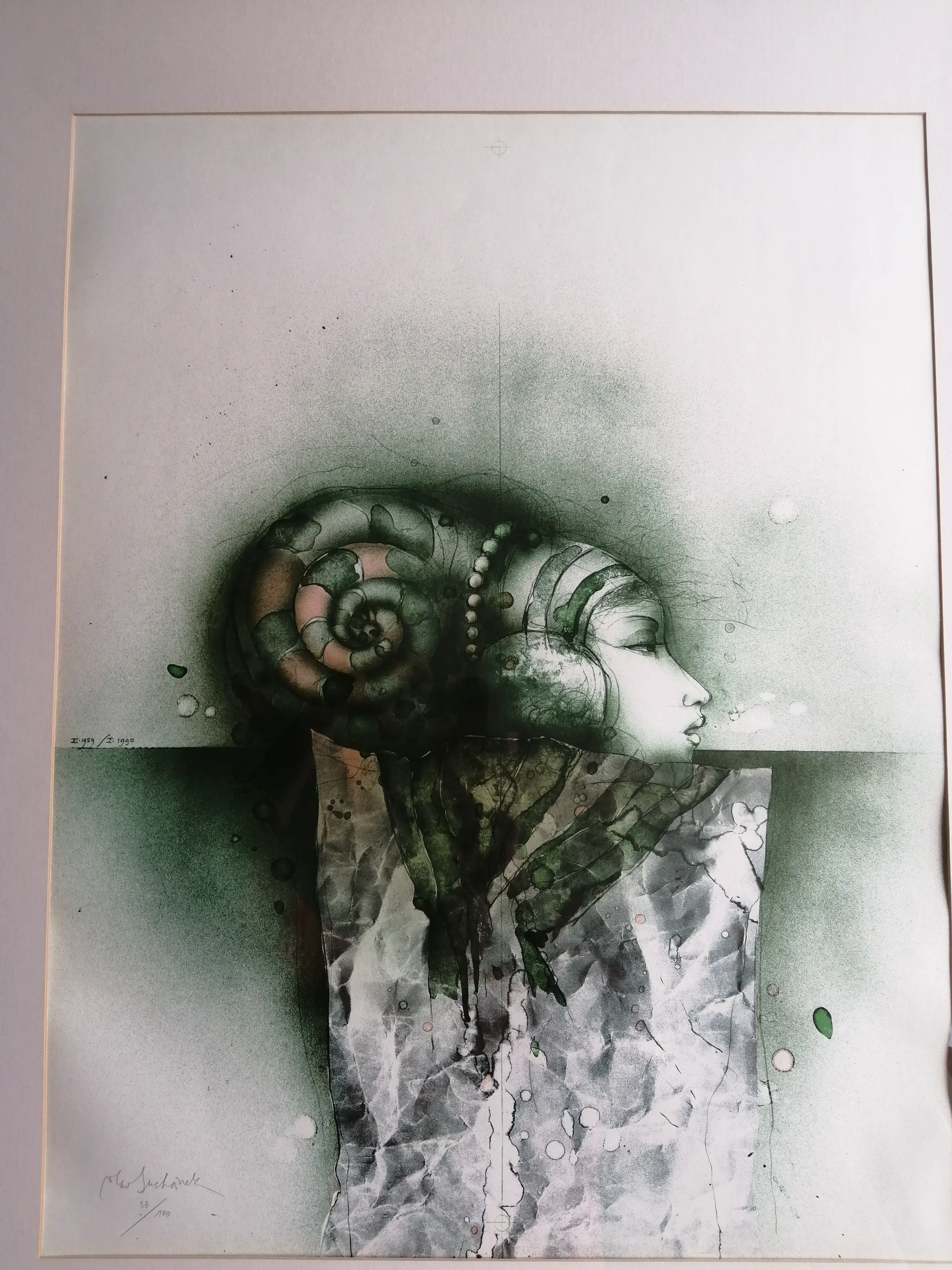Het werk heeft een goede kwaliteit en lijkt niet beschadigd. het is niet uit de lijst gehaald. de inlijsting kan veel beter, het heeft ruimte tussen paspartou en werk. mijn voorstel is het werk opgerold te verzenden, (zonder lijst en paspartou.)