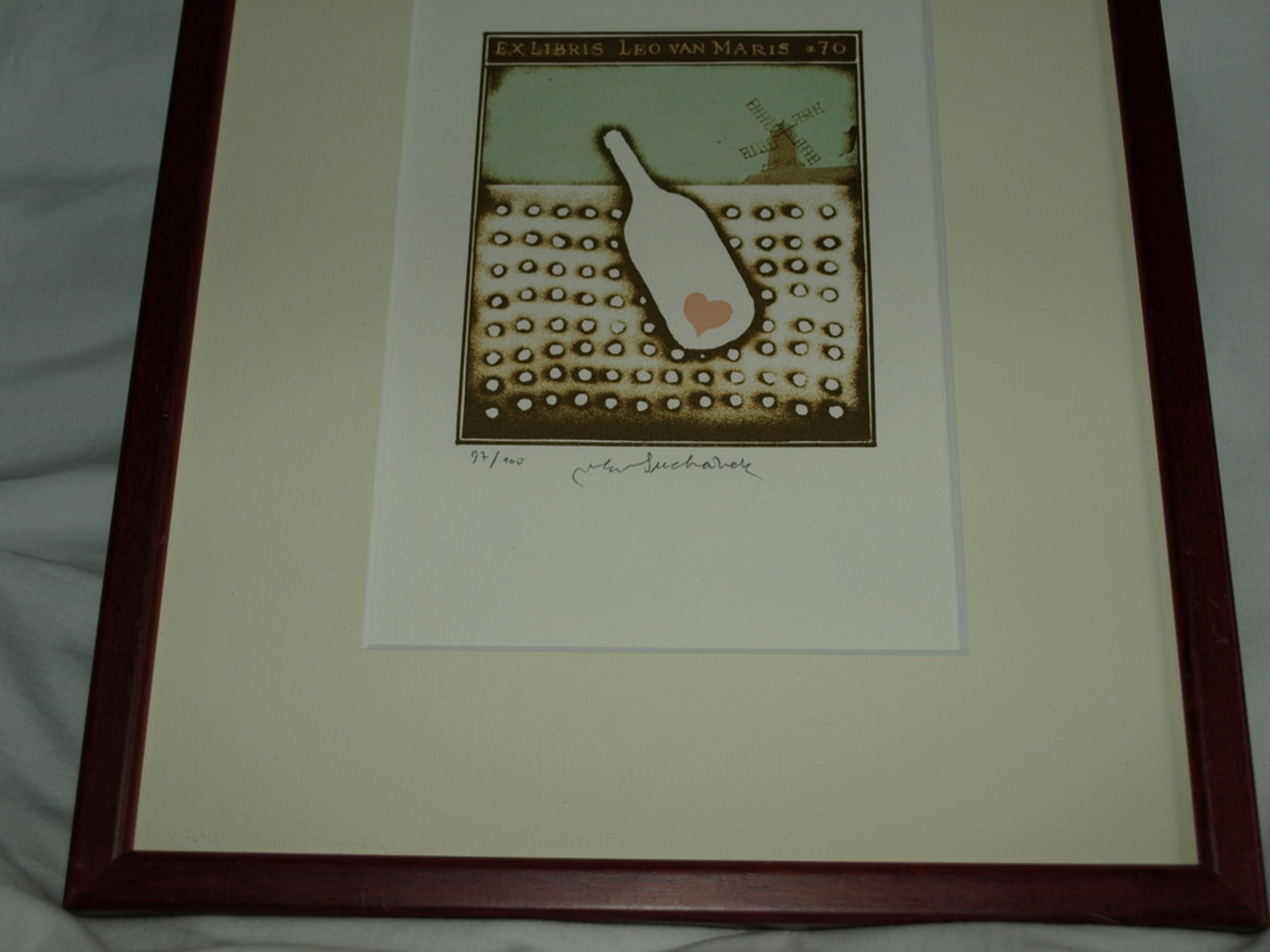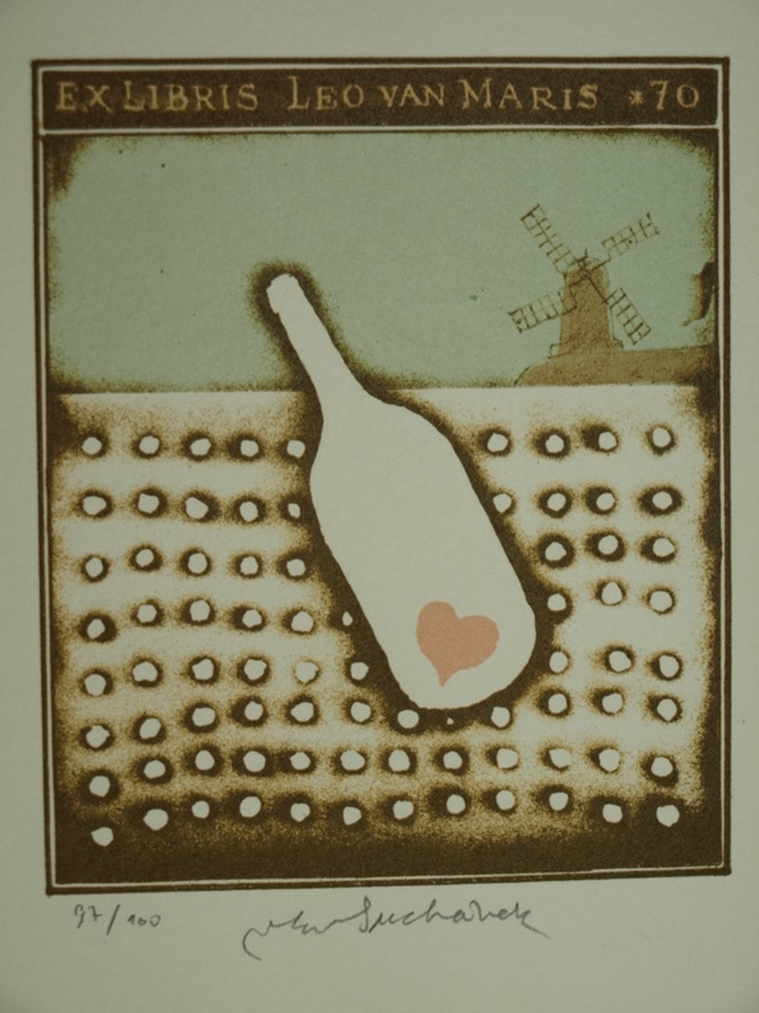 Een litho / ex libris van Leo van Maris gemaakt door de Tsjechische kunstenaar Vladimír Suchánek, in Nederland bekend geworden door zijn boekomslagen voor boeken van Boudewijn Büch.