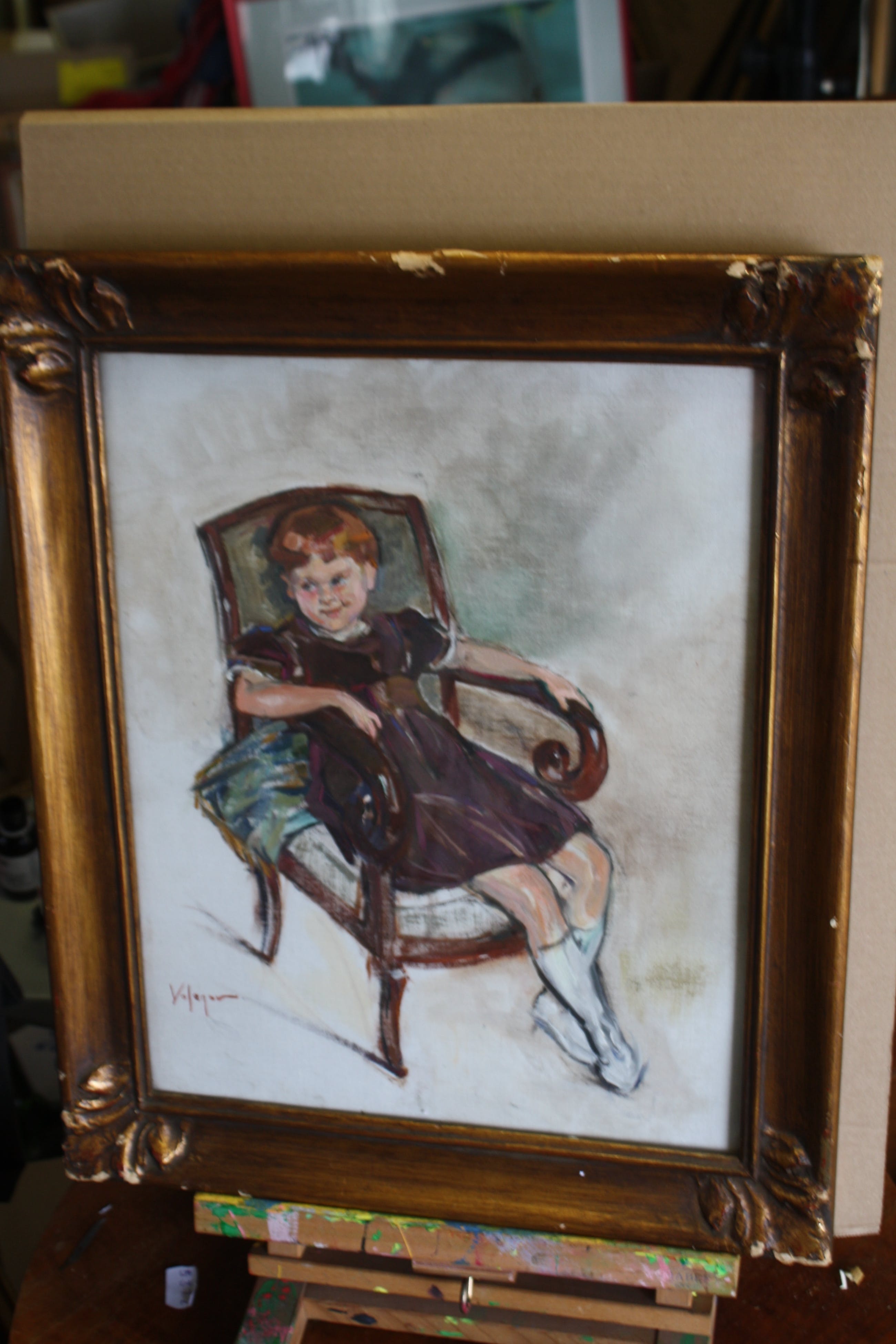 Vladimir Volegov geb 1957Russisch meisje in stoelMedium ; olieverf op linnen/ oil on canvasMaat 36 x 46 cmgesigneerd ; links onder volegov / on the left below volegovPeriode ; 2e helft 20 e eeuwGekaderd in een oude houten lijst in de maat 45 x 54 cm -Staat schilderij ; zeer goede staat, geen herstellingen zie fotopainting very good condition , no damagesStaat lijst ; goede staat , heeft hele kleine rand beschadigngen, wordt er gratis bijgeleverdFrame ; good condition , some minor damages, free of auctionVerzenden aangetekend pakketOphalen in Zaandam mogelijk op afspraak