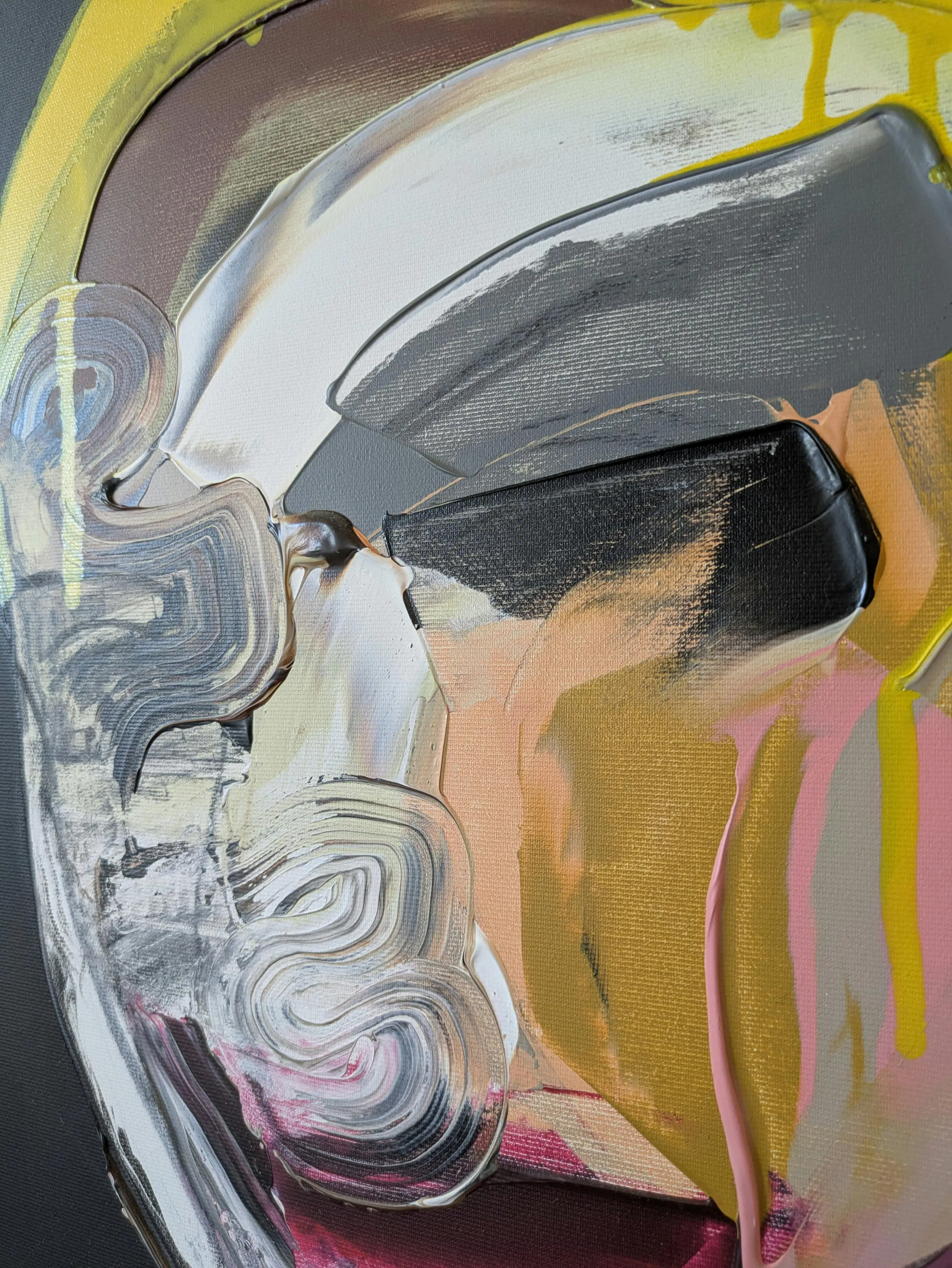 Dit werk is een van de eerste doeken in de "Observer" 2-reeks (2019). Het portret kenmerkt zich door een fel kleurgebruik binnen een vervreemdende vorm van abstract expressionisme. Als een van zijn voorbeelden noemt Vladinsky, niet onverwacht, Francis Bacon.