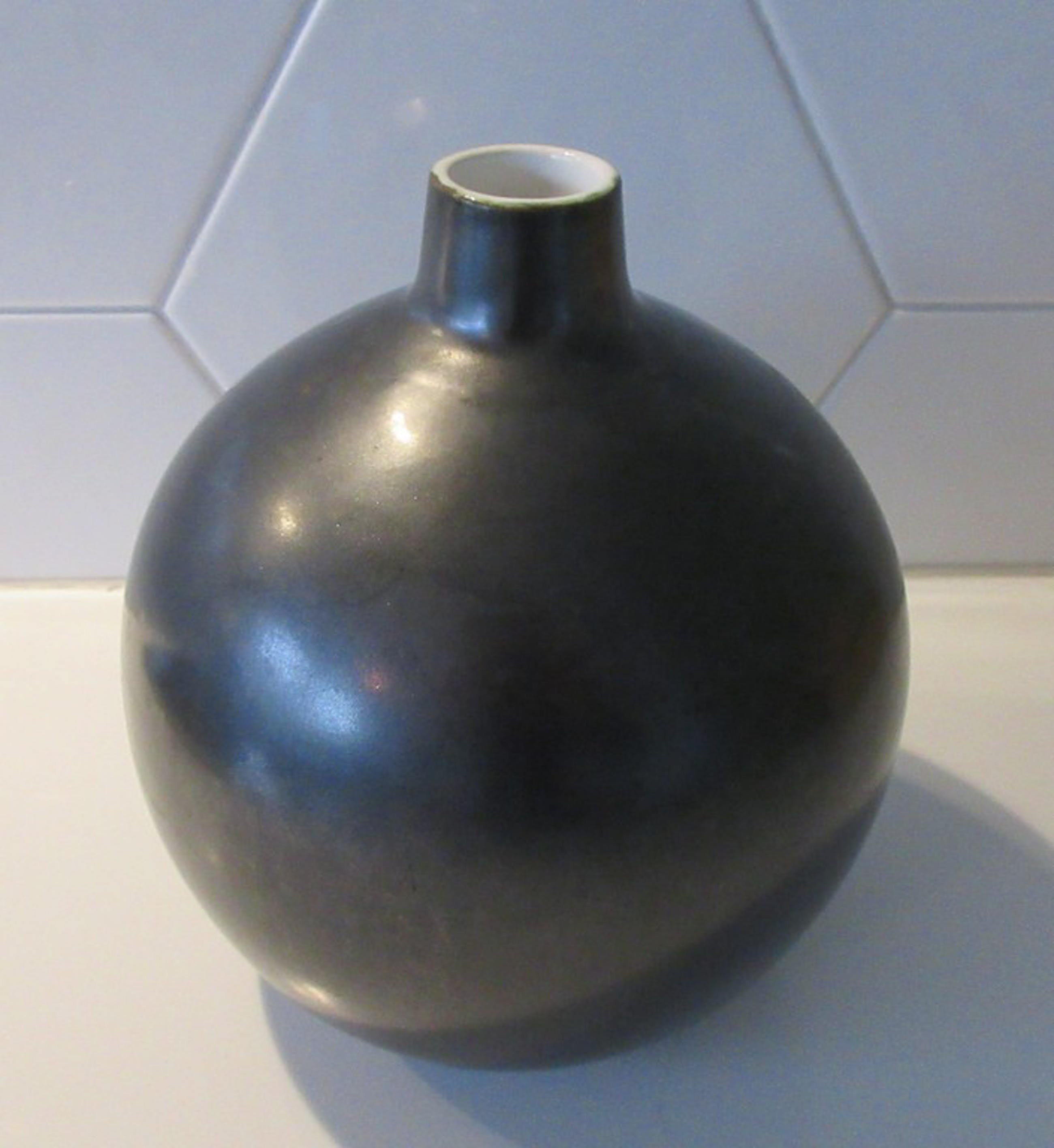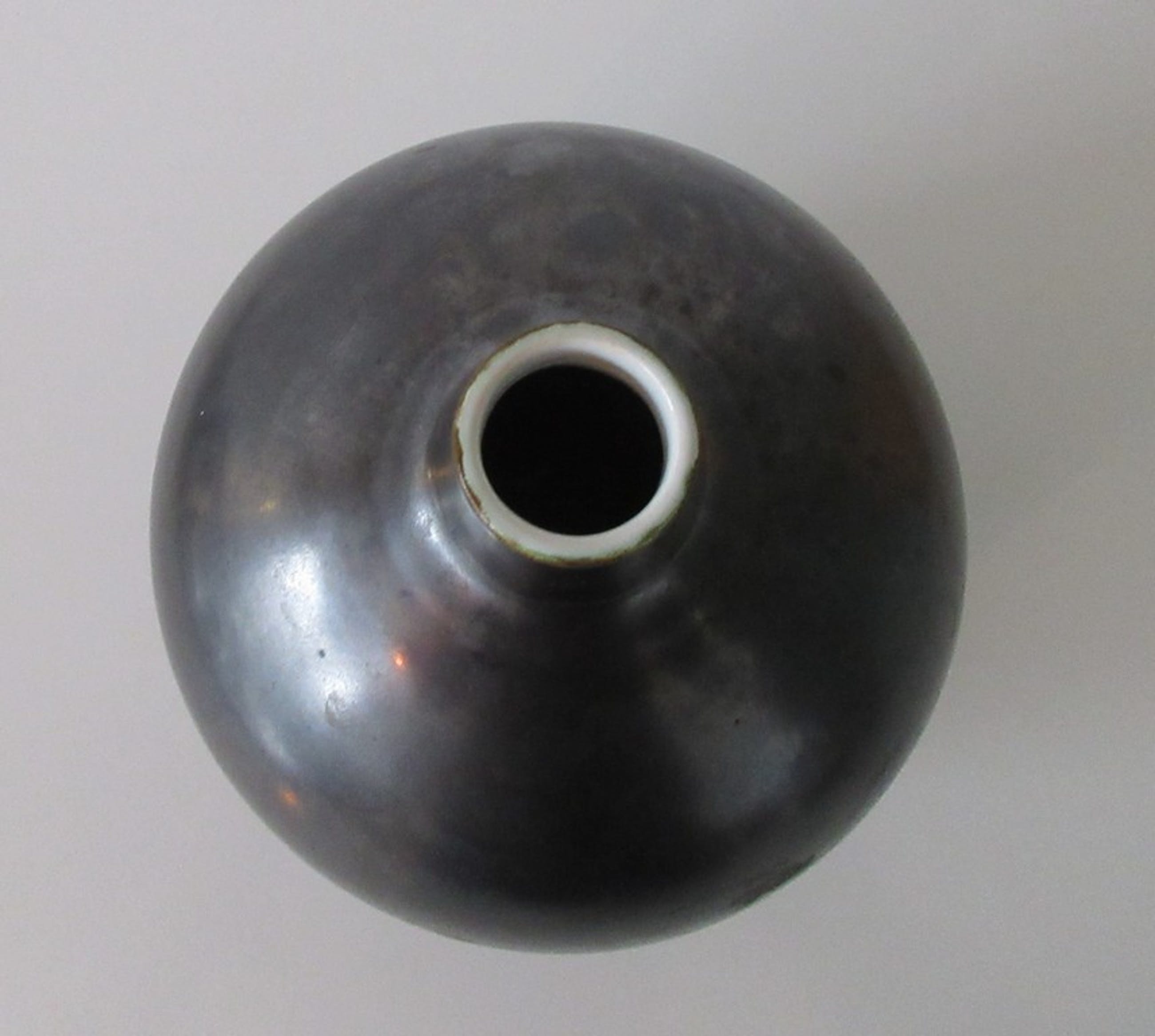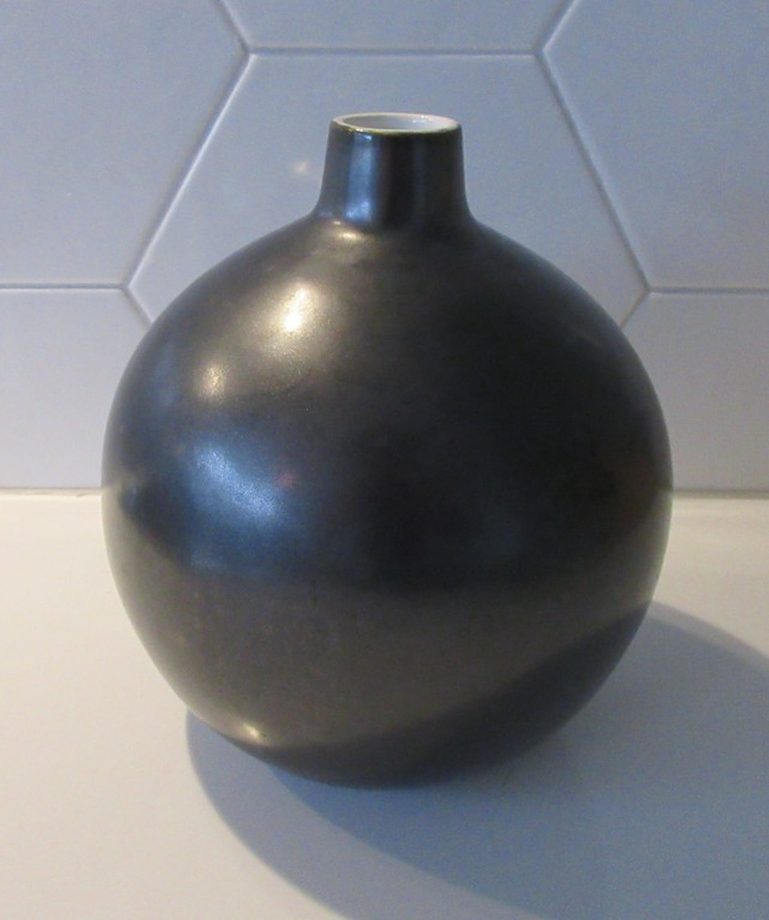 Vorm Keramiek Doetinchem - Antraciete Bolvaas, in onbeschadigde conditie. Aan onderzijde met de hand gemerkt en gesigneerd W.