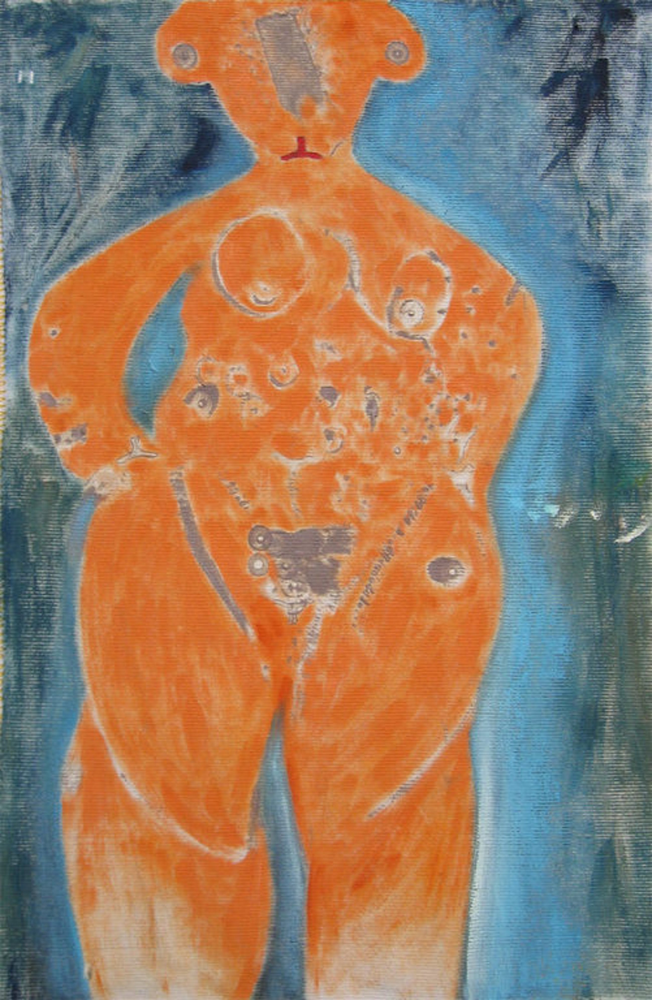 Vreemd naakt - olieverf op doek. Kunstenaar en datum onbekend, vandaar lage startprijs. Afm. doek: 46 x 70 cm. Verzending NL 10,- Belgie 15,-