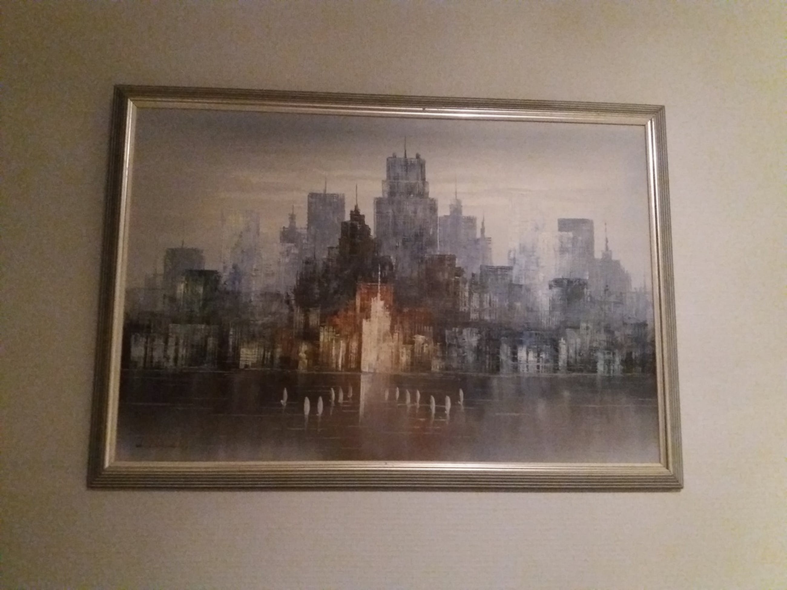 Dit gesigneerd werk van W. Bonsall is in perfecte staat past perfect in een hedendaags interieur. W. Bonsall is gekend voor zijn skylines. Olieverf op doek en prachtig ingelijst.
