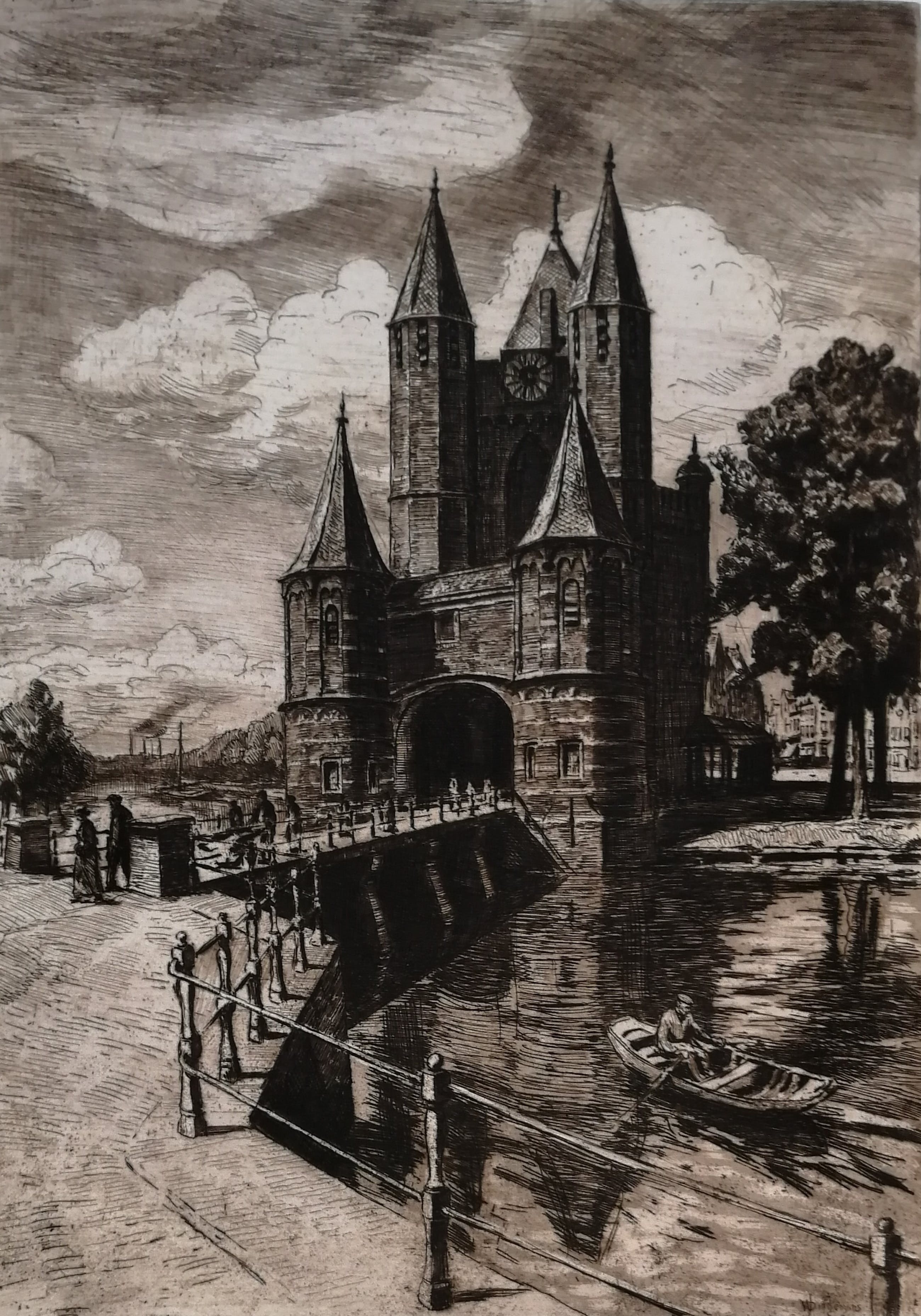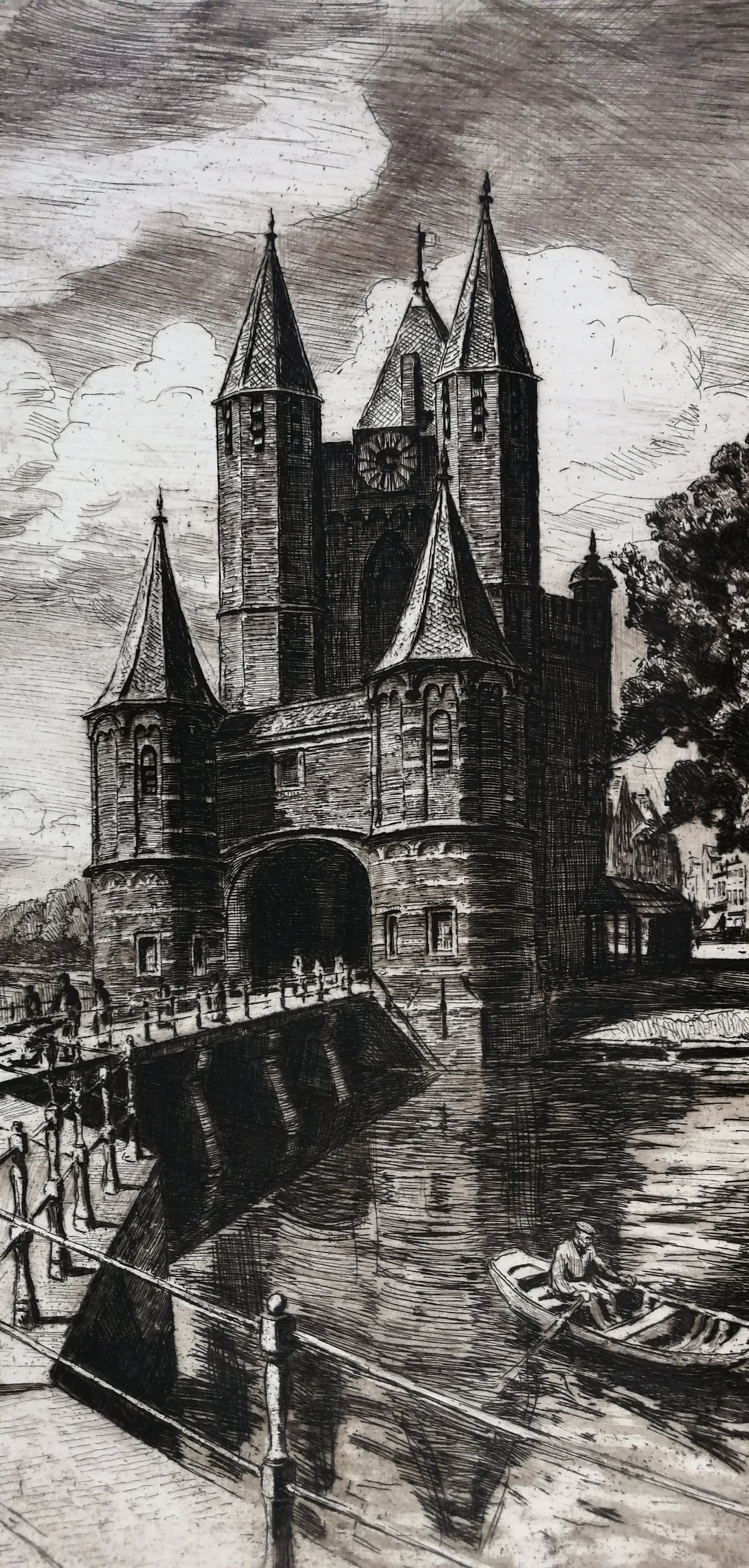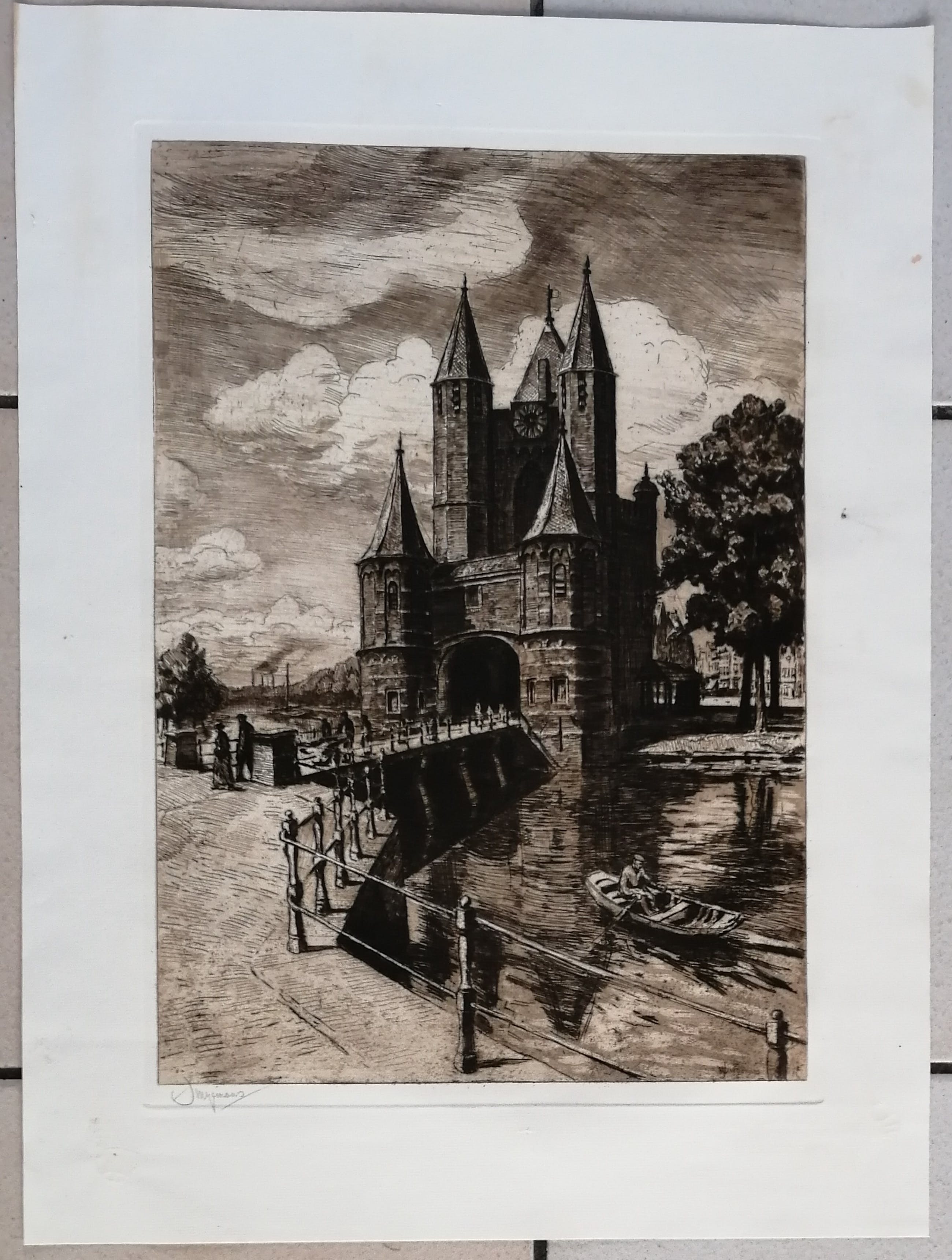 Krachtige grote ets.Potlood gesigneerd linksonder.In de plaat gesigneerd rechtsonder.Beeldmaat 47x33 cm. Bladmaat 62x46 cm. Losbladig.Waalco Jans Dingemans werd geboren te Lochem op 16 juni 1873 en overleed te Haarlem op 9 oktober 1925.Opleiding aan de Academie Minerva te Groningen en de Academie voor Beeldende Kunst te Den Haag. Kreeg ets lessen van M. Kramer. Verzend- en verpakkingskosten binnen Nederland 12,50 euro.Buitenland op aanvraag.