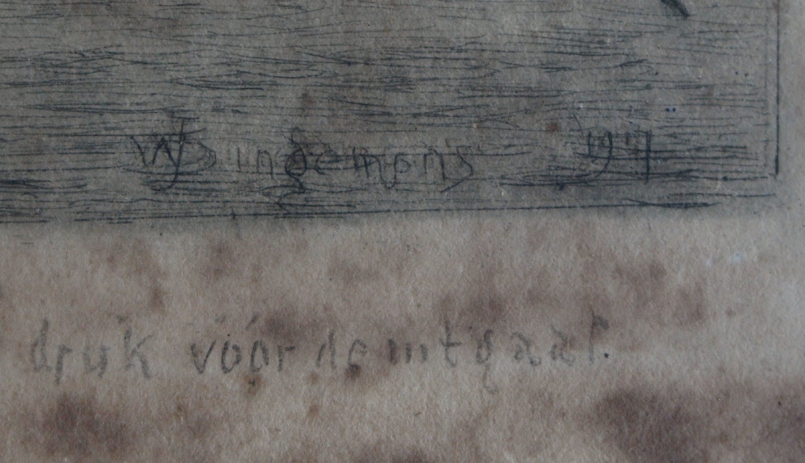 -Gesigneerd met potlood linksonder en is ook in de ets gesigneerd en gedateerd rechtsonder.