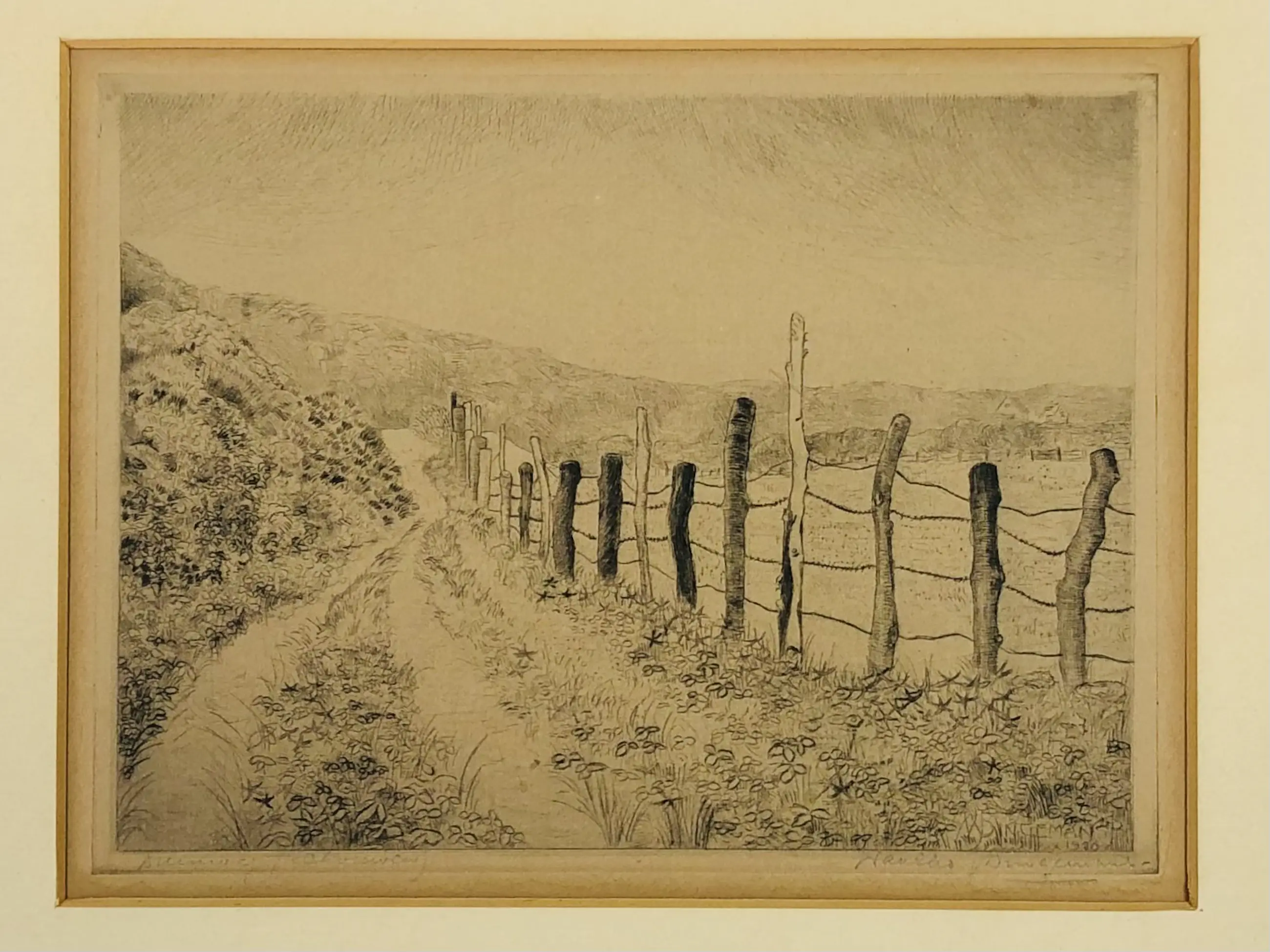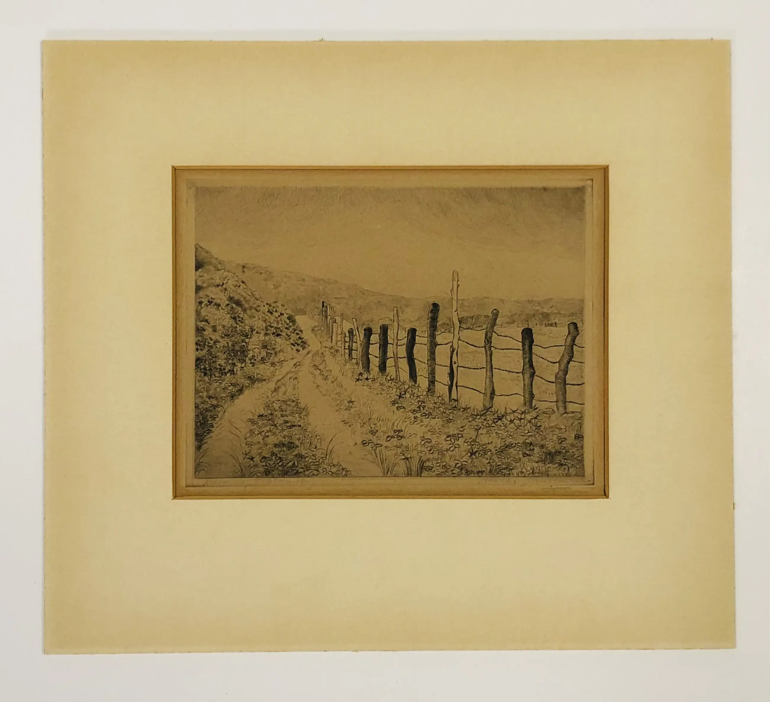 Fraaie ets van Waalko Jans Dingemans (sr.) (1873-1925). Het werk is op leeftijd en egaal verkleurd.