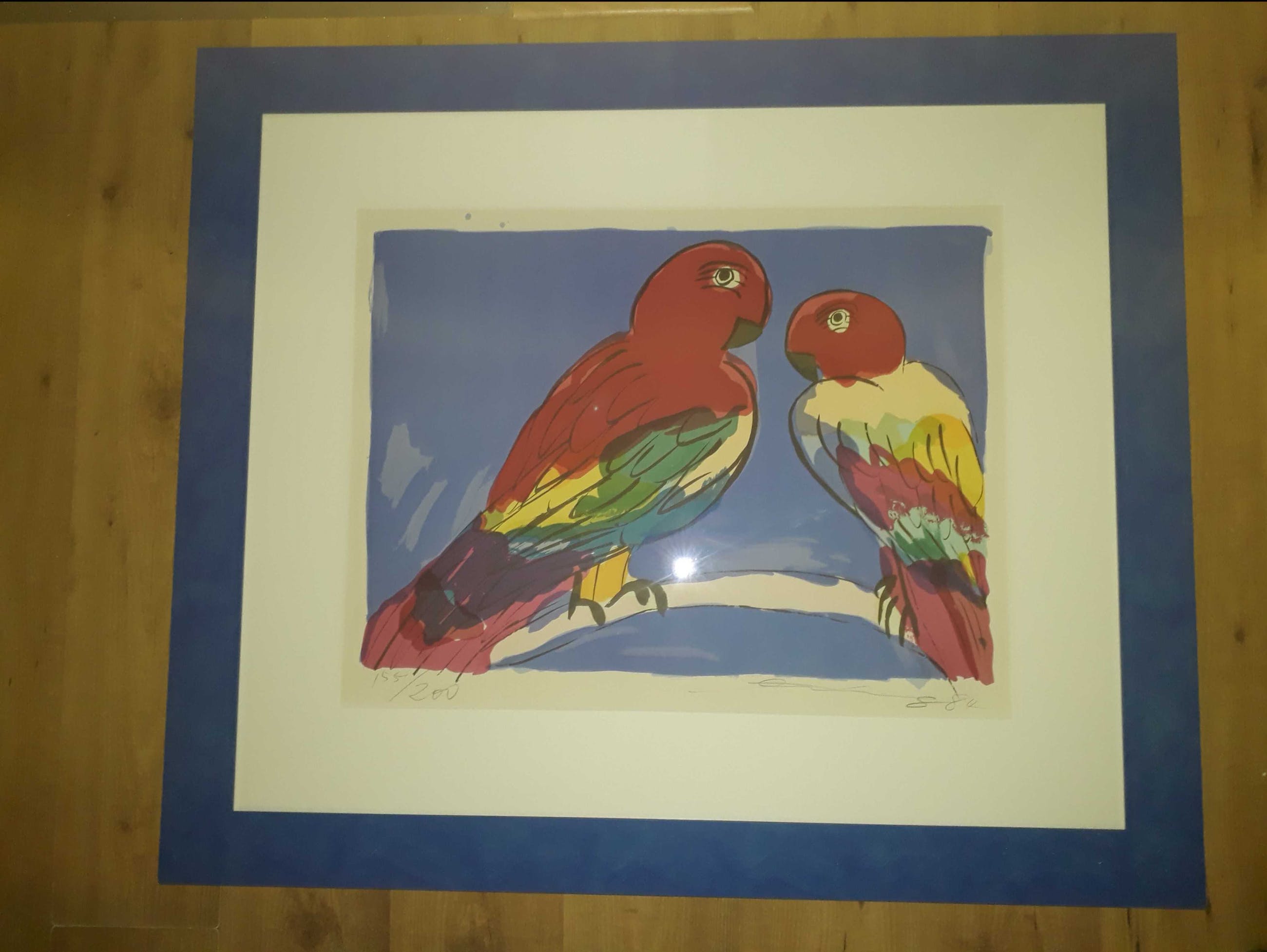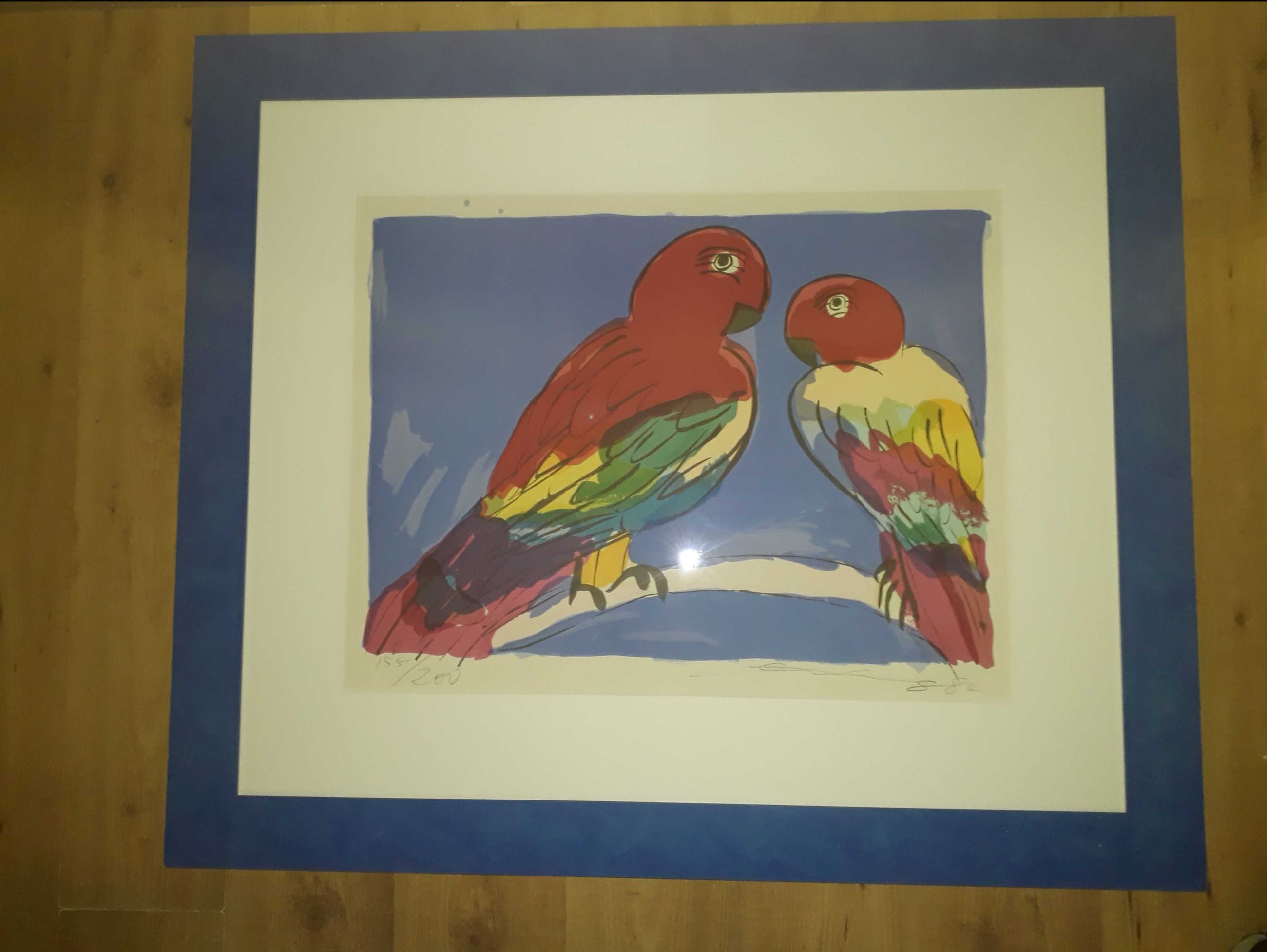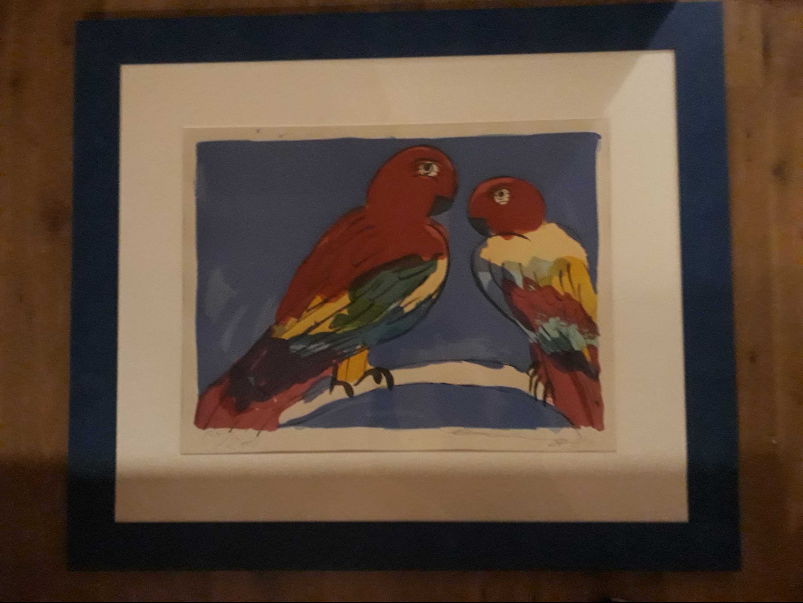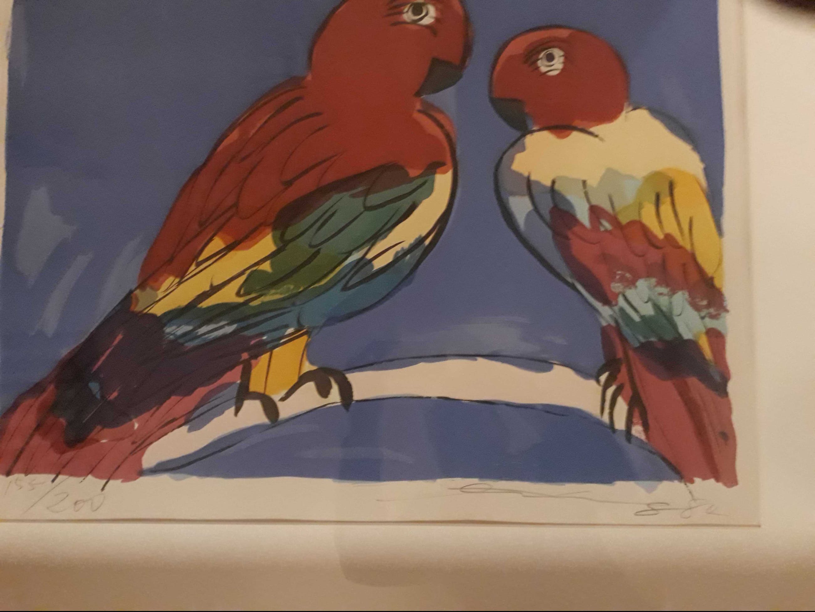 Zeer mooie en kleurrijke zeefdruk van Walasse Ting uit 1984. uiteaard handgesigneerd en genummerd met potlood. Oplage nummer 155/200. Het geheel verkeerd in nieuwstaat. Erg mooi ingelijst met passende gedurfde lijst. Lijst meet 113 bij 96.