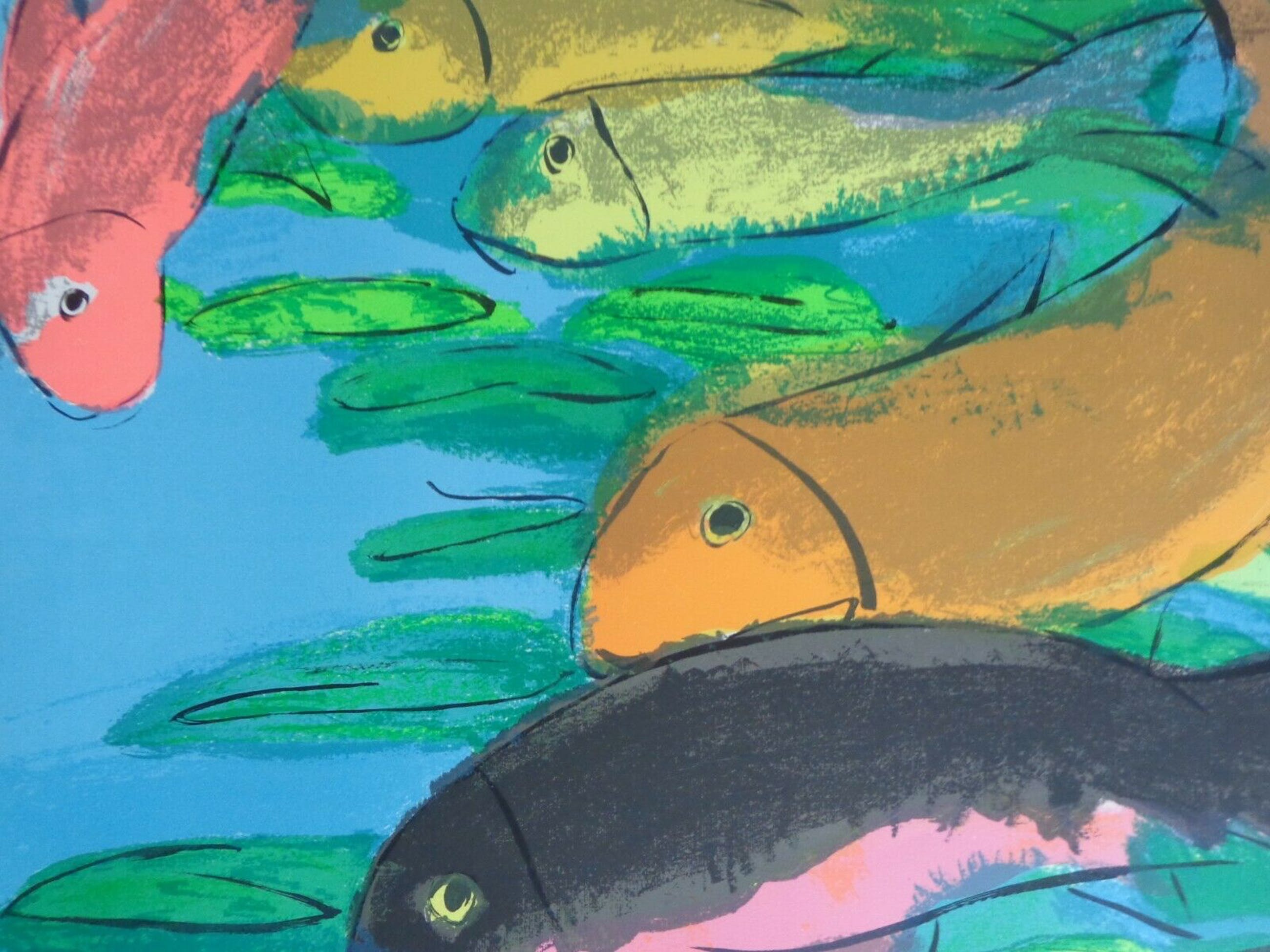 Kleurzeefdruk op papier.