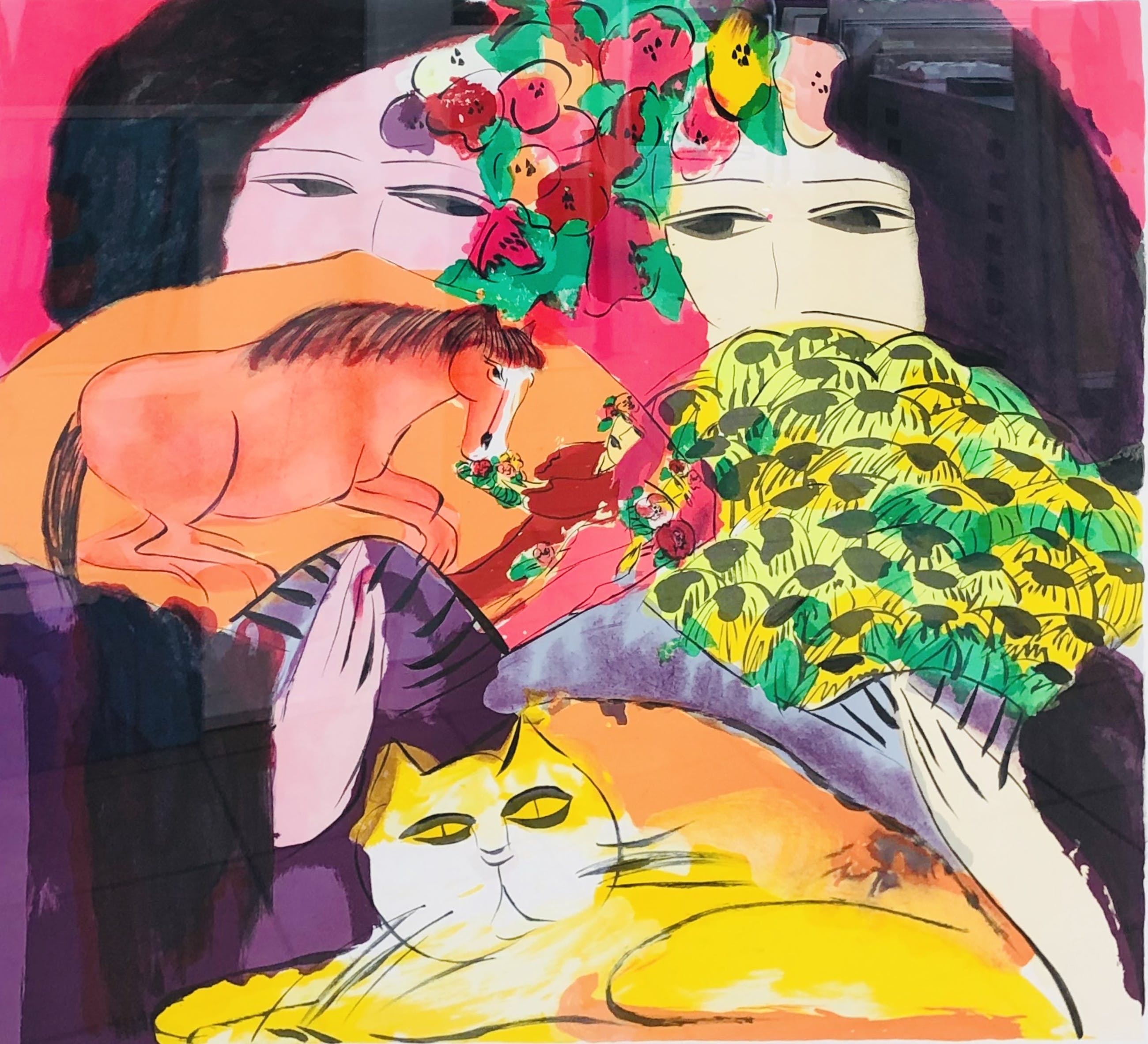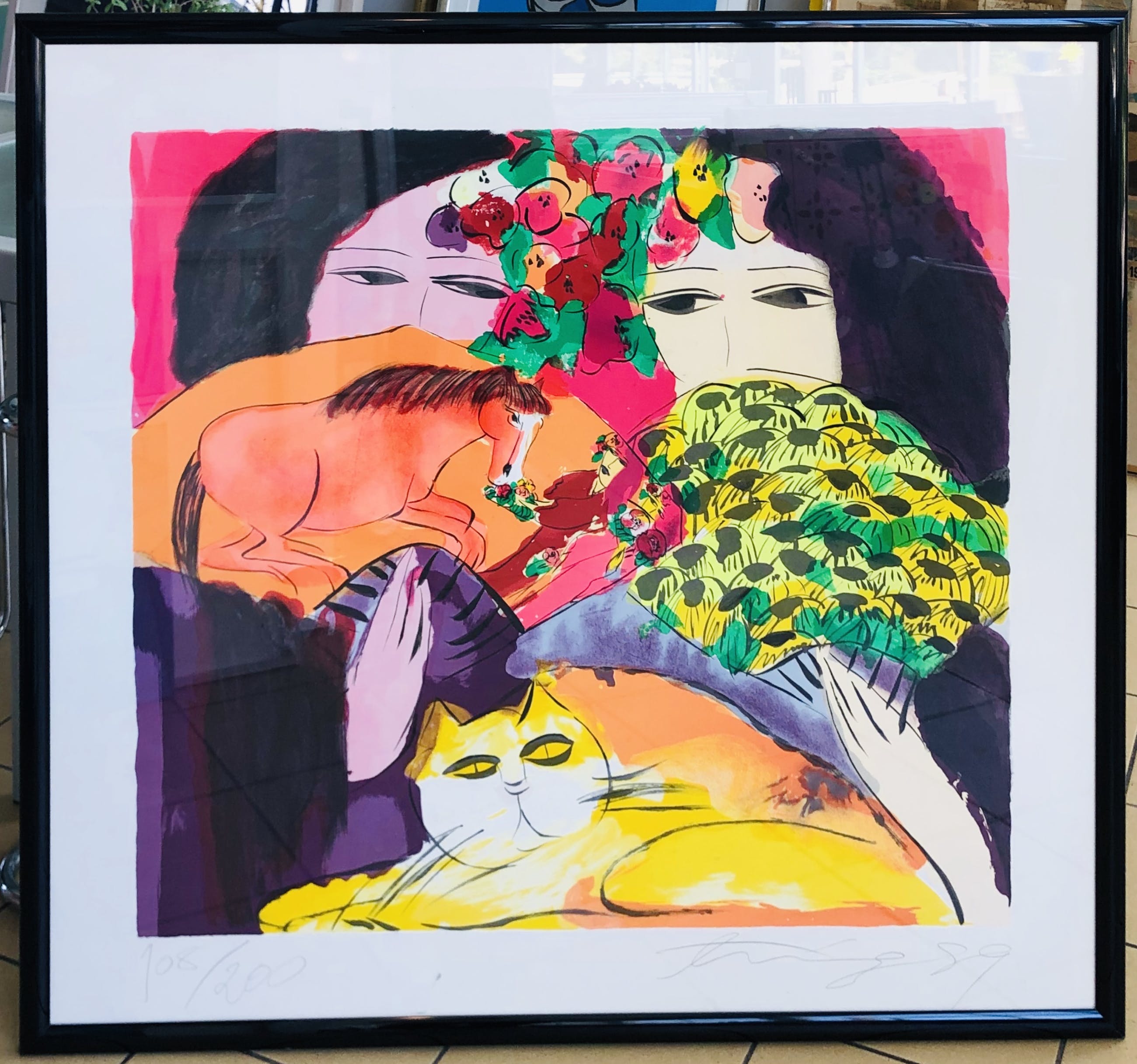 Fraai kleurrijk werk van Walasse Ting met passe partout en sierlijke lijst. De lijst is niet nieuw. Het werk kan zo aan de muur worden opgehangen. Het werk kunt u vooraf komen bekijken en beoordelen. Het werk kan na aankoop afgehaald worden bij galerie Rotor in Gorcum of verzonden worden per koerier worden verzonden binnen Nederland en België. U kunt het werk ook laten opslaan in onze opslagkamer en in een later stadium ophalen. De foto is door het glas van de omlijsting heen genomen.