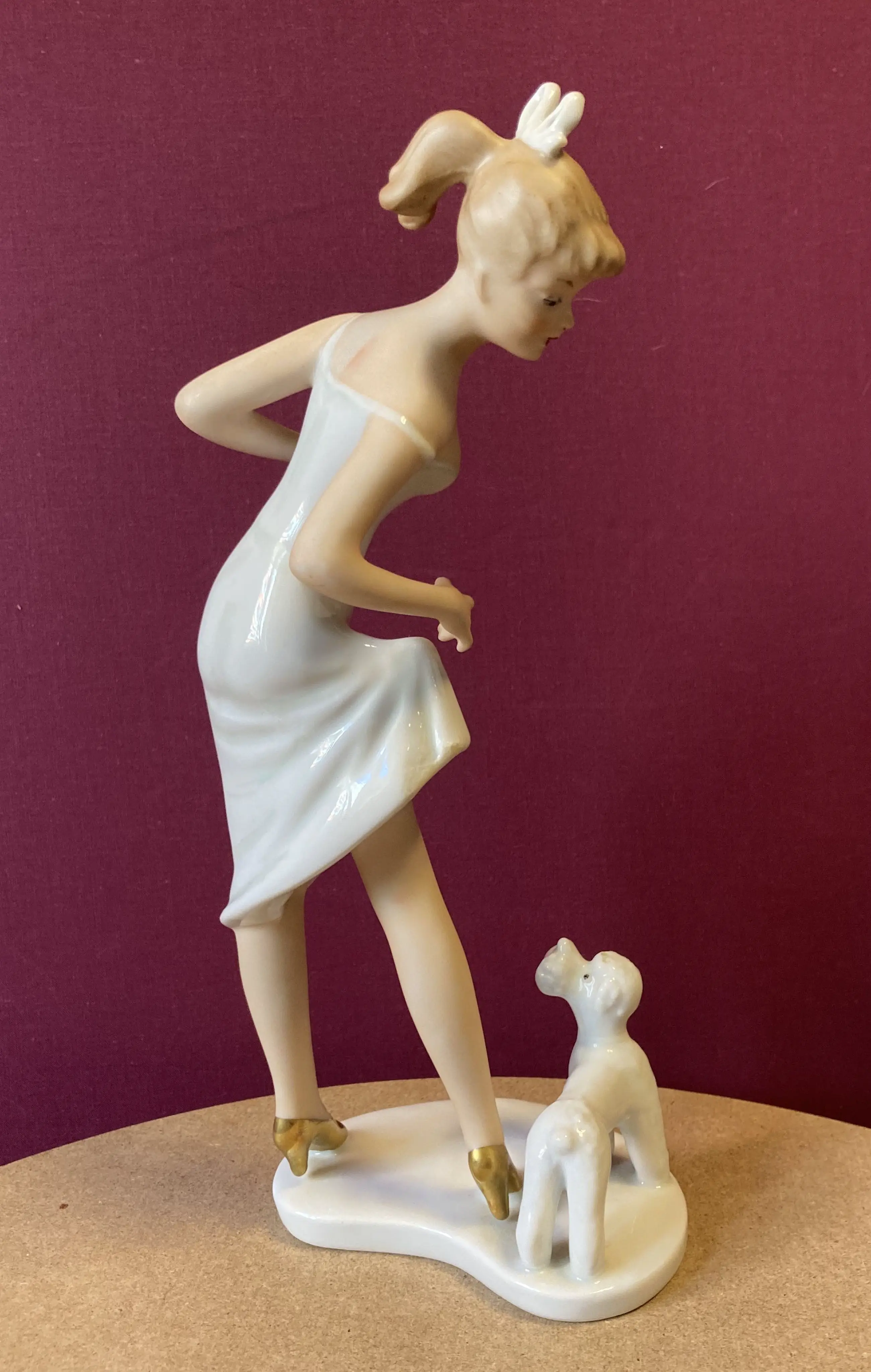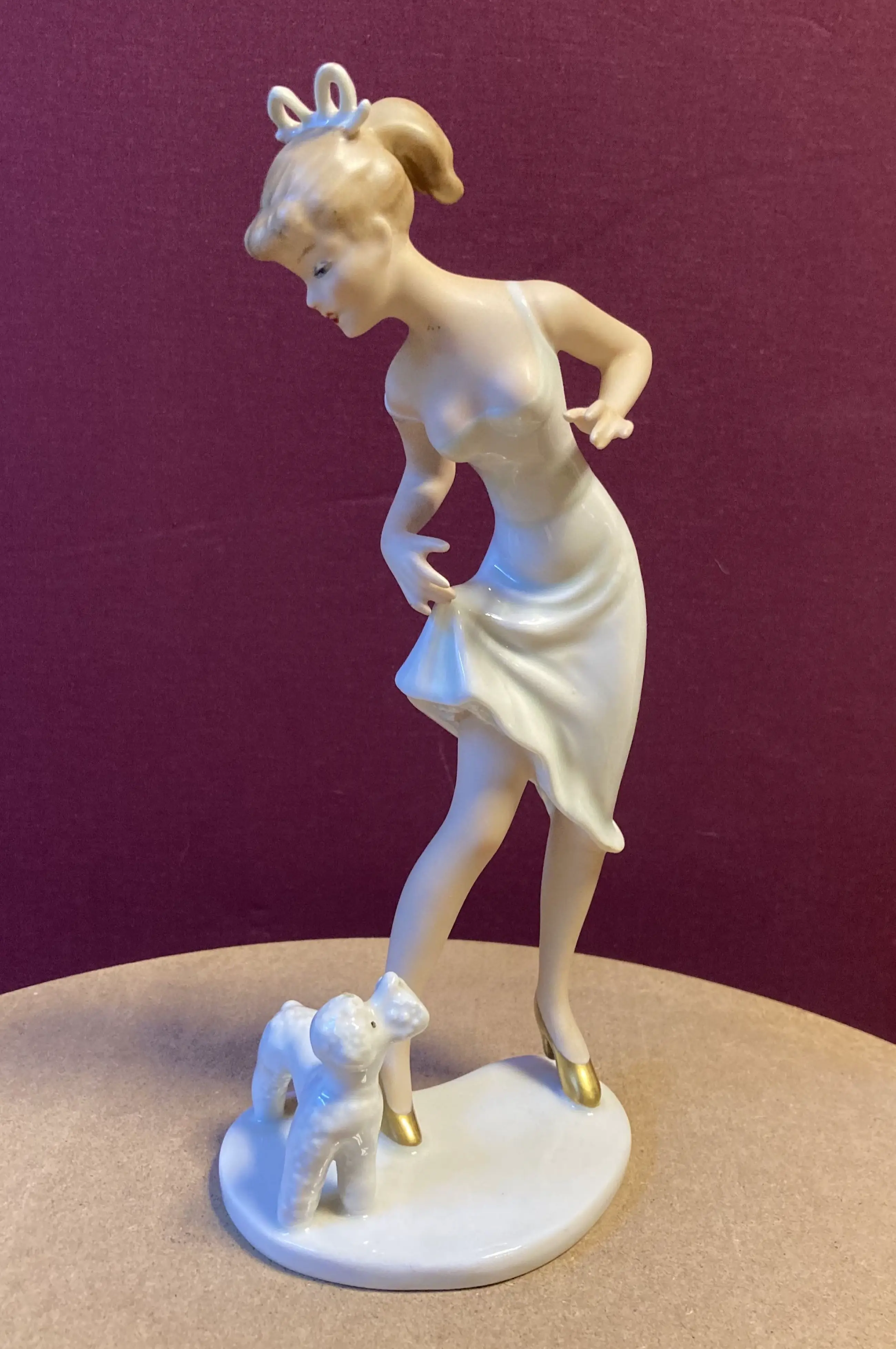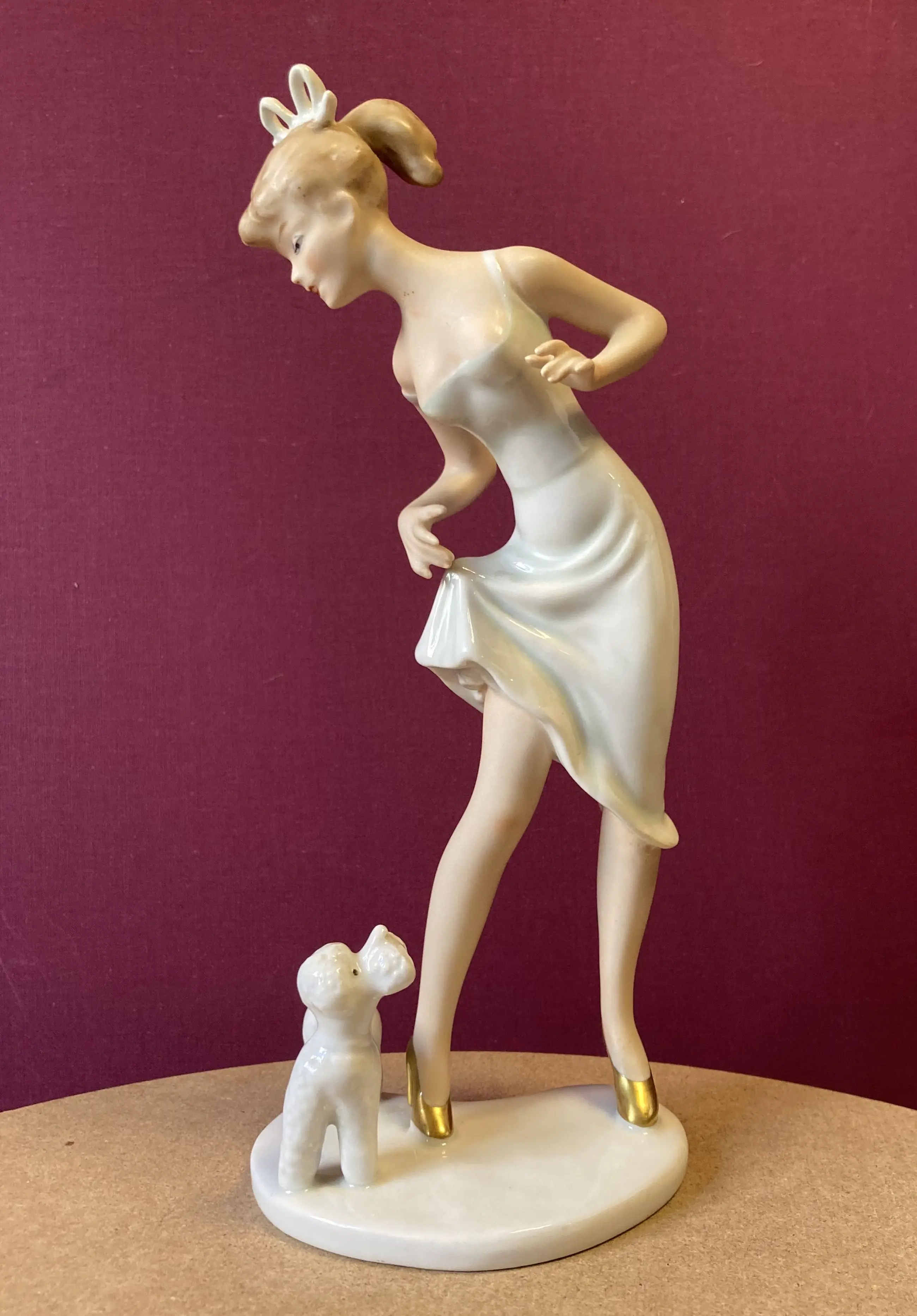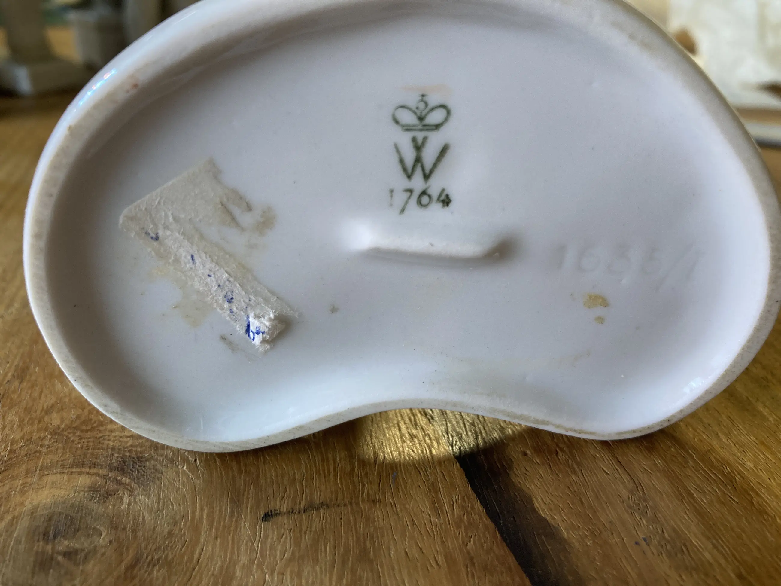 Figuur in porselein, vervaardigd in de Wallendorfer Porzellan fabriek in Thüringen Duitsland, één van de oudste porseinfabrikanten in Europa (1764). Op onderzijde voorzien van merkteken en nummering 1635/1