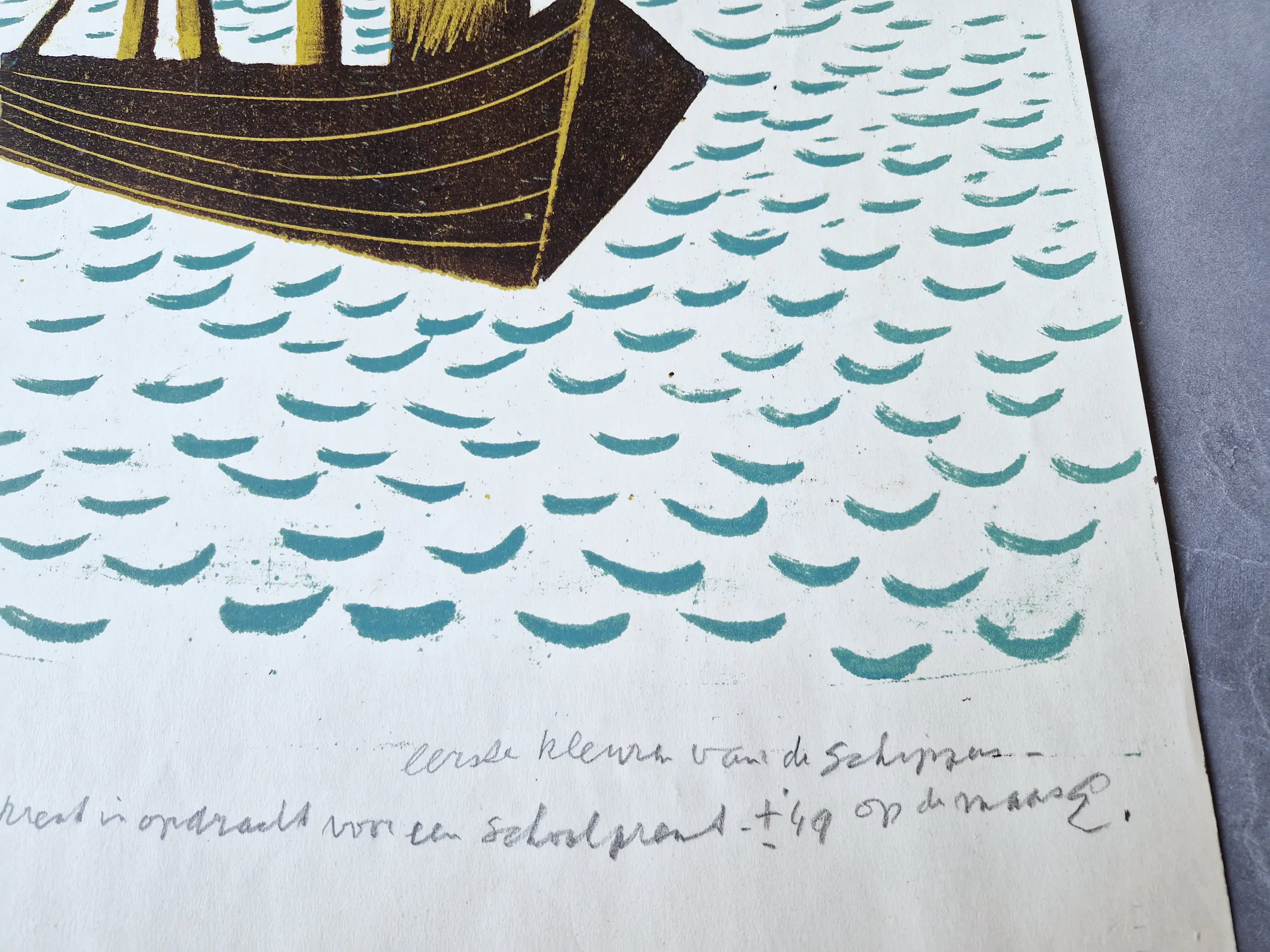 U biedt op een fraaie handgekleurde lithografie op papier, gemaakt in 1979 door de Rotterdamse fotograaf/graficus wally Elenbaas (1912-2008). Unieke "eerste kleuren" proefdruk. Groot formaat (65.5x53cm) en in zeer goede conditie (op wat onregelmatige randen na) prachtige kleuren! potloodgesigneerd.