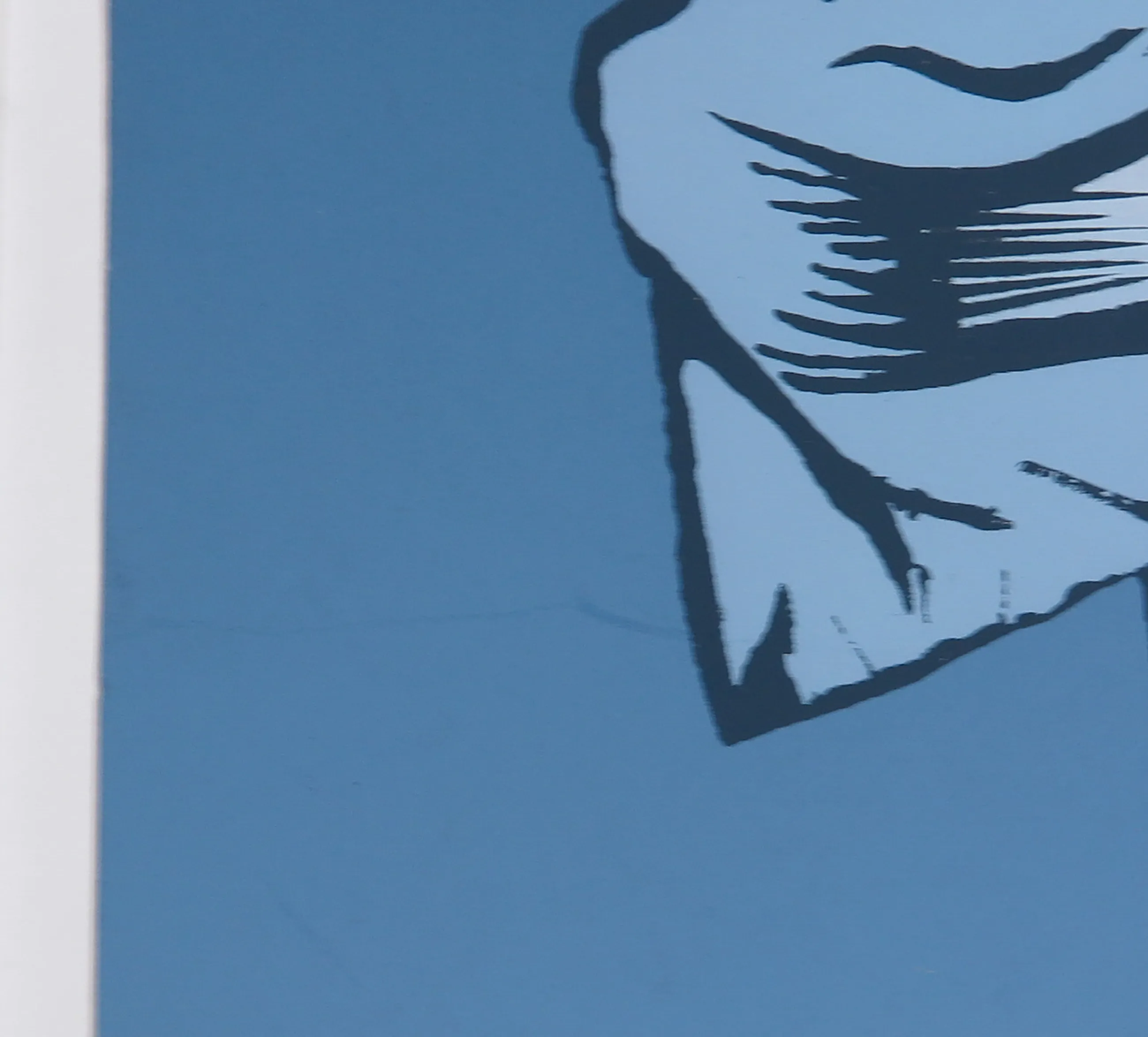 | Het papier is licht opgekruld en er bevinden zich aan de randen wat beschadigingen en viezigheid. In de blauw partij zitten wat kleine vlekjes. | |||||||||||