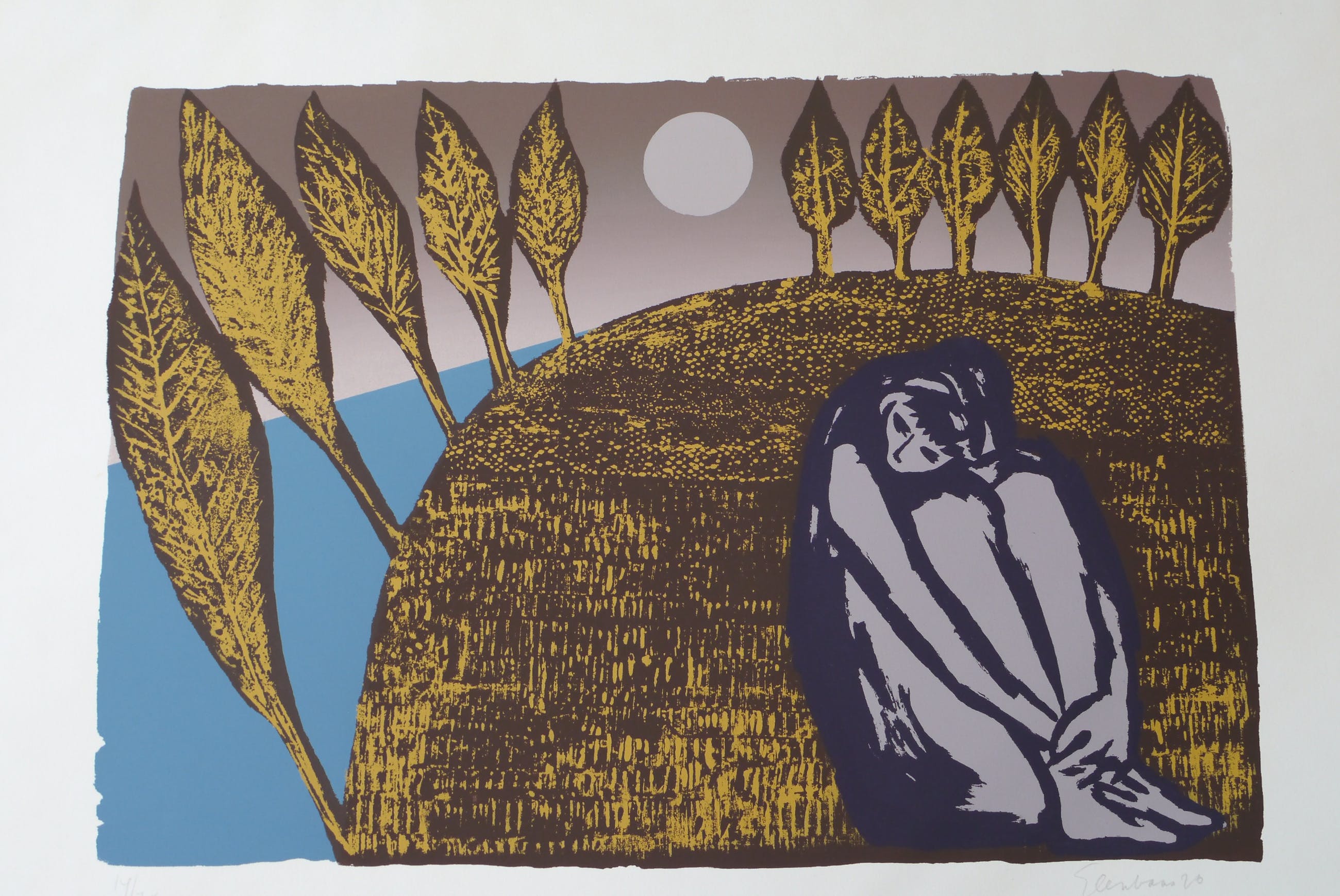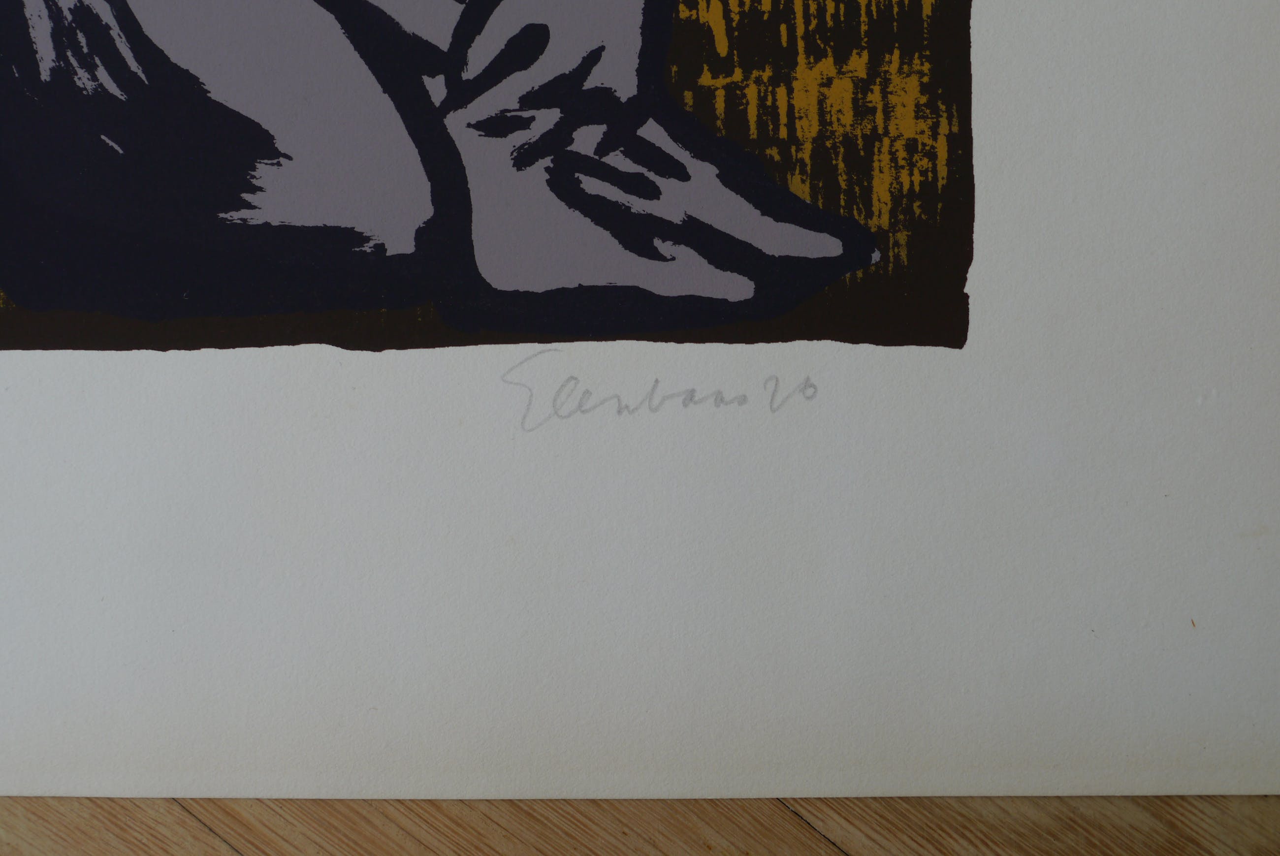 Een kleurenlitho van Wally Elenbaas (1912-2008). Oplage 14 van de 75, linksonder aangegeven. Rechtsonder gesigneerd. Titel mij niet bekend.