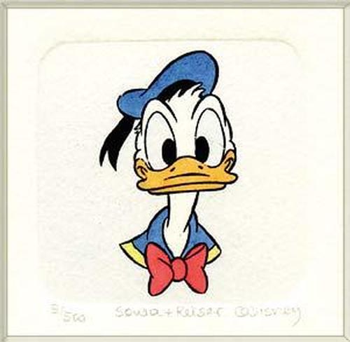 Originalradierung in Lizenz von Walt Disney. Handsigniert und nummeriert. Copyright by Walt Disney. Auflage 500. 3 3/8 x 3 3/8 inch. 8.5 x 8.5 cm. Ungerahmtes Blatt. Tadelloser Zustand. Andere Motive auf Anfrage verfügbar.