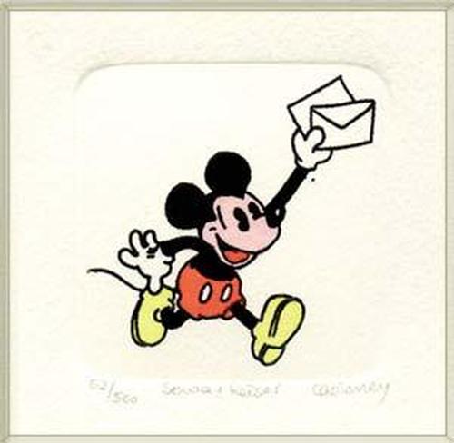 Originalradierung in Lizenz von Walt Disney. Handsigniert und nummeriert. Copyright by Walt Disney. Auflage 500. 3 3/8 x 3 3/8 inch. 8.5 x 8.5 cm. Ungerahmtes Blatt. Tadelloser Zustand. Andere Motive auf Anfrage verfügbar.