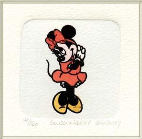 Originalradierung in Lizenz von Walt Disney. Handsigniert und nummeriert. Copyright by Walt Disney. Auflage 500. 3 3/8 x 3 3/8 inch. 8.5 x 8.5 cm. Ungerahmtes Blatt. Tadelloser Zustand. Andere Motive auf Anfrage verfügbar.