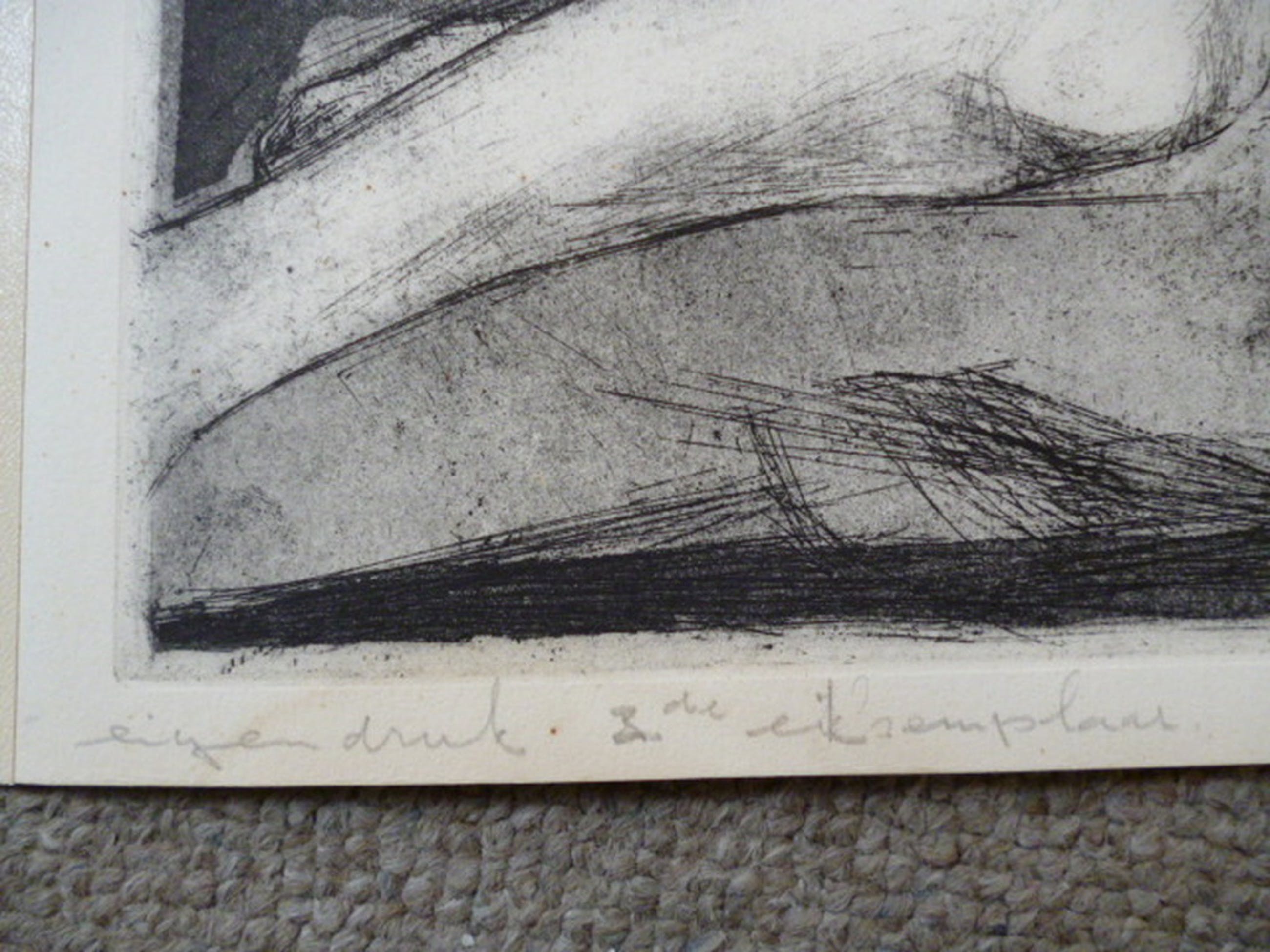 Ets, potlood gesigneerd rechtsonder, genummerd linksonder 3de eksemplaar.
