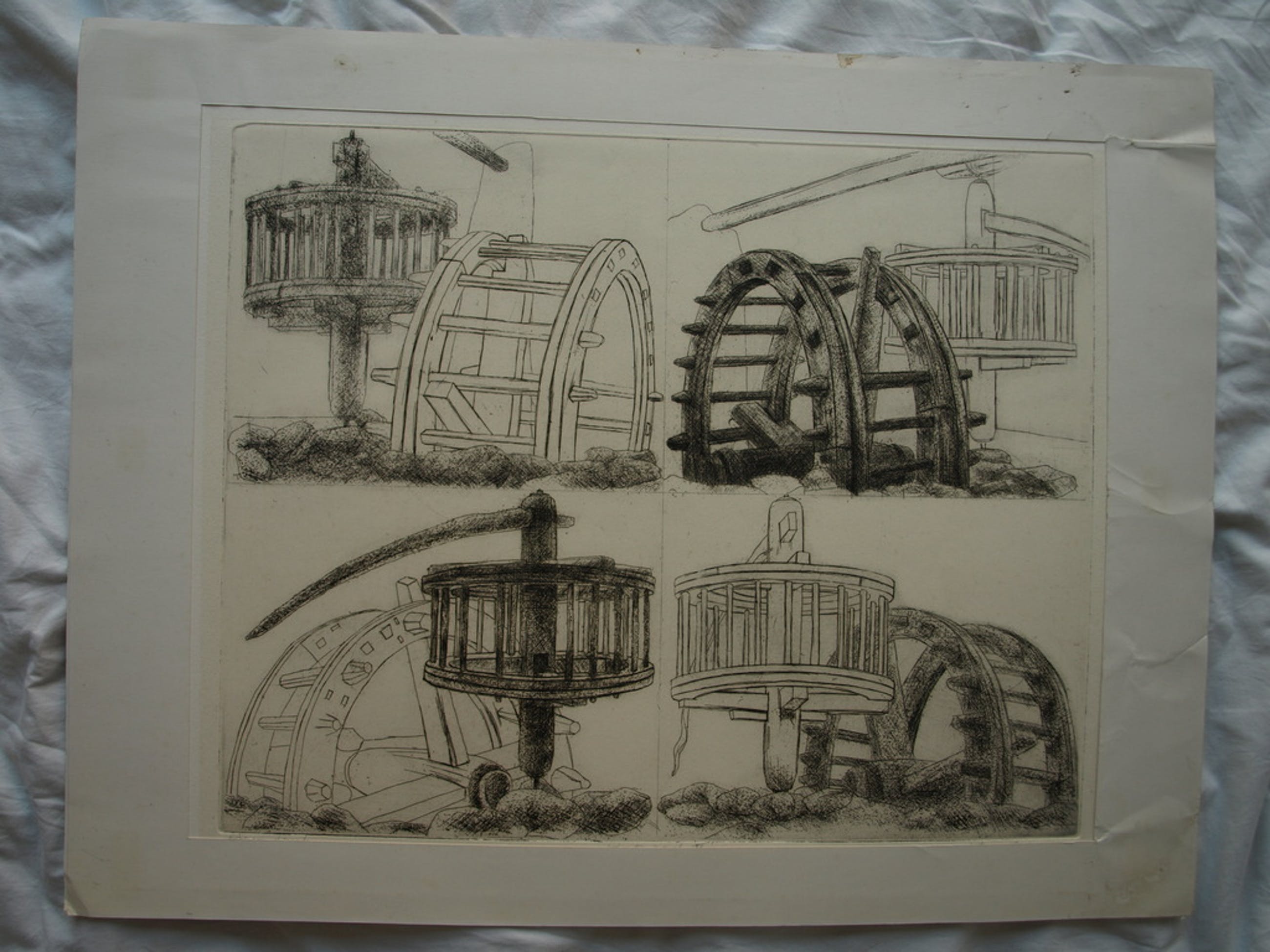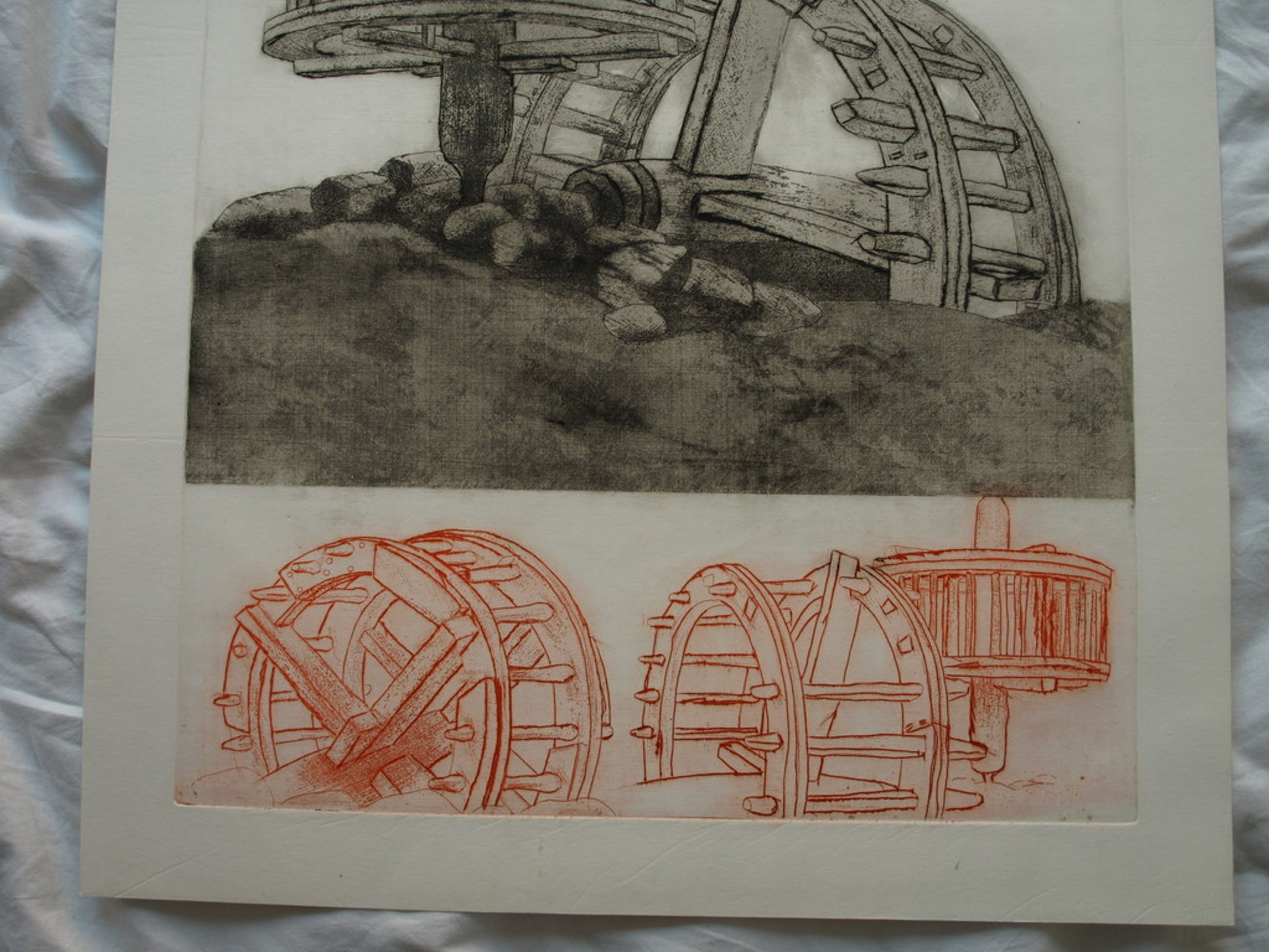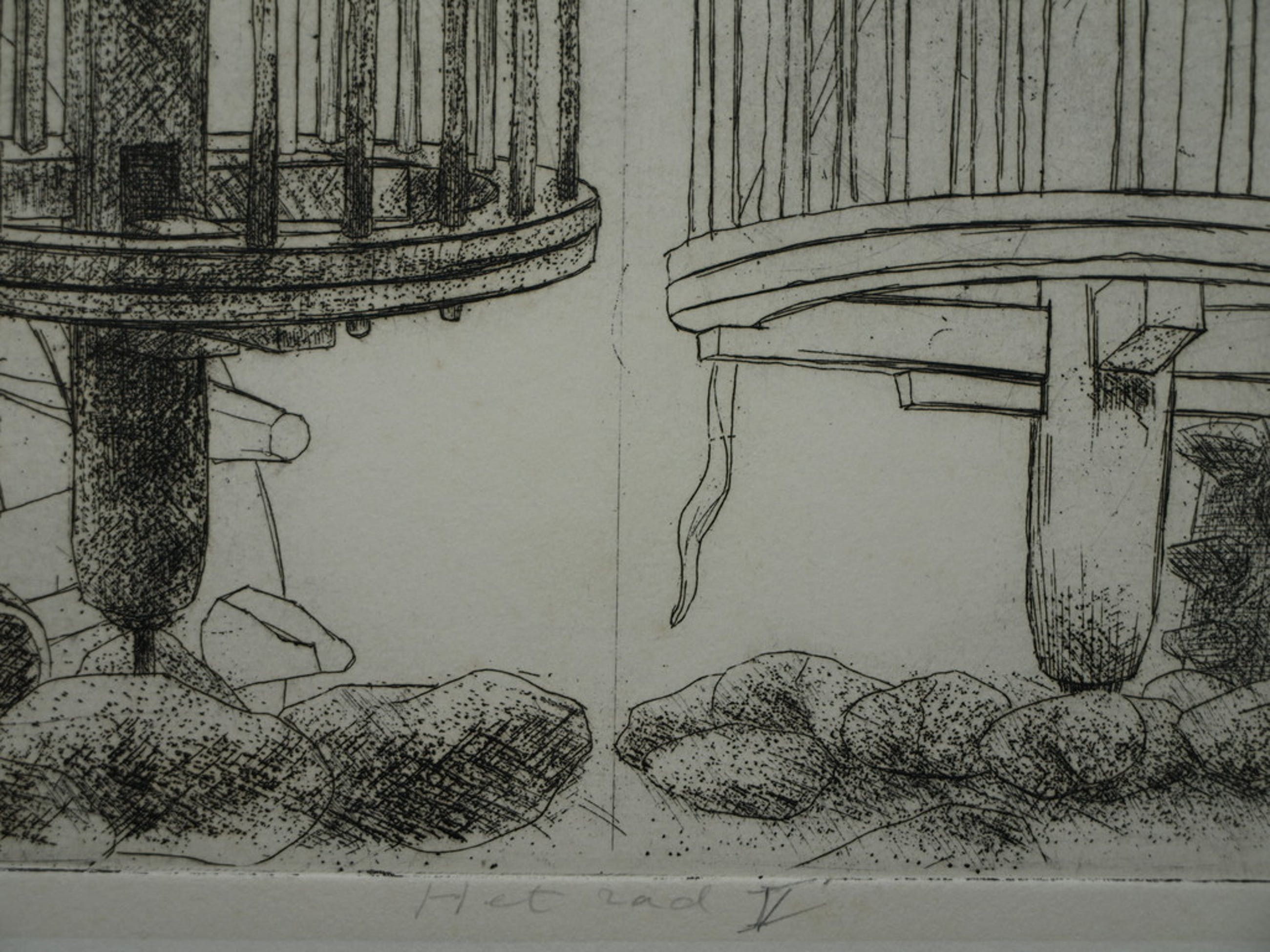 Het betreft 2 eigen drukken van de kunstenaar, waarbij in feite 7 etsen met afbeeldingen van een rad zijn afgedrukt op 2 vellen papier.