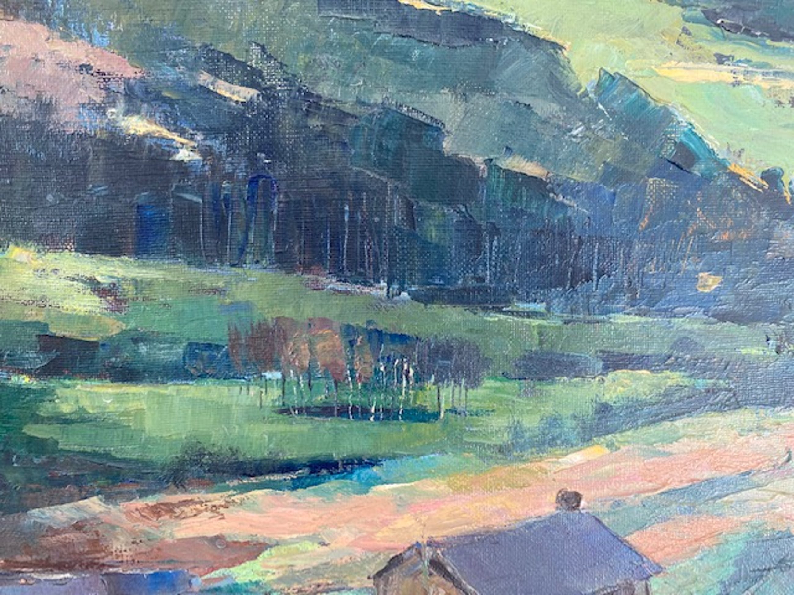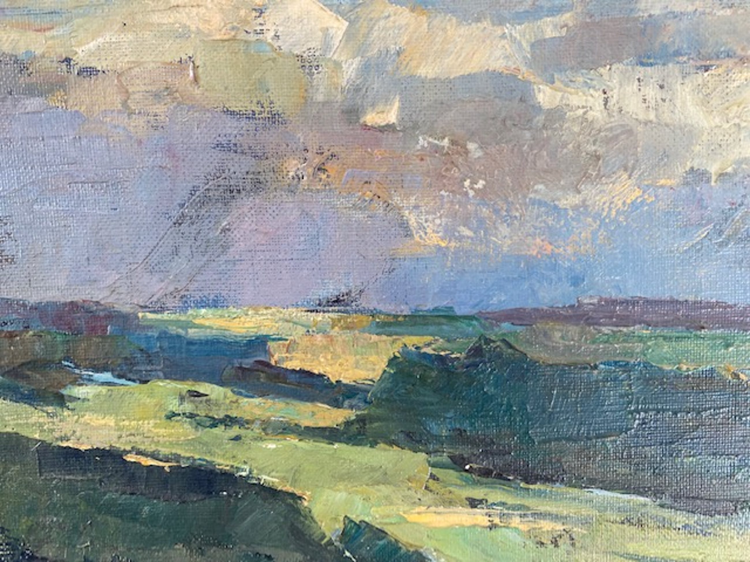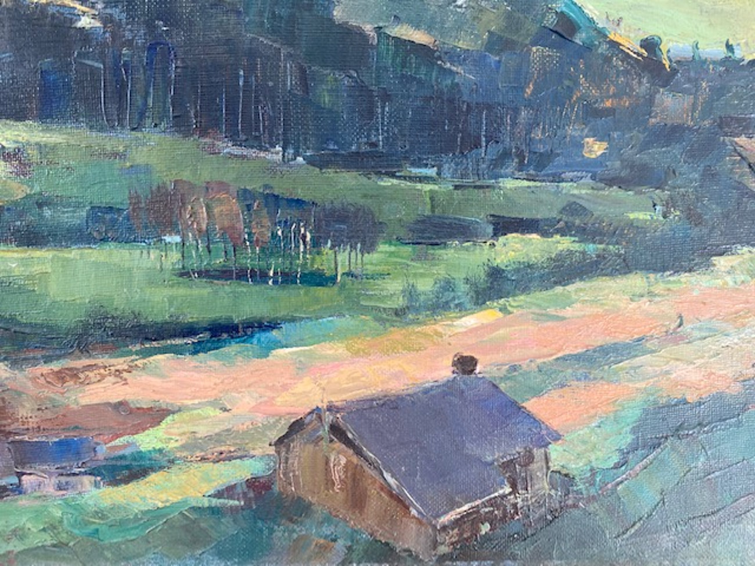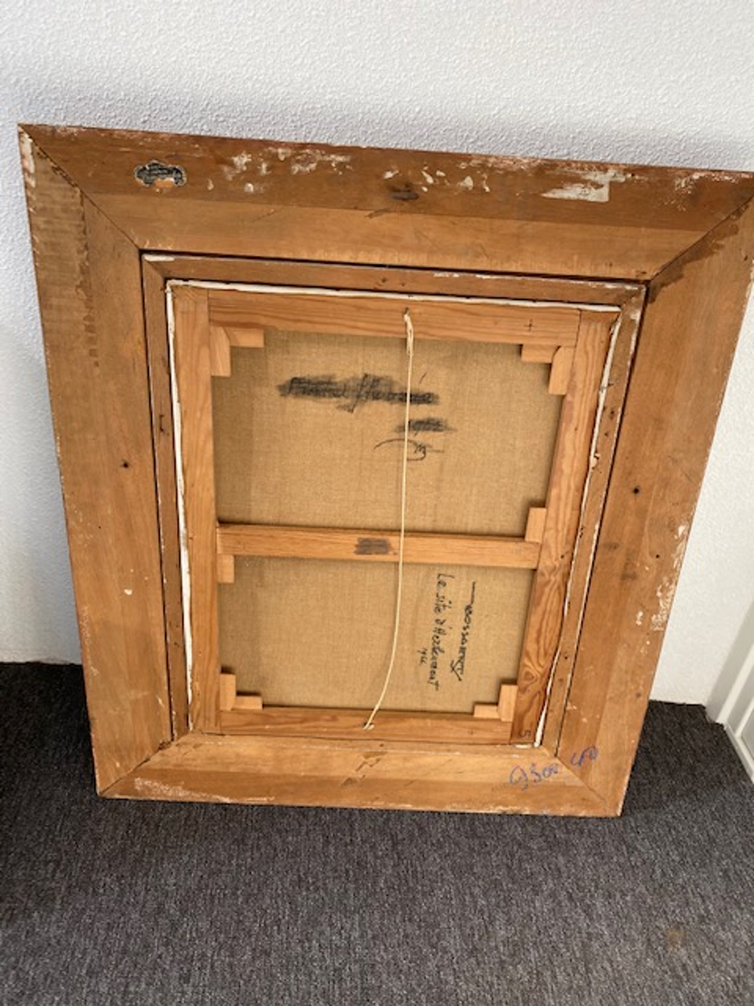 Het schilderij zit nog in de oorspronkelijke houten lijst welke door de jaren wel kleine slijtages heeft opgelopen.