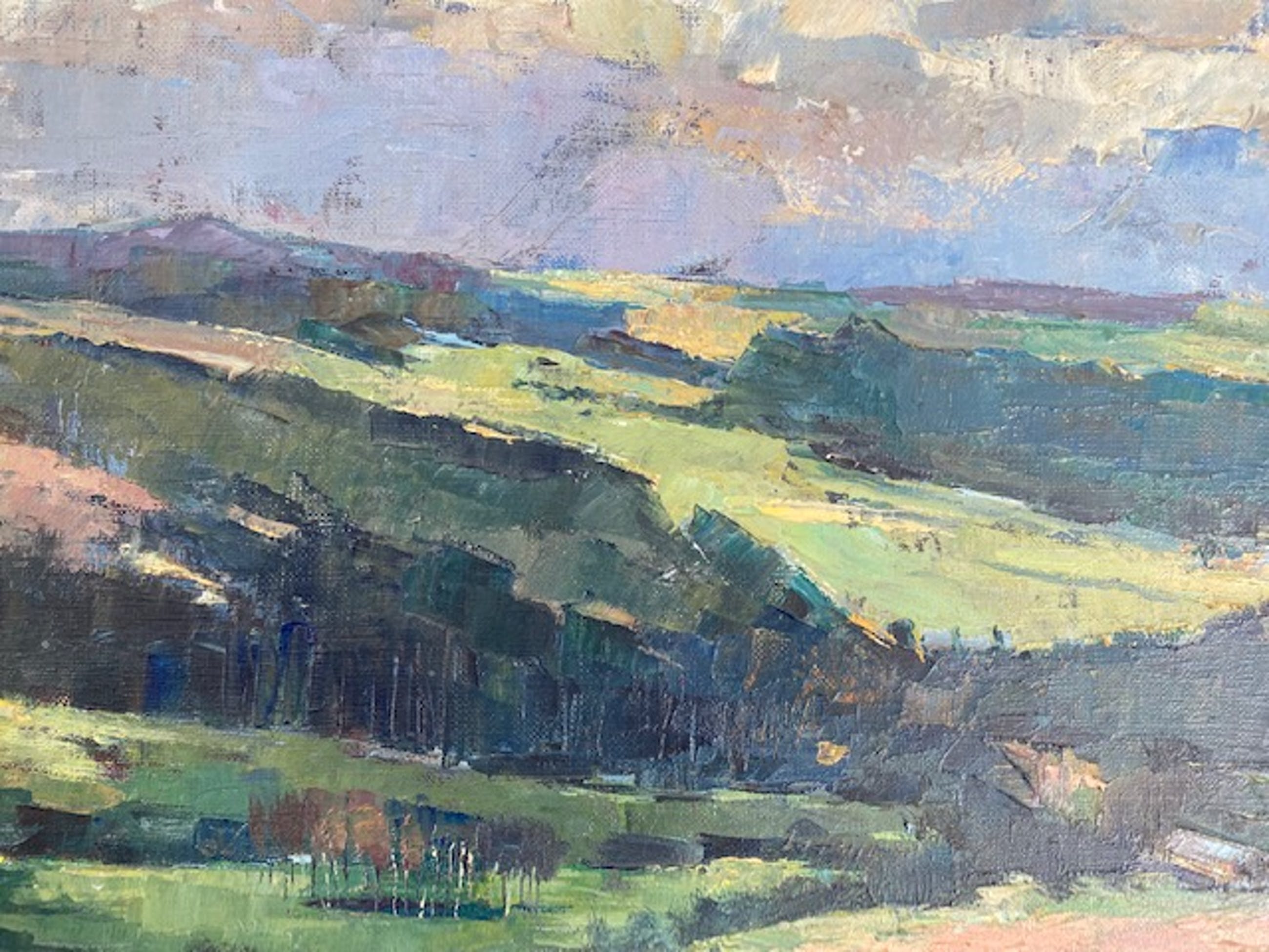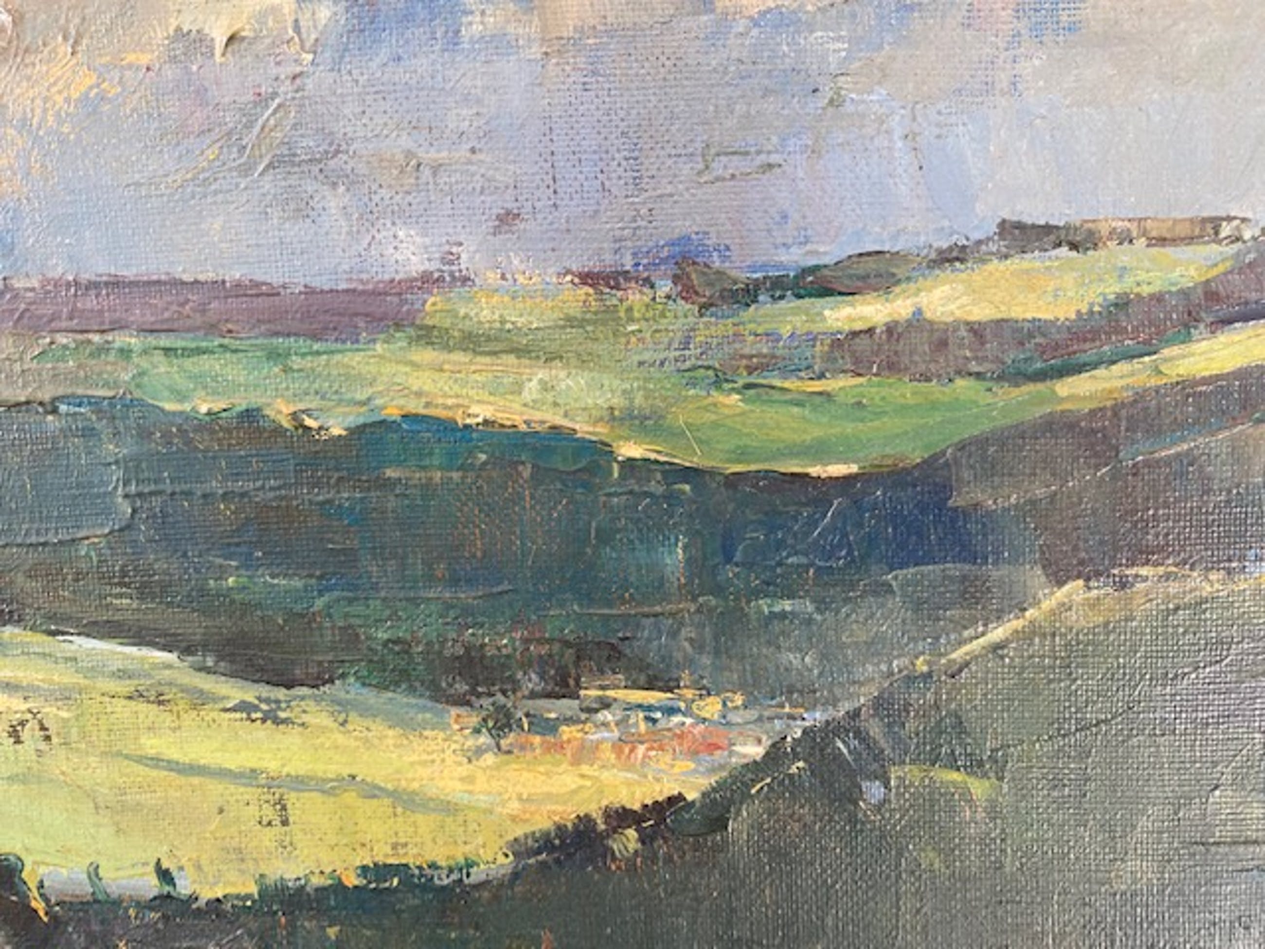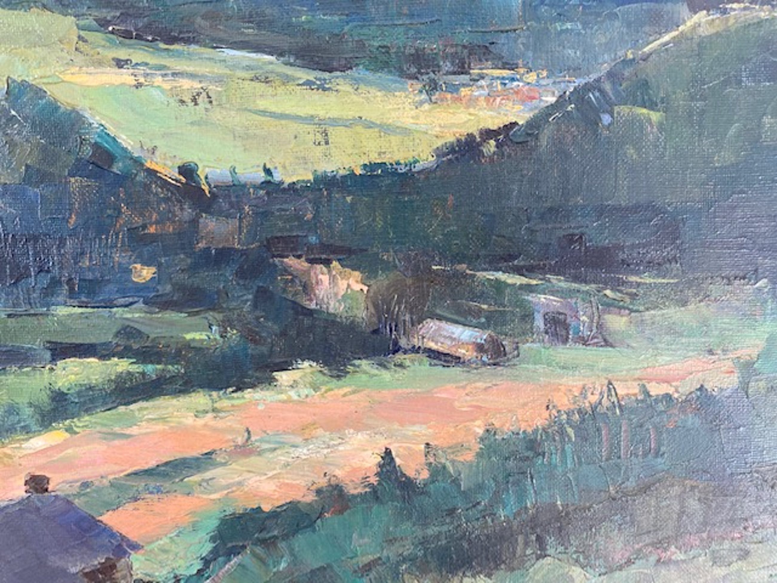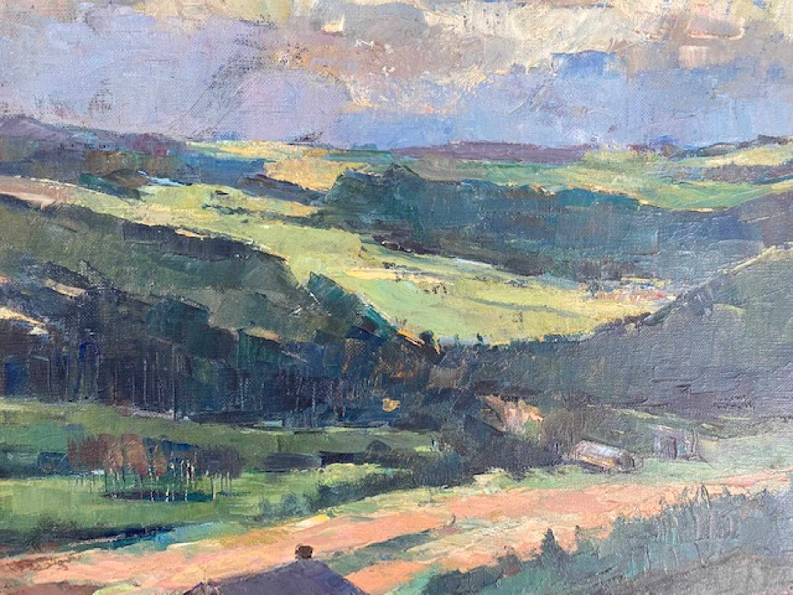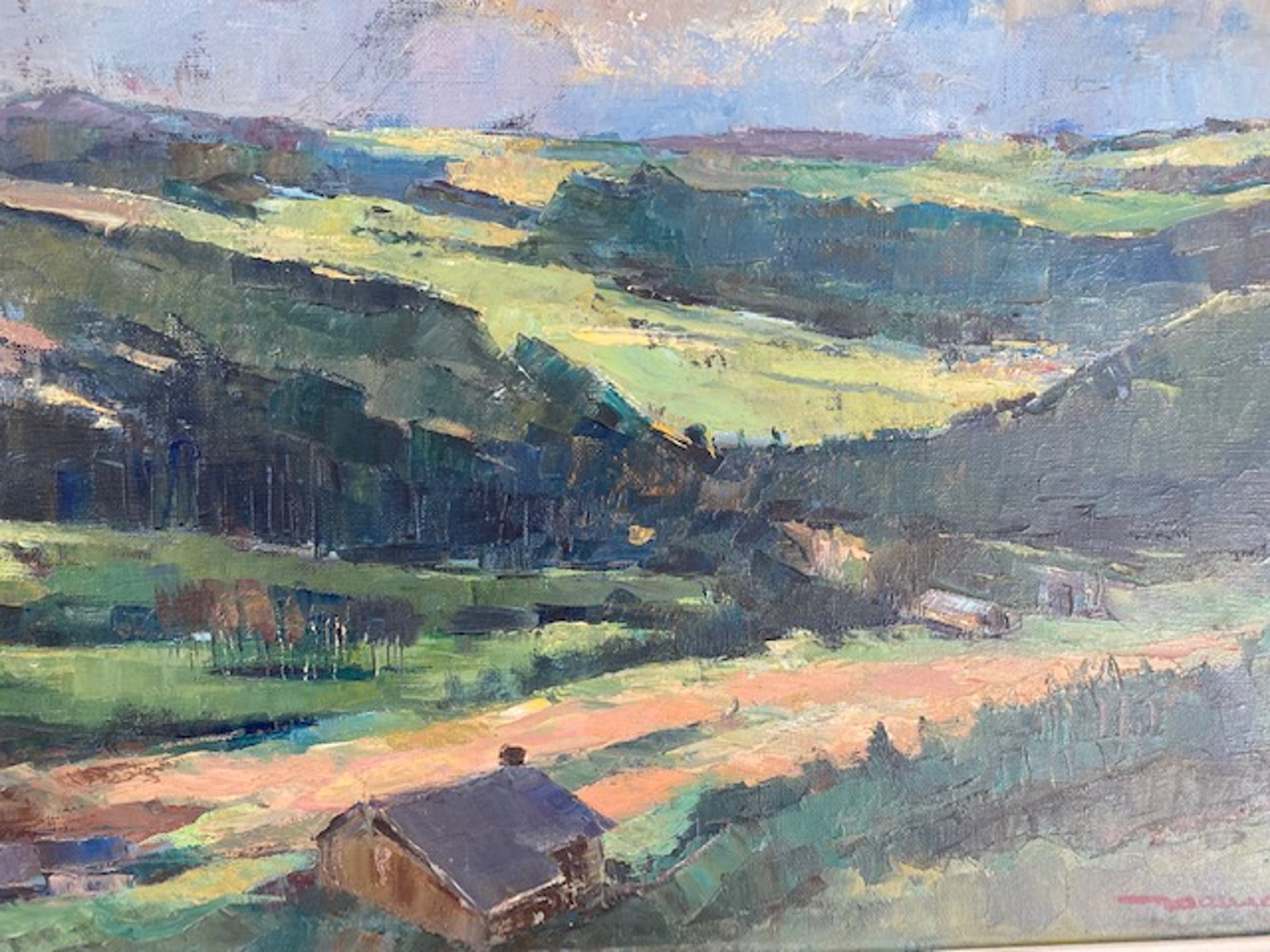 Het schilderij zit nog in de oorspronkelijke houten lijst welke door de jaren wel kleine slijtages heeft opgelopen.