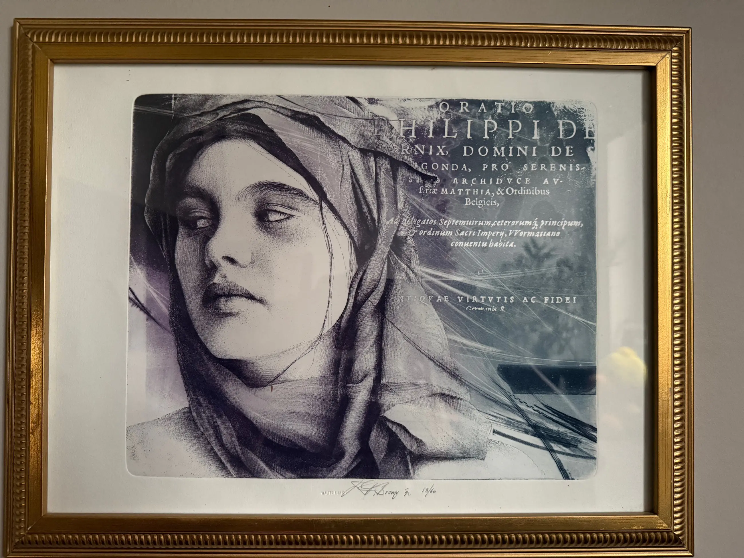 Deze ets/aquatint (diepdruk) op koperplaat is in een oplage van 60 exemplaren gedrukt op handgeschept houtvrij papier. Het model was Anouk Smet.