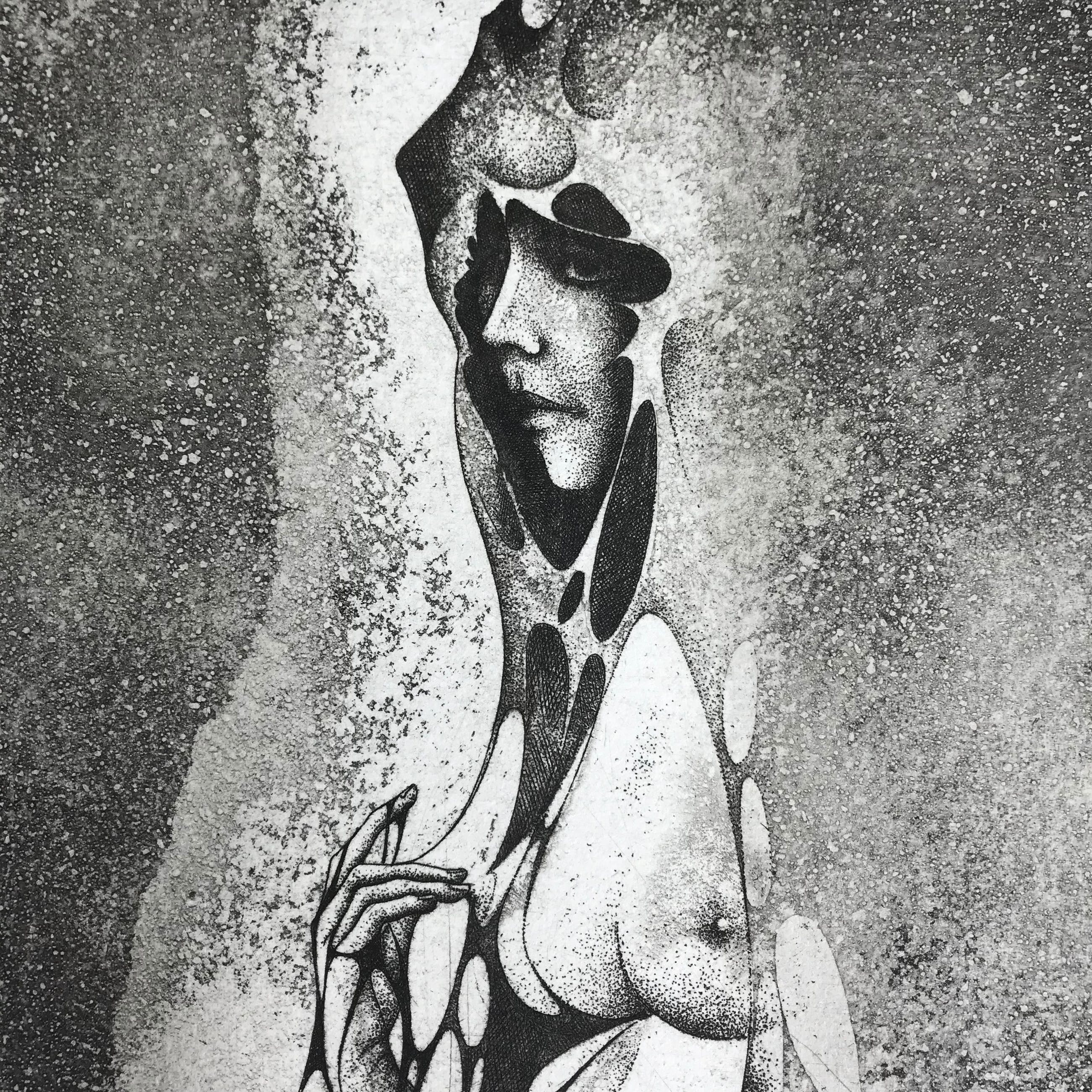 Zijn werken zijn etherische dromen over leven en dood. De integratie van fragmenten van de realiteit in een irreële context, creëert een poëtisch symbolisme dat hij met een nauwgezet grafisme benadrukt.