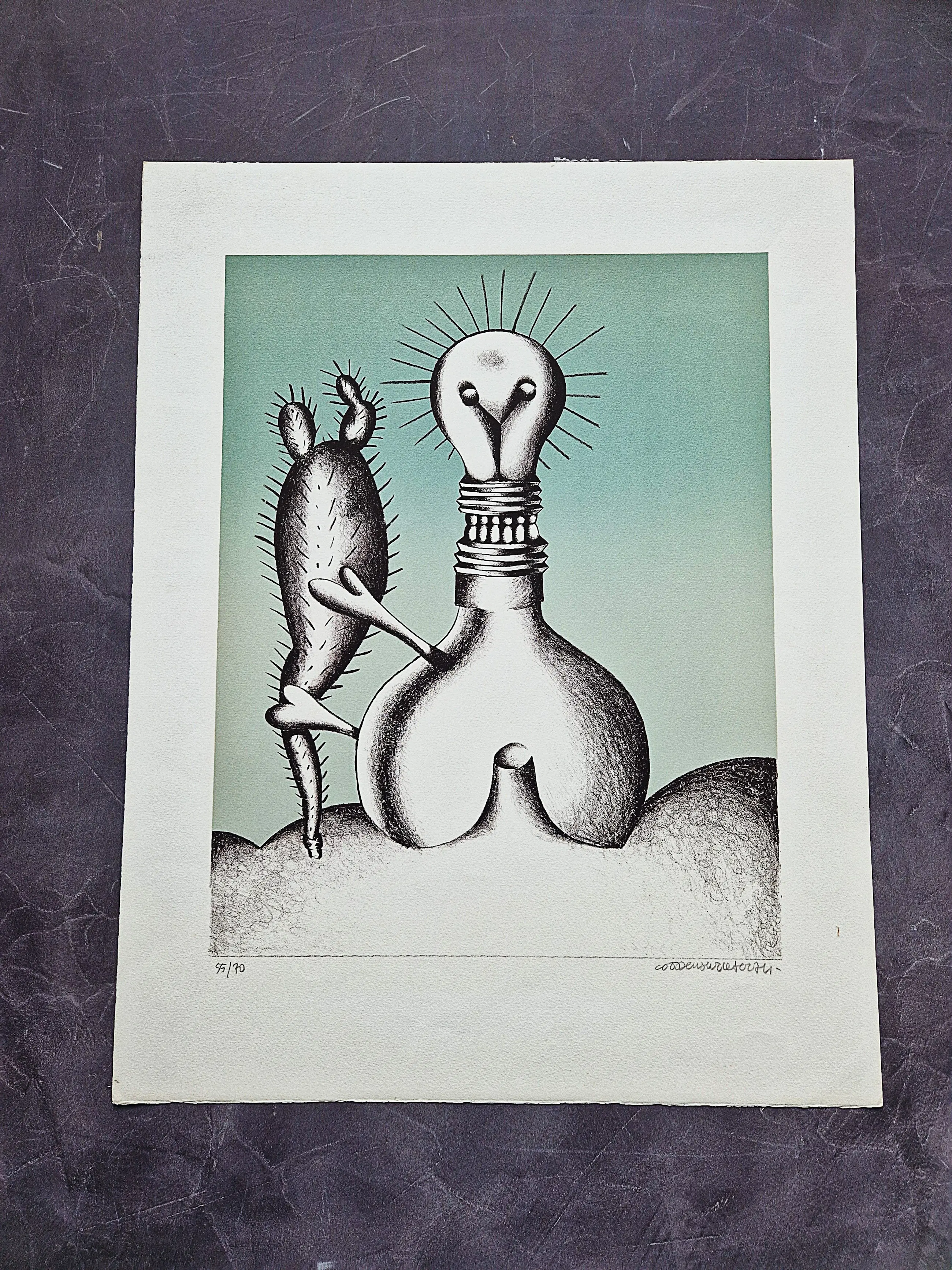 Walter Goossens is een Belgische kunstenaar die geboren is in 1943 te Lier. Hij is een schilder. Opleiding aan de Academie te Antwerpen o.l.v. F. Van Loock en K. De Roover, aan het Hoger Instituut te Antwerpen. Monumentaal, burlesk of sober, ironisch en soms surrealistisch spot hij met zichzelf en de wereld. Zijn tentoonstelling in 1974, ‘Het spiegelpaleis van de kermis’, bestond uit een reeks vervormde zelfportretten. Een ander thema dat vaak behandeld wordt is de angst voor de gemechaniseerde wereld in de vorm van dreigende technologische monsters. Uit de pers: ‘W.G. heeft lange tijd het zelfportret als onuitputtelijke inspiratiebron gebruikt, maar daarvan is hij nu flink afgeweken. Hij schildert niet voor de burger, maar manifesteert zich sterk en heftig in zijn kunst. Het is de dood, of beter de symbolen van de dood, die hem voor zijn tekeningen, papieren knipwerk, schilderijen ene draadsculpturen inspireren. Kruisen en kransen vormen de elementen waarmee W.G. zijn aangrijpende getuigenis opbouwt.’ (R.C.C., 1982) Stelde o.m. tentoon in de galerie De Zwarte Panter te Antwerpen in 1982. Werk aangekocht door de Staat in 1982/1983. Vermeld in BAS I,II en Twee eeuwen signaturen van Belgische kunstenaars. Bron: Piron