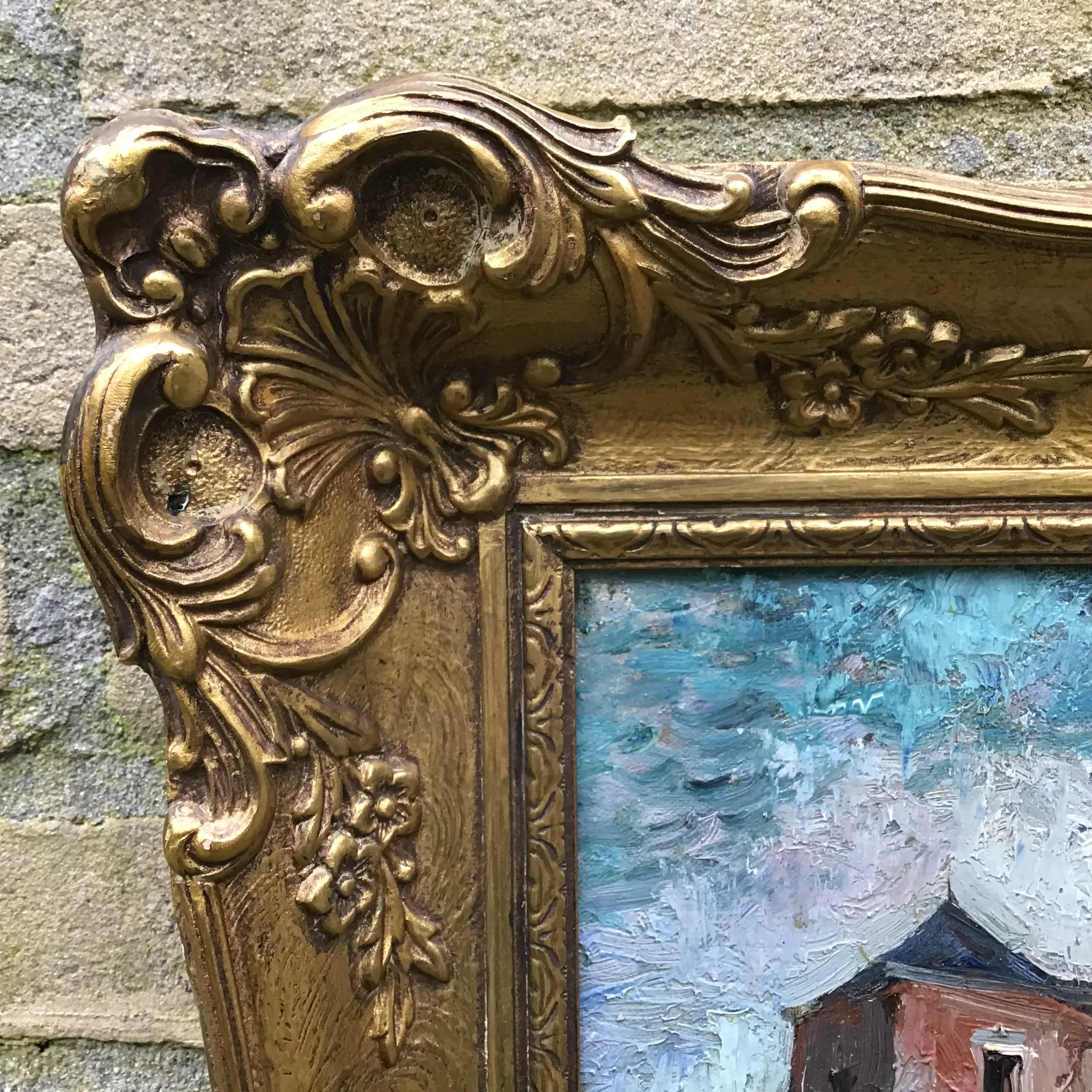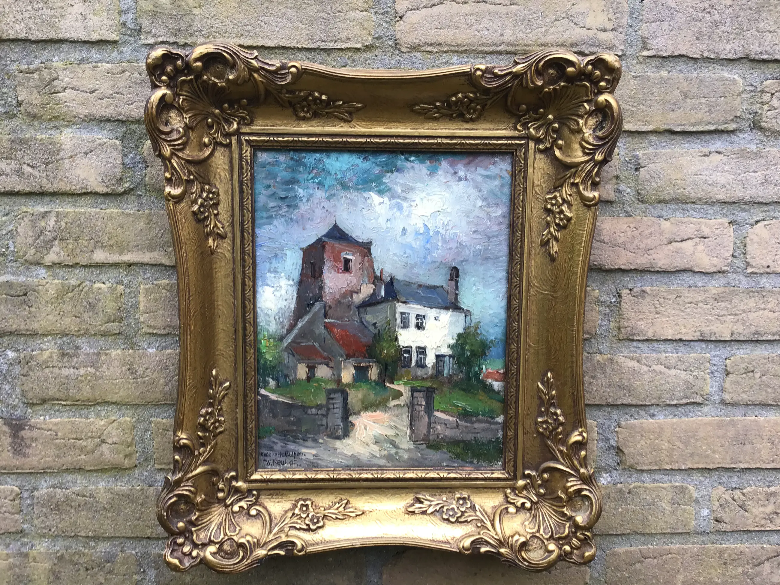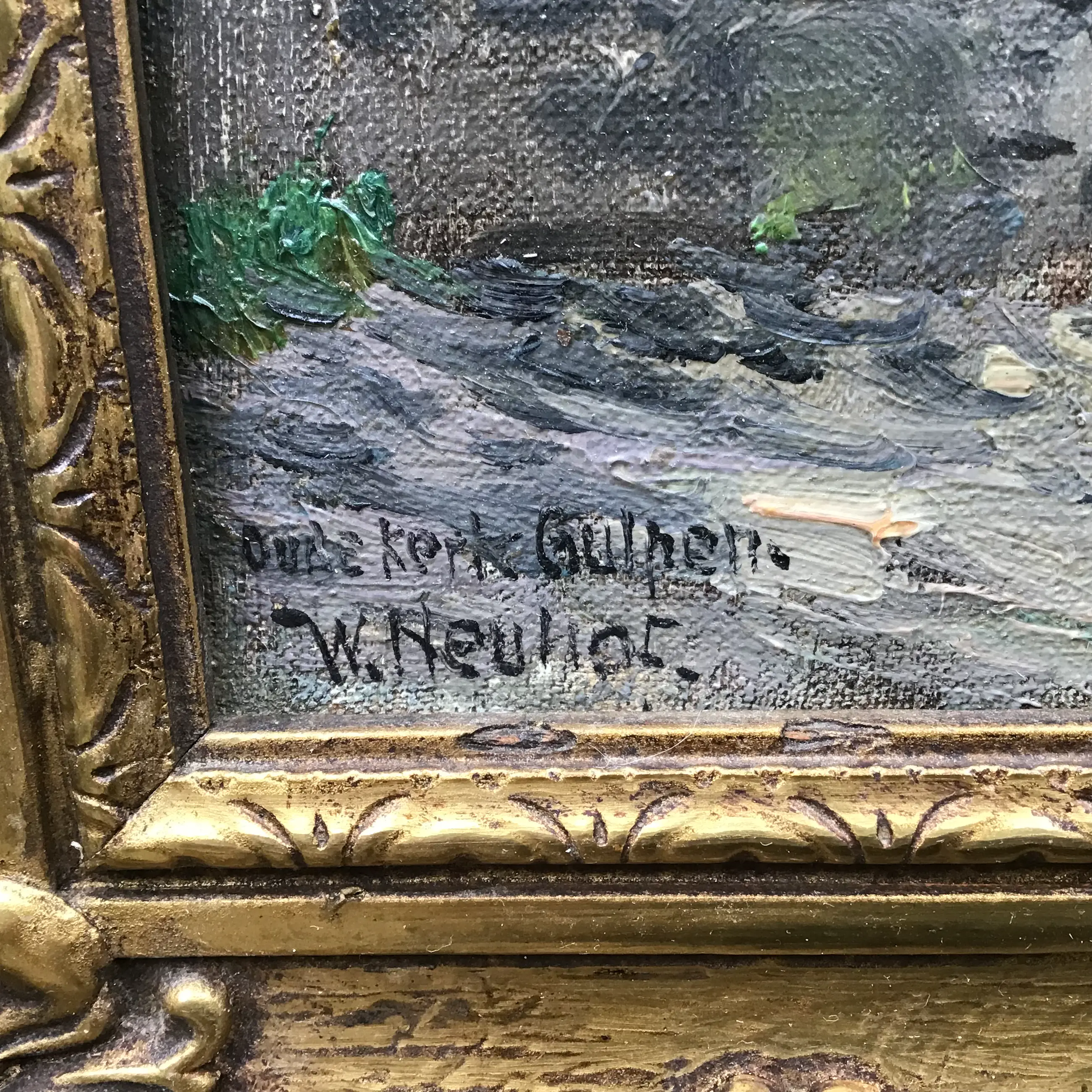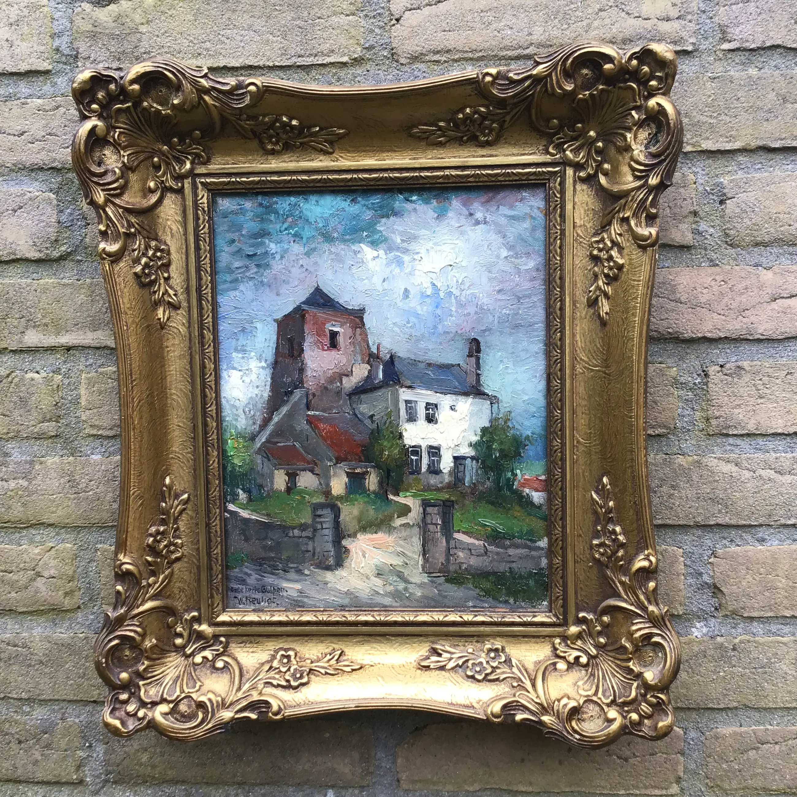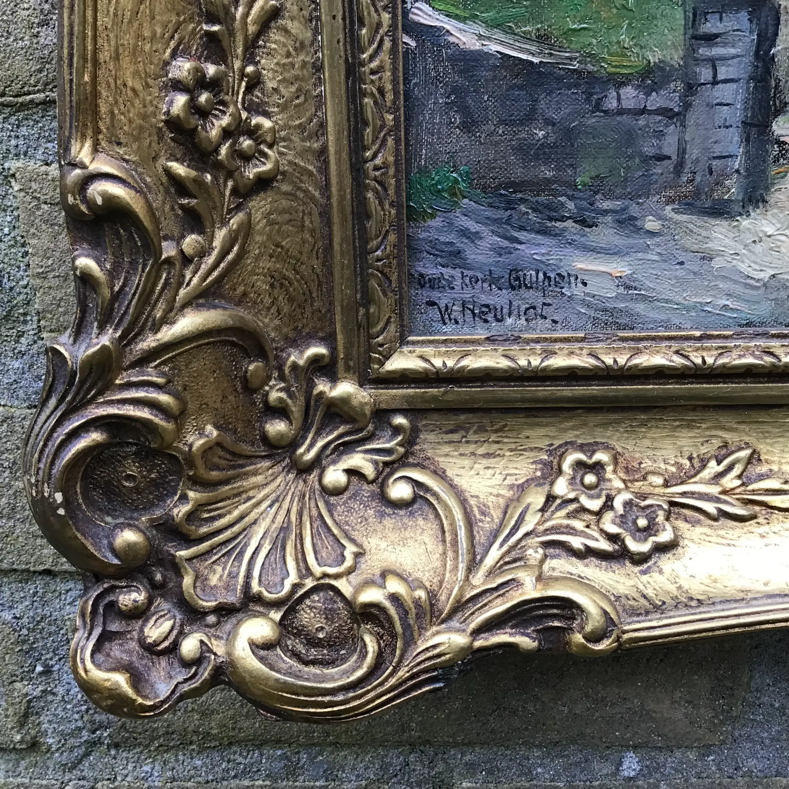 Oude kerk van Gulpen door Walter Neuhof(1904-1982). Oud werk in prima conditie en in een klassieke goudkleurige pronklijst. Pasteus werk. Walter Neuhof was een schilder uit Maastricht en heeft voornamelijk in Limburg gewerkt. Heeft een vermelding in Pieter Scheen en het Bonnefantenmuseum in Maastricht heeft werk van hem.