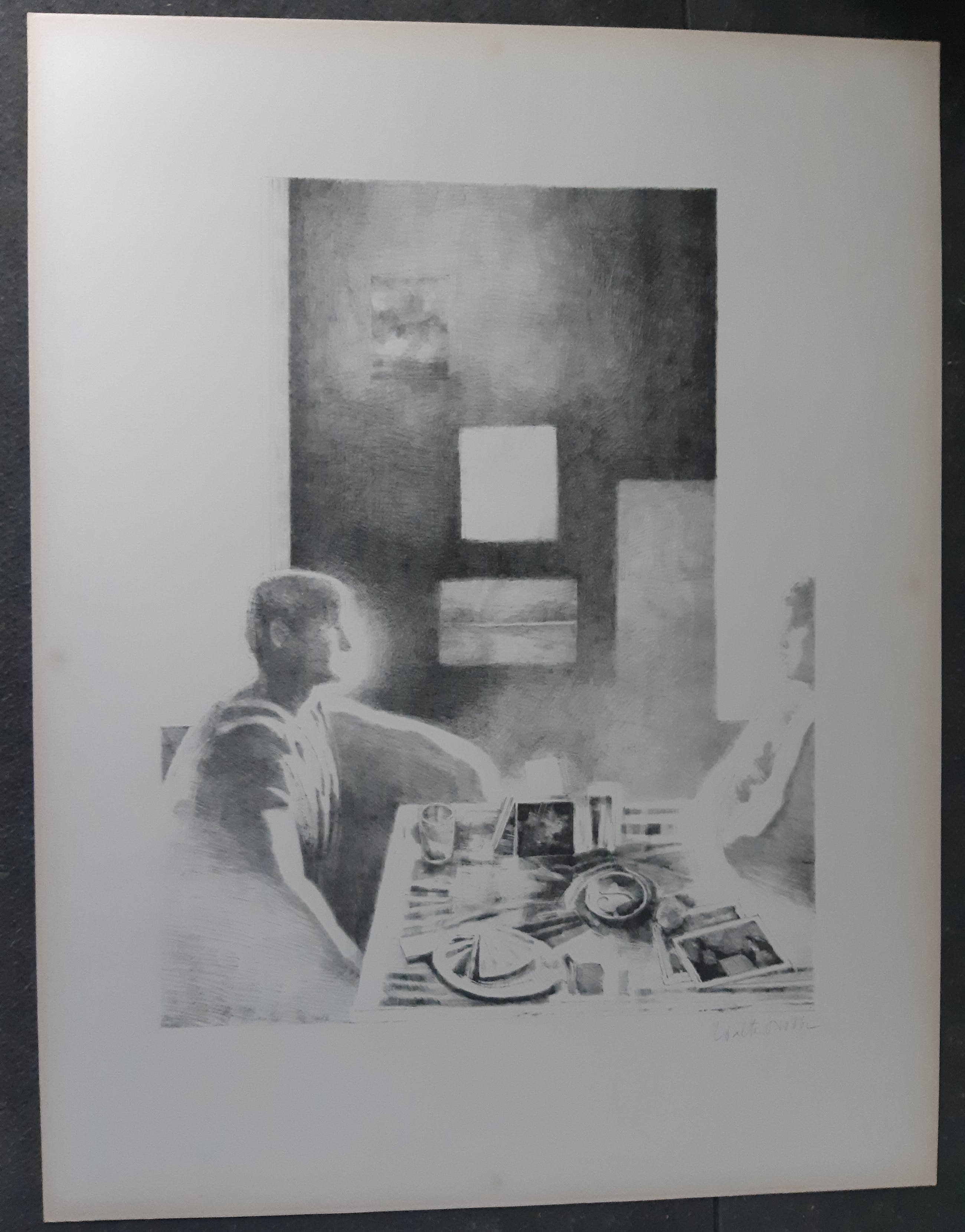 Litho van Walter Nobbe, uitgegeven in de reeks Het Dagelijks Leven, ter gelegenheid van het jubileum van Ahold. Het beeld meet 46 x 36 cm en is in prima conditie. Het werk is met potlood gesigneerd en voorzien van de AH blindstempel met jaartal.