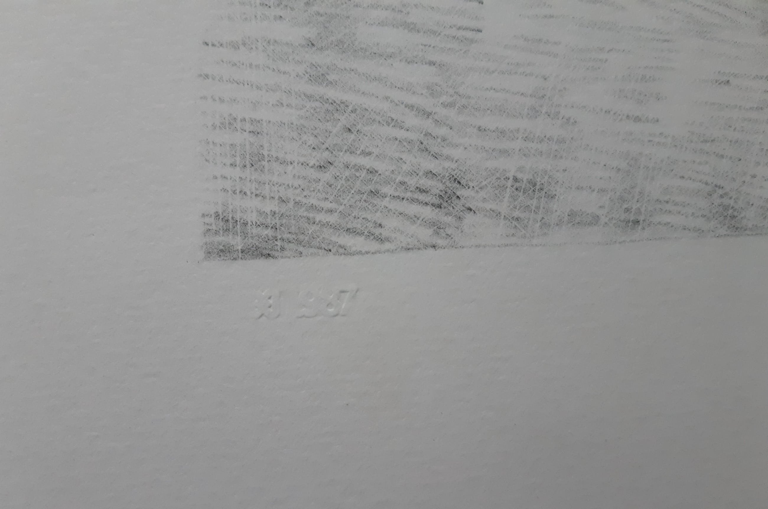 De conditie is goed, de uiterste bladranden zijn door eerdere inlijsting vergeeld. Met nieuw pass-partout is dat niet zichtbaar.