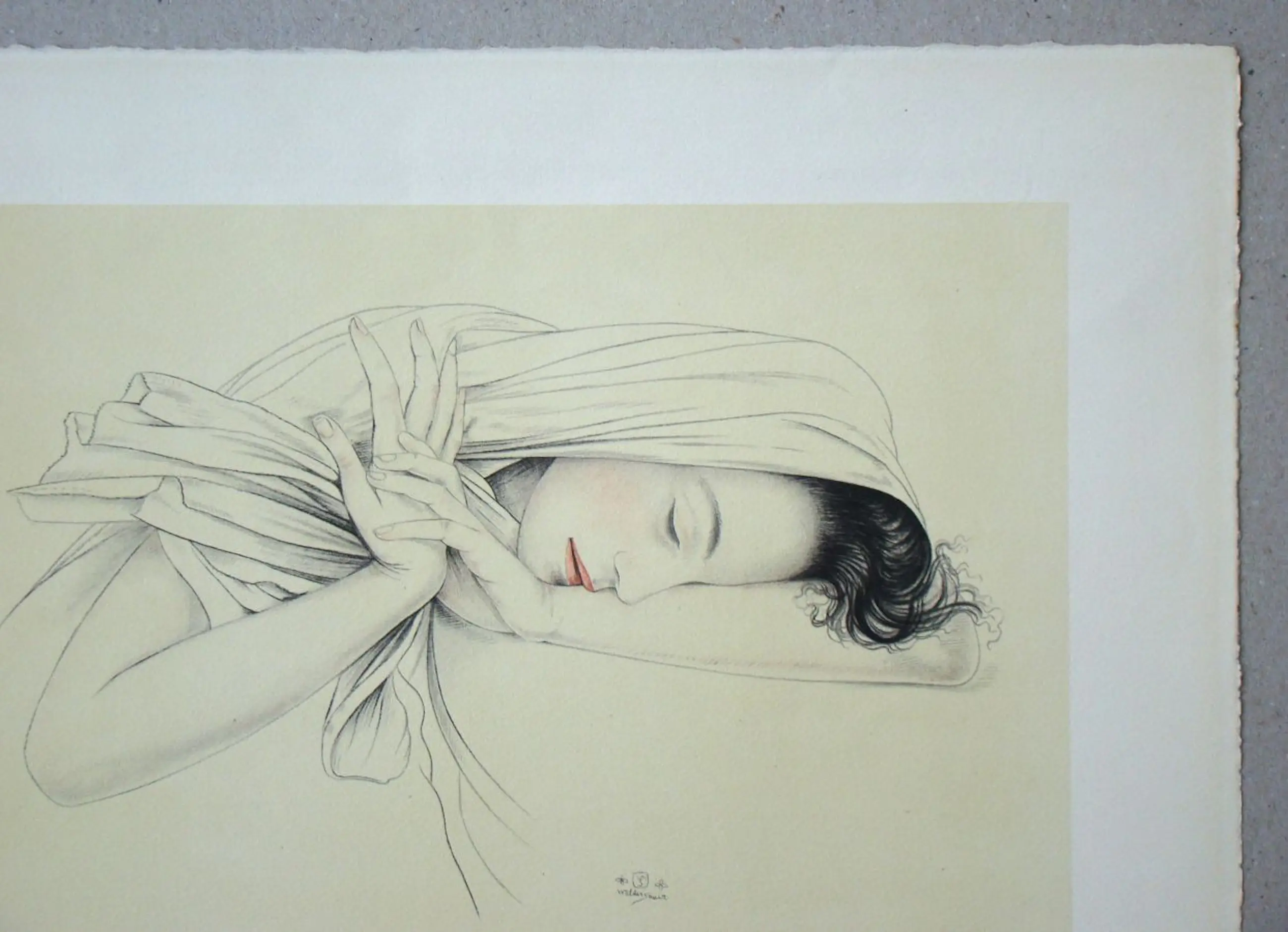 Gelimiteerde oplage kleurenprint op vélin d'Arches-papier met watermerk.