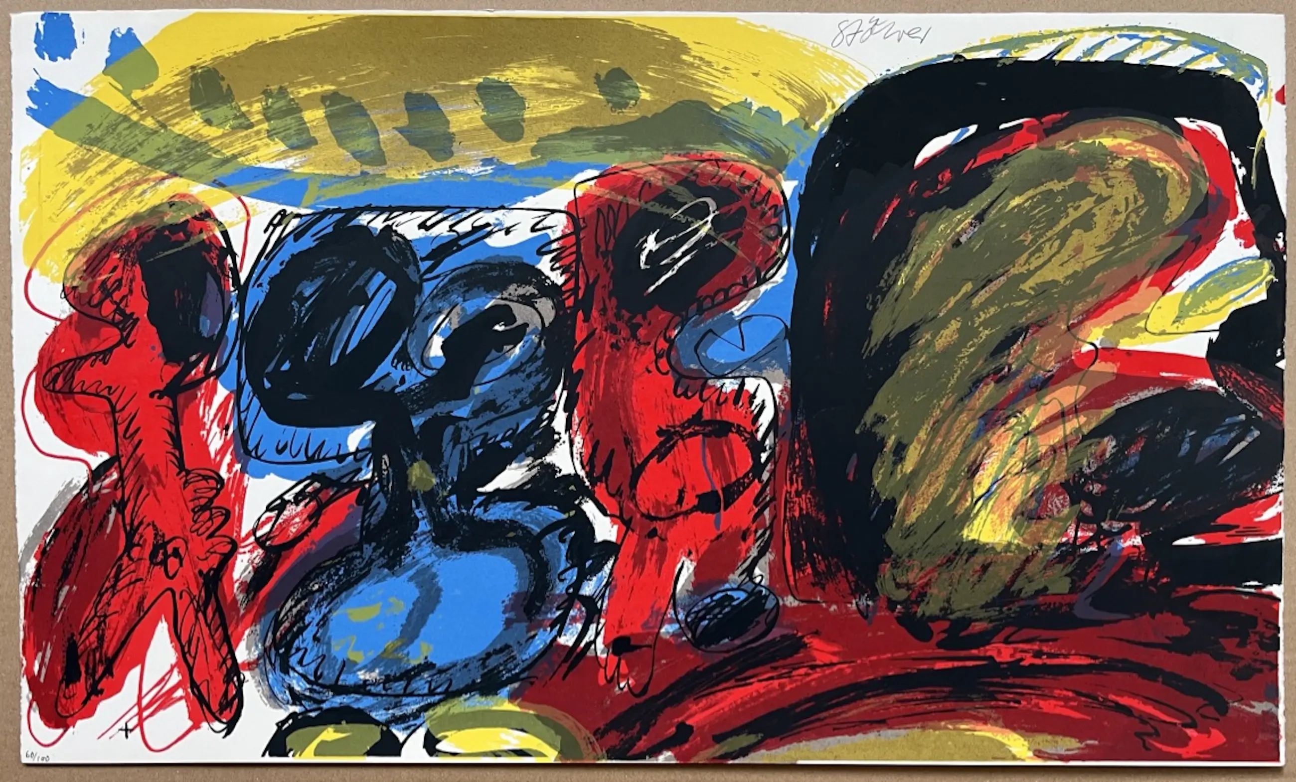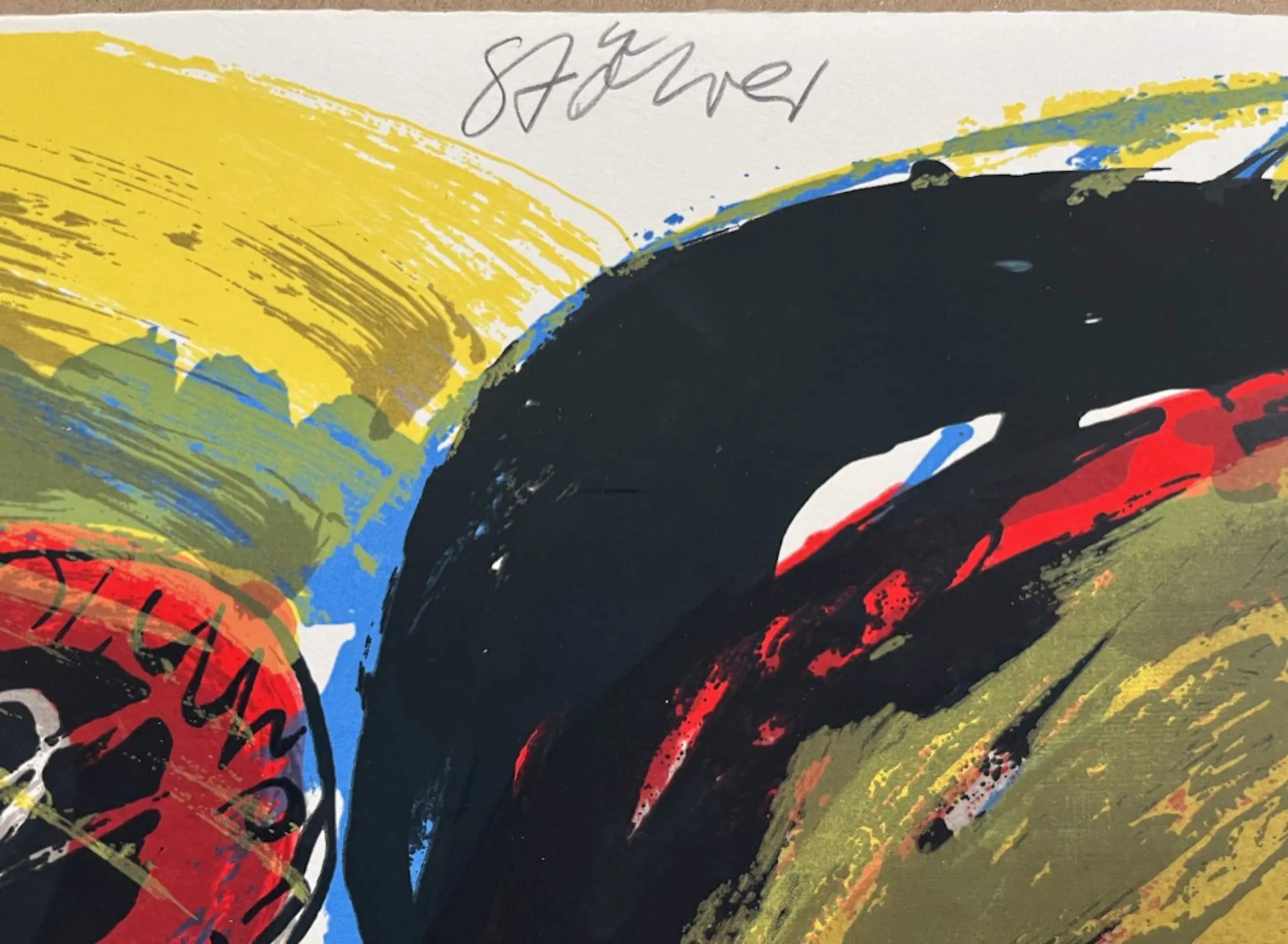 Voorheen gesigneerde en genummerde originele zeefdruk van de belangrijke vertegenwoordiger van de Informel, die studeerde aan de Kunstacademie in Karlsruhe onder HAP Grieshaber
