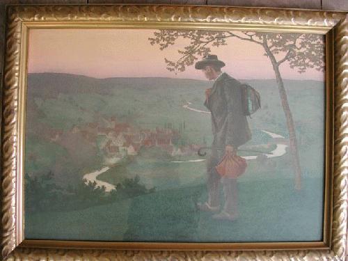 Walter Strich-Chapell - Große Farblithographie "Lieb Heimatland ade" von 1904 Karlsruher Künstlerbund