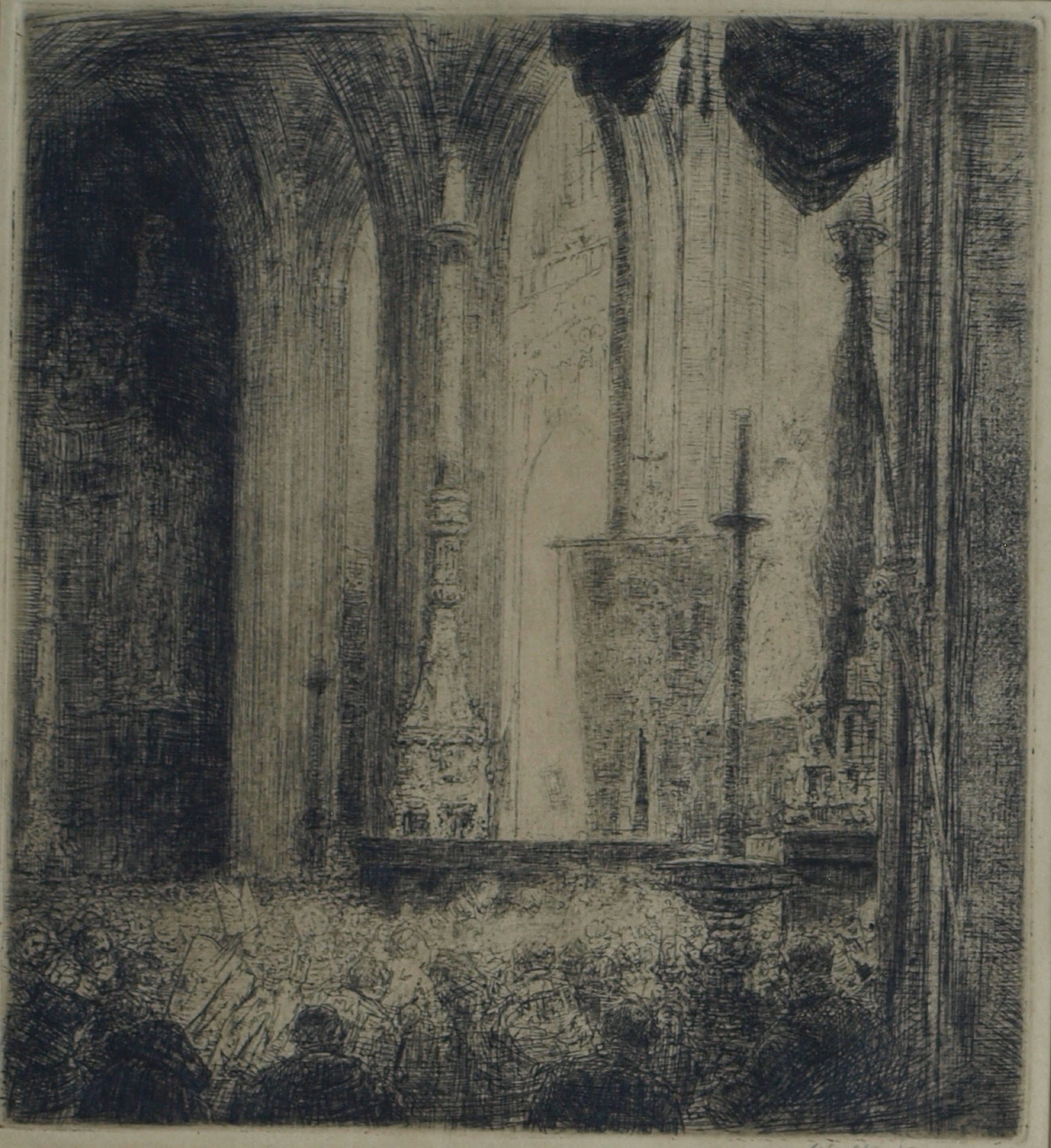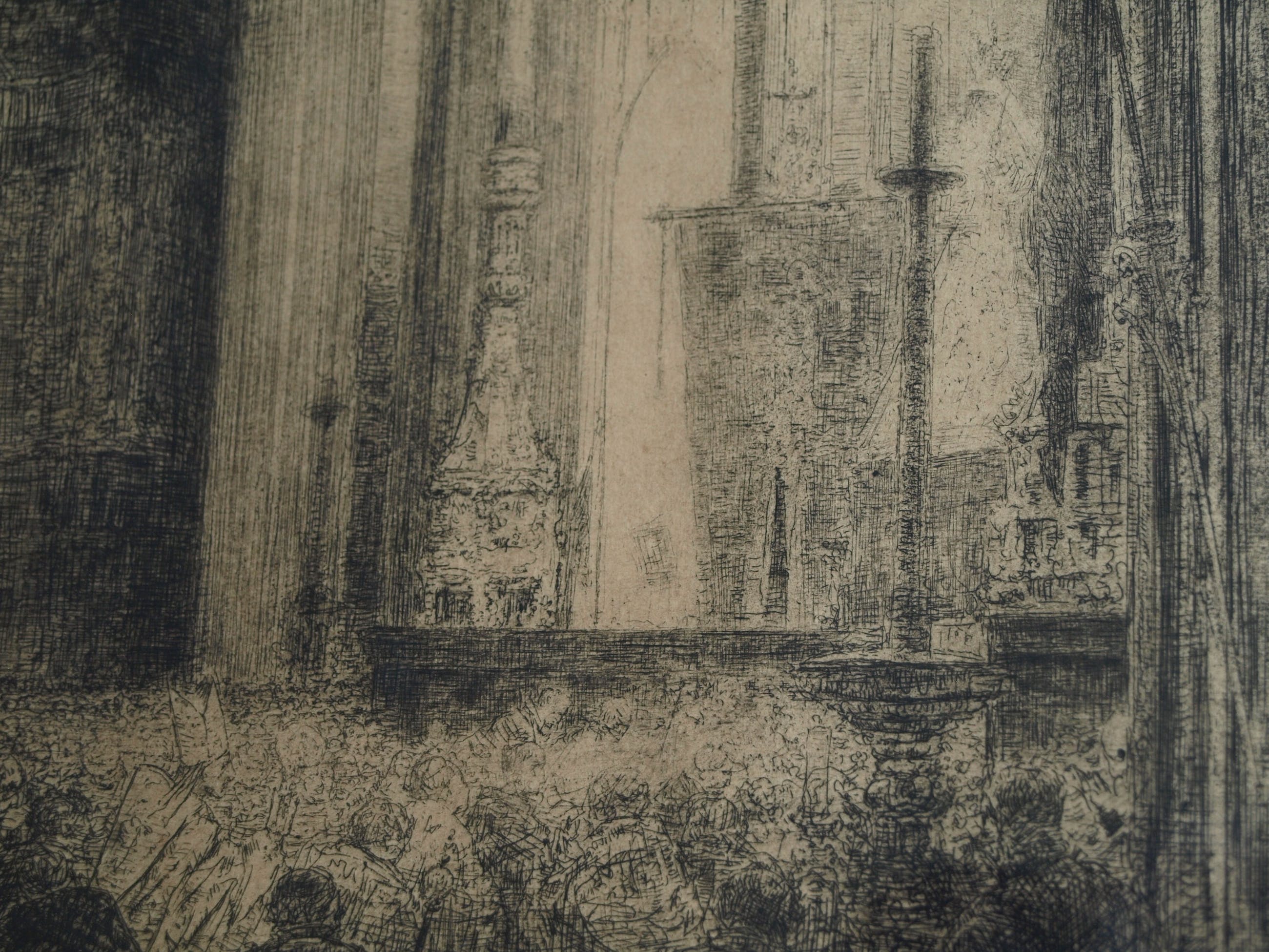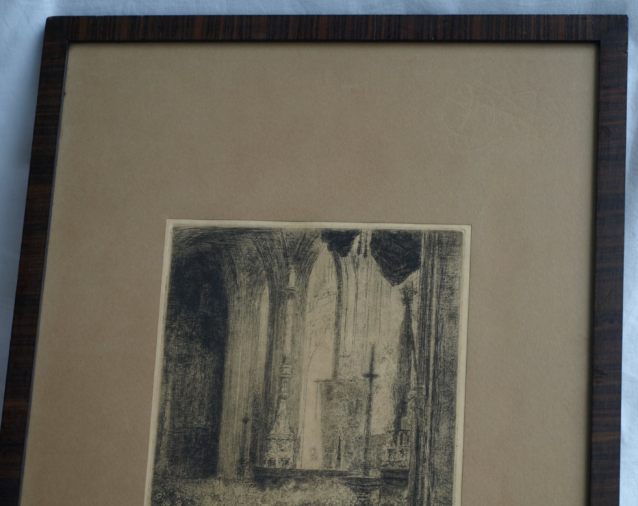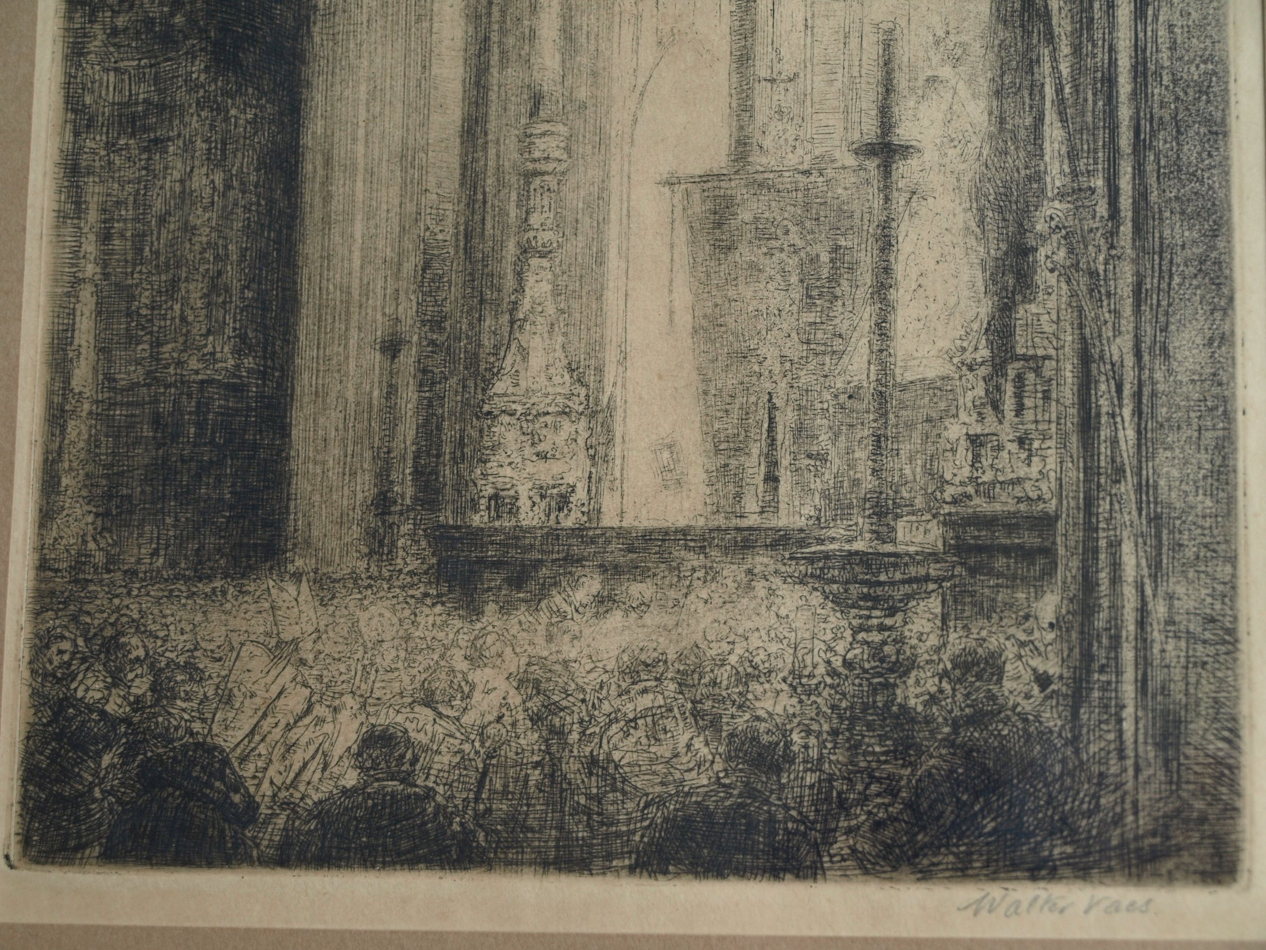 Een ingelijste ets van de Belgische kunstenaar Walter Vaes (1882-1958).