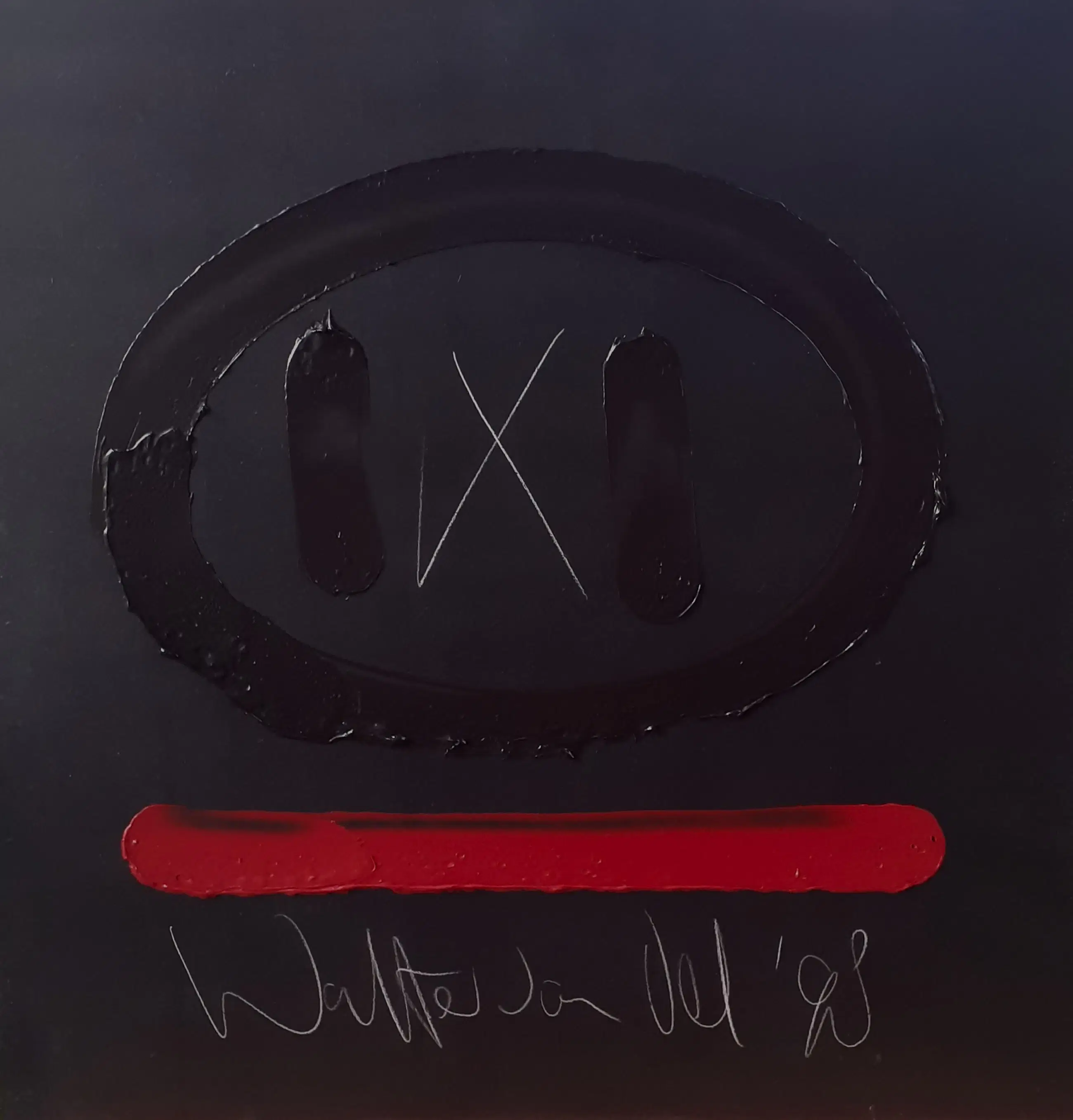 Mooie abstracte voorstelling van Walter van Oel, olieverf op MDF, 1998