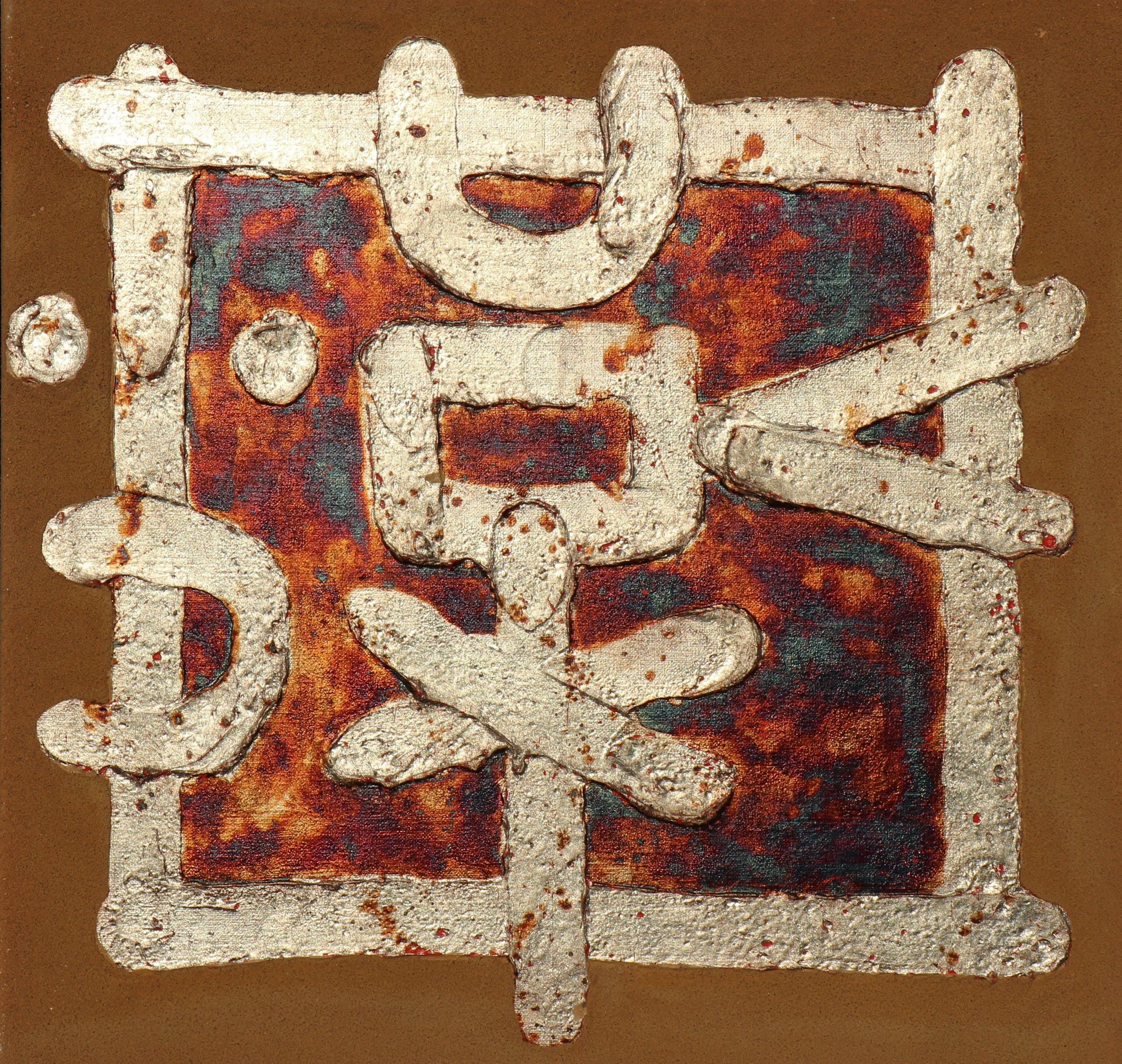 Een prachtig poëtisch abstract schilderij van Walter van Oel. Afkomstig uit de kunstcollectie van AON-verzekeringen, die dit schilderij in 1998 rechtstreeks van de kunstenaar heeft verworven.