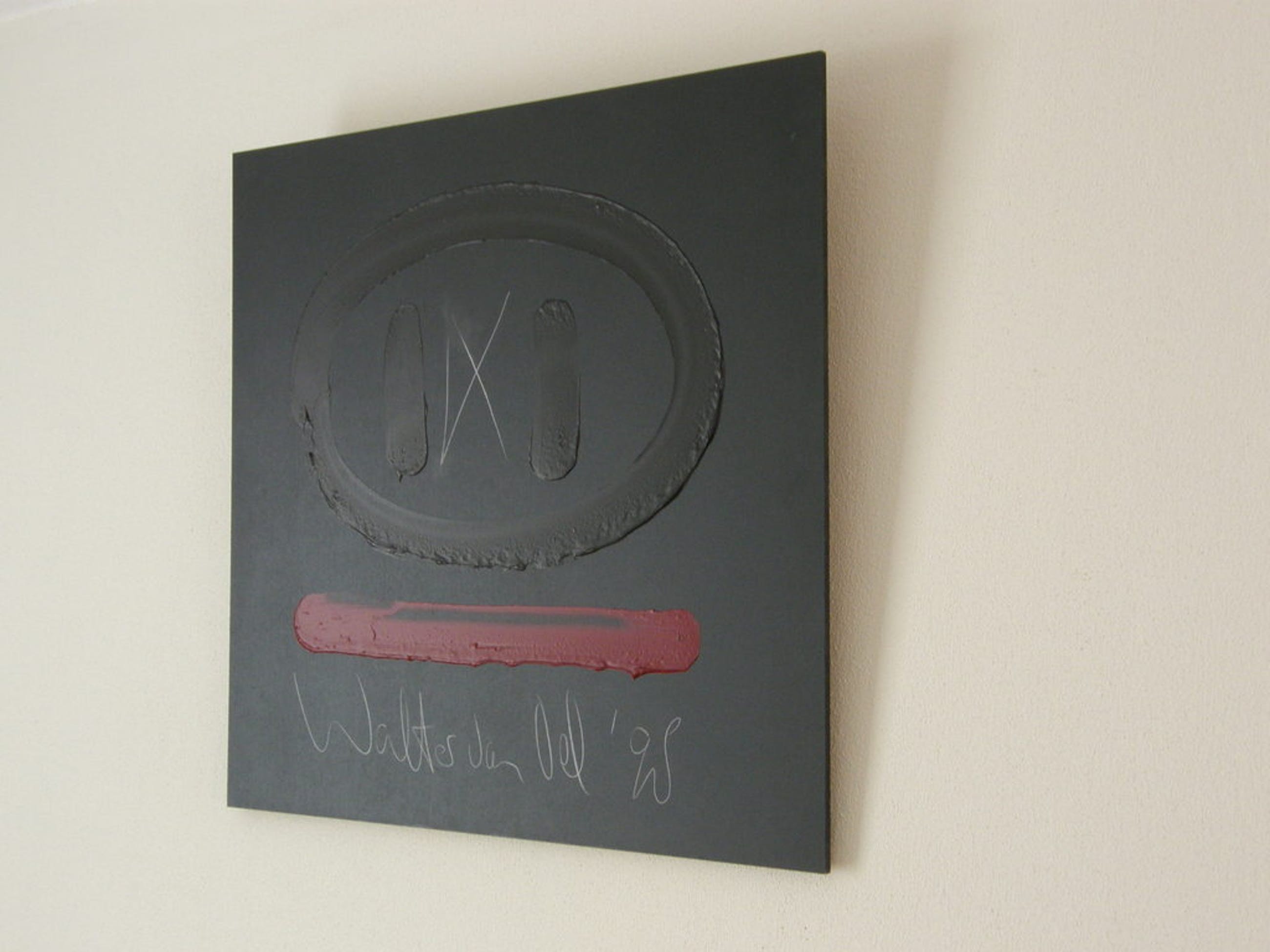 Mooie abstracte voorstelling van Walter van Oel, olieverf op mdf.